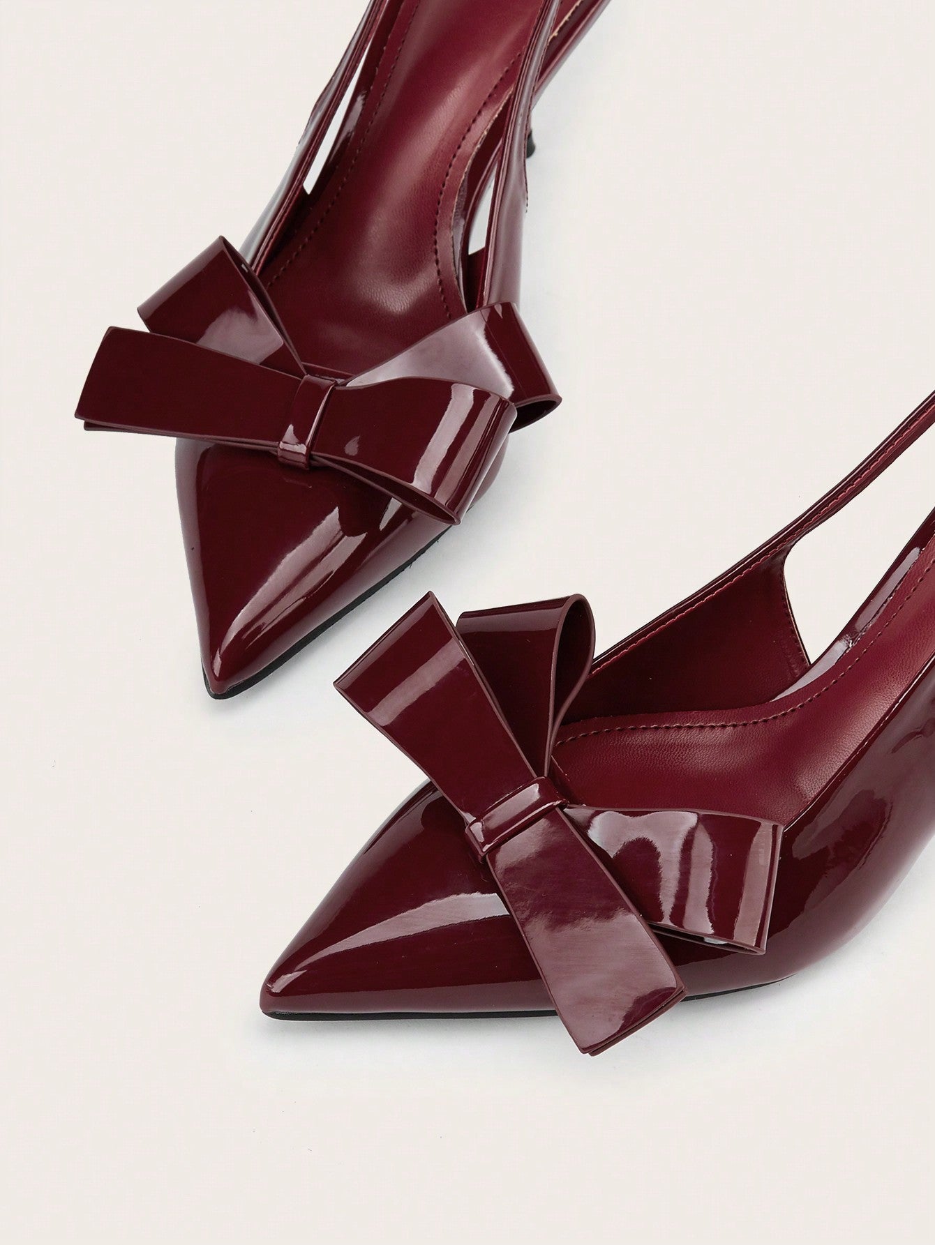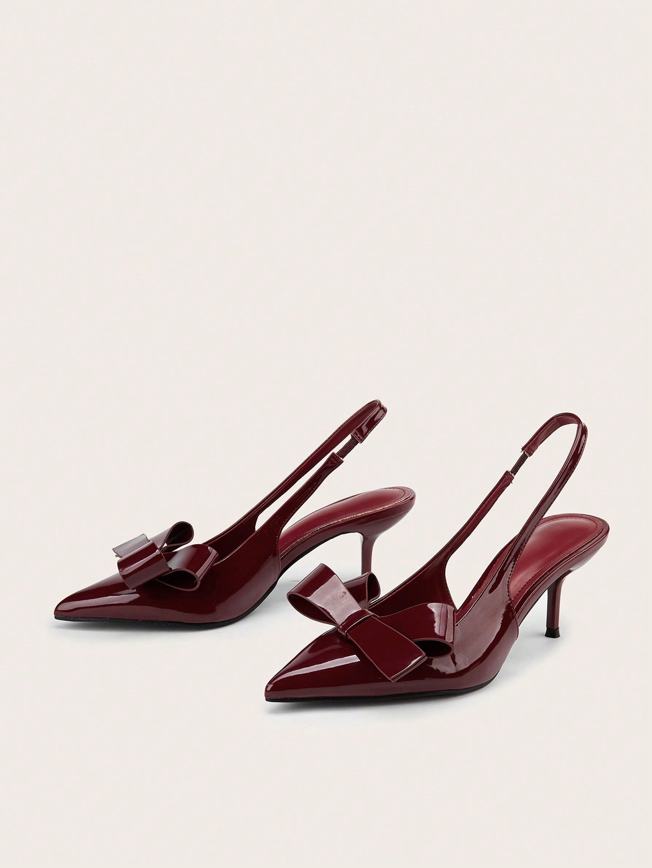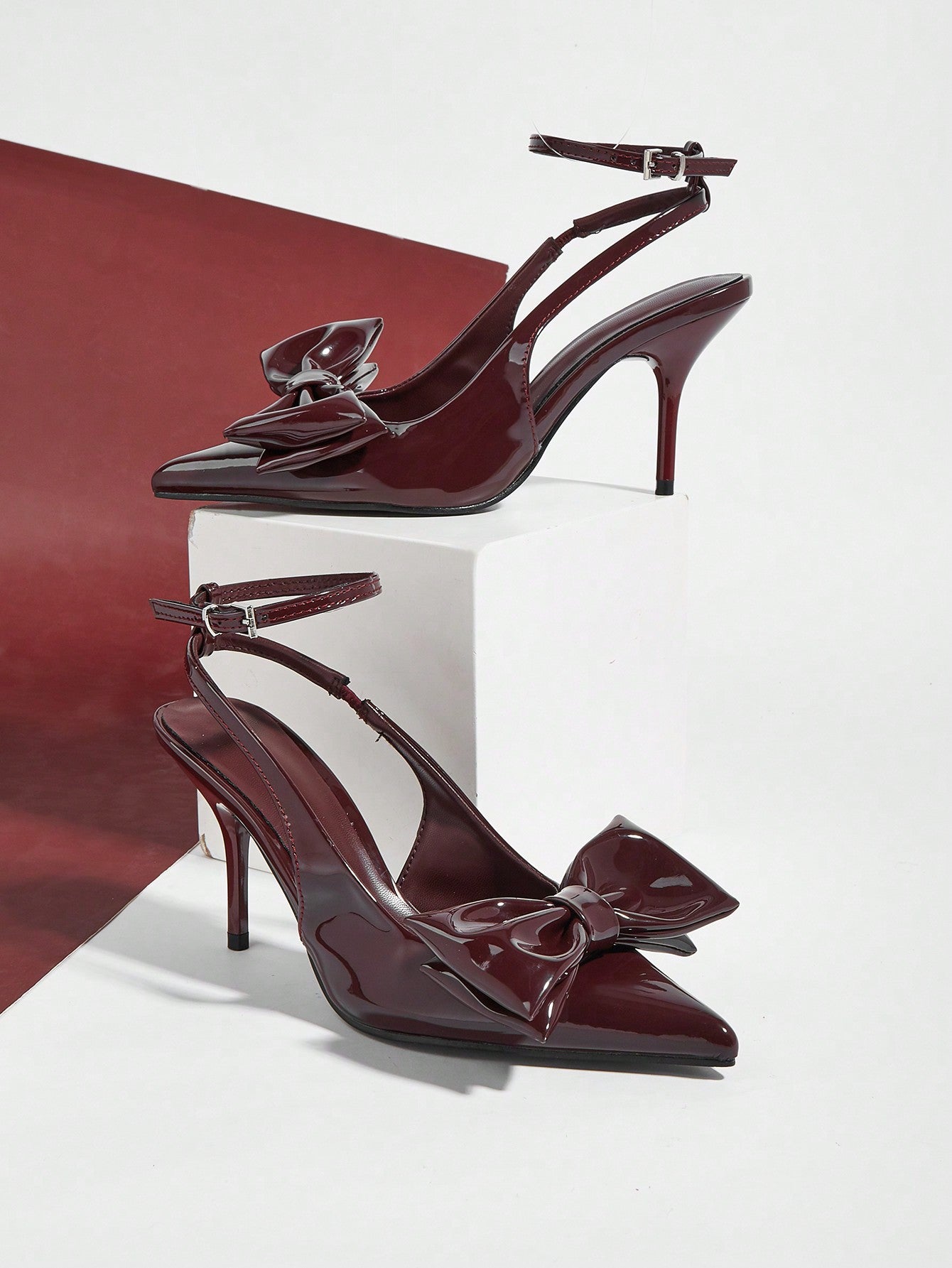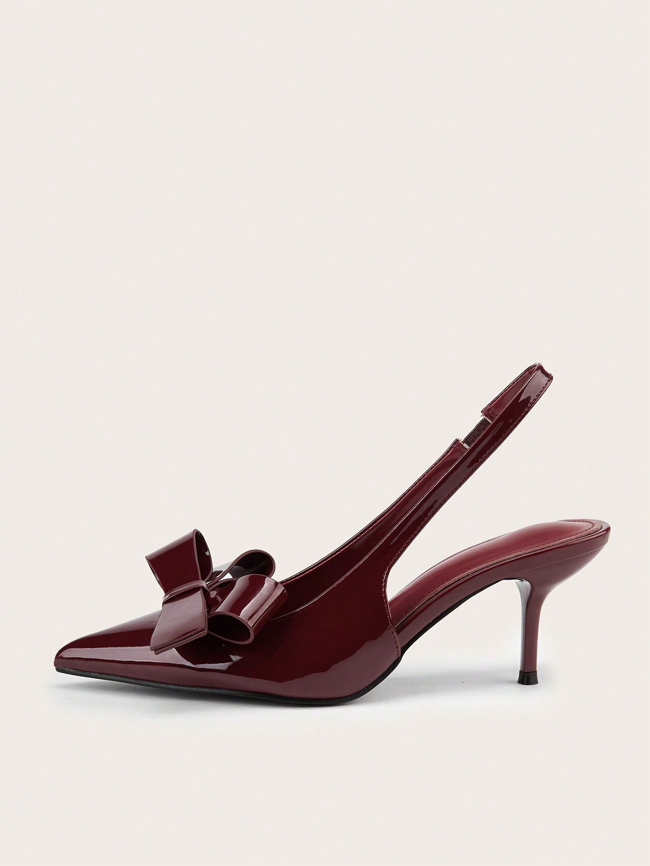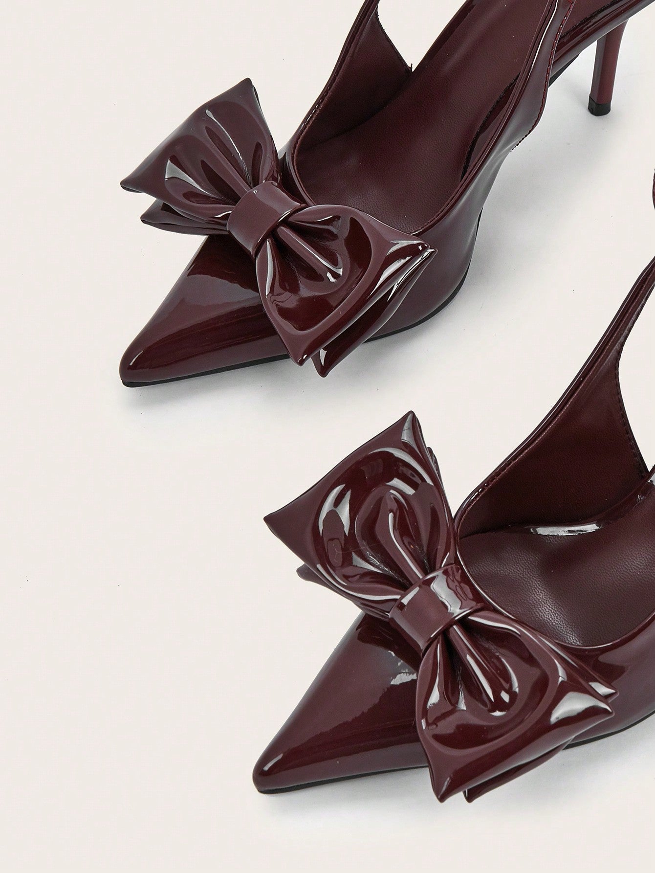 Patent Leather Pointed Toe Butterfly Strap Open Back Mules Stiletto High Heels, Burgundy