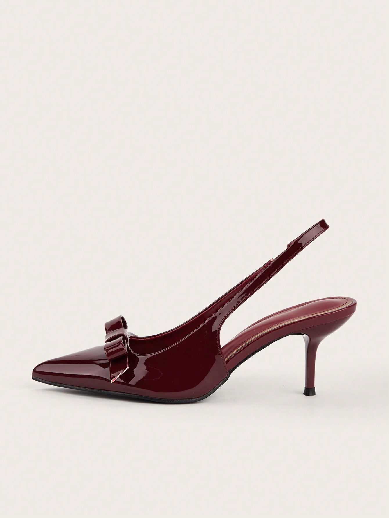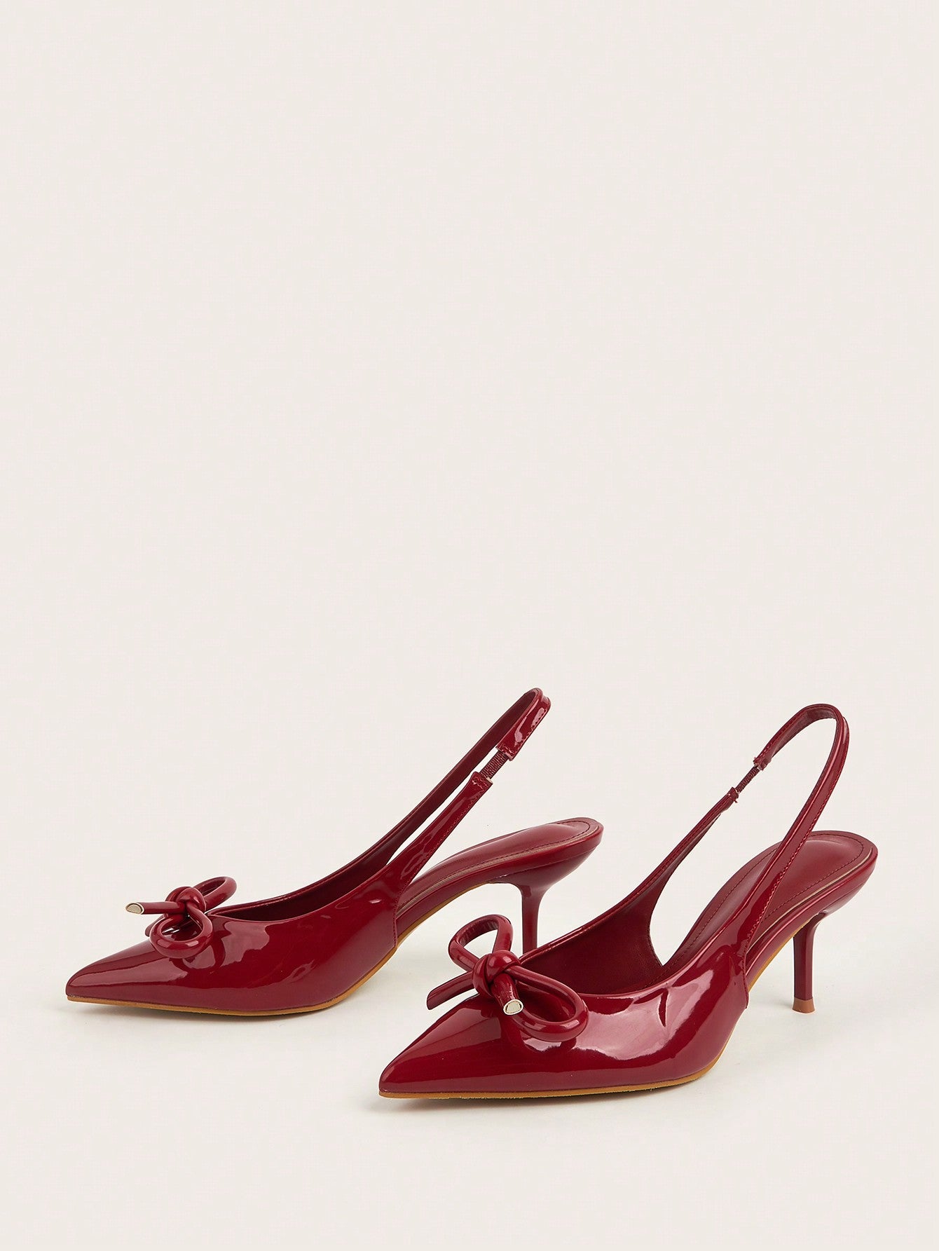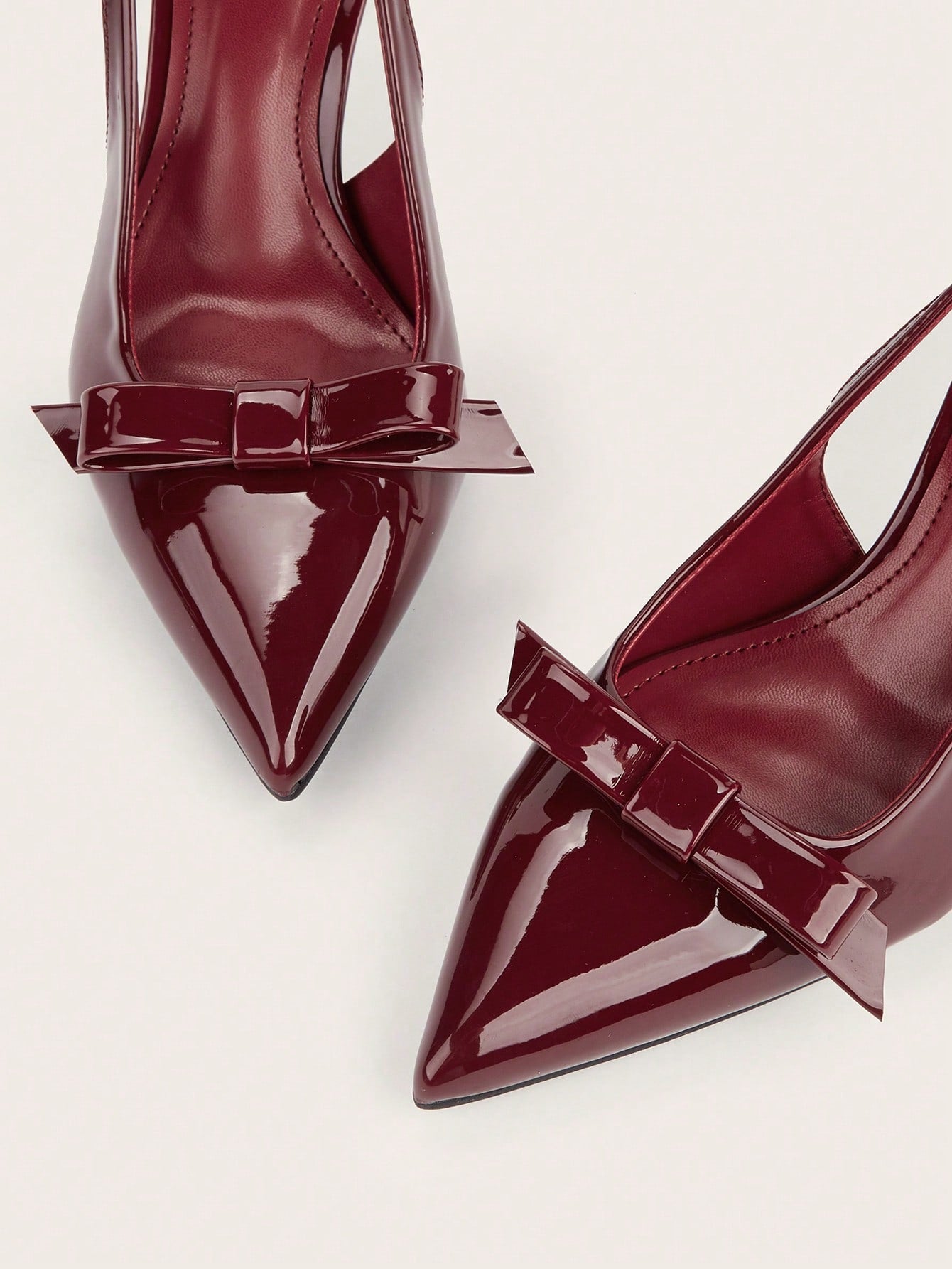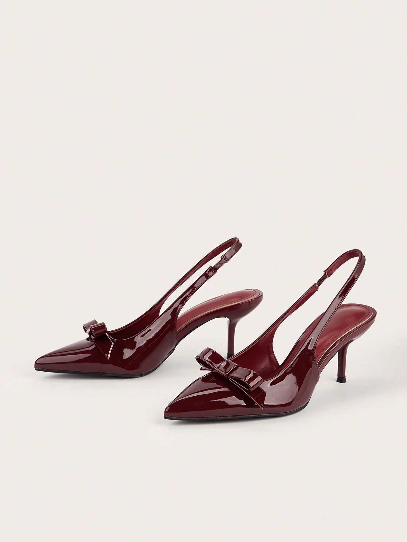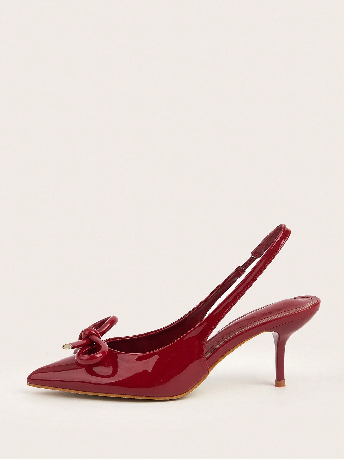 Patent Leather Pointed Toe Butterfly Strap Open Back Mules Stiletto High Heels, Burgundy