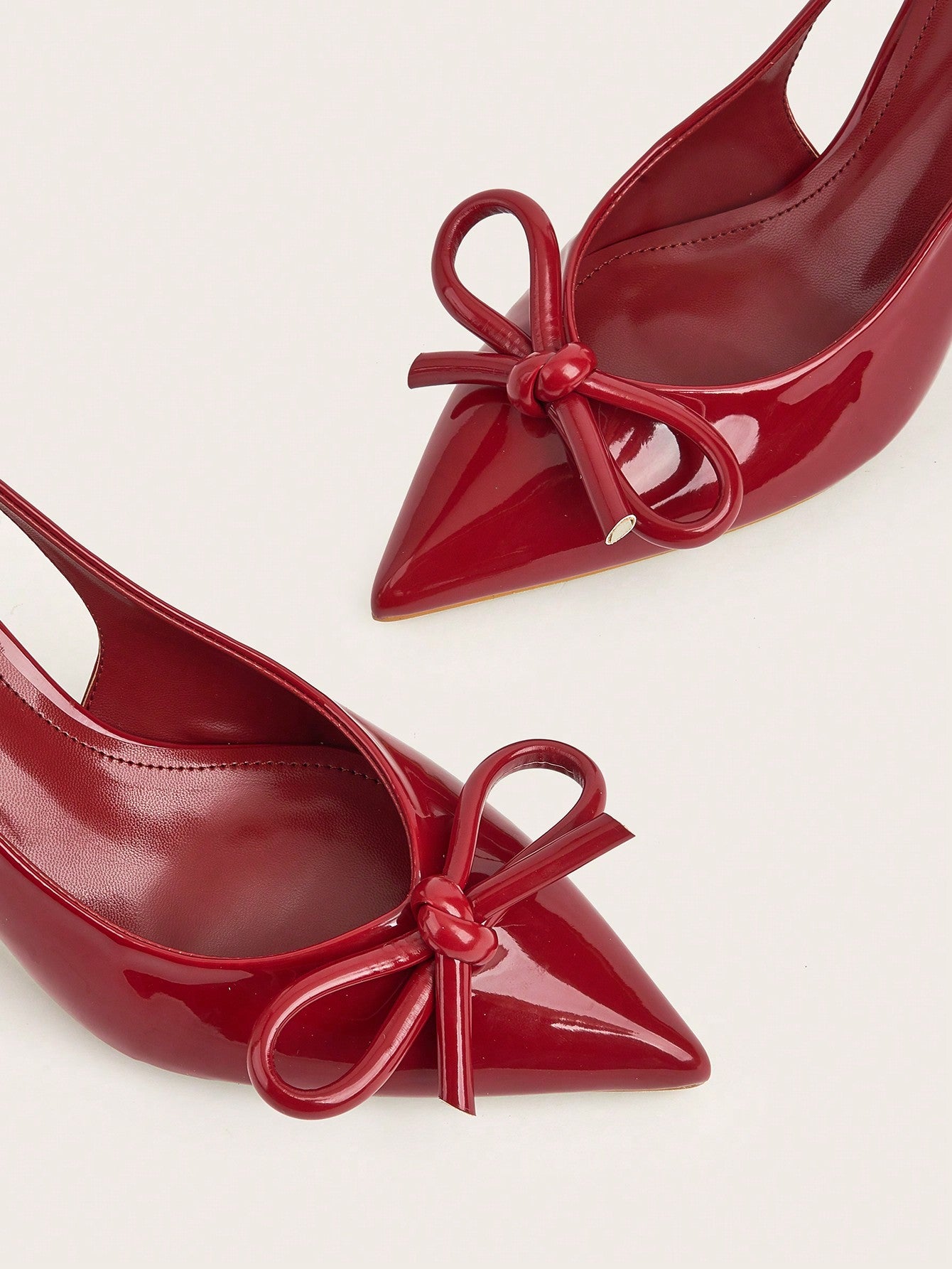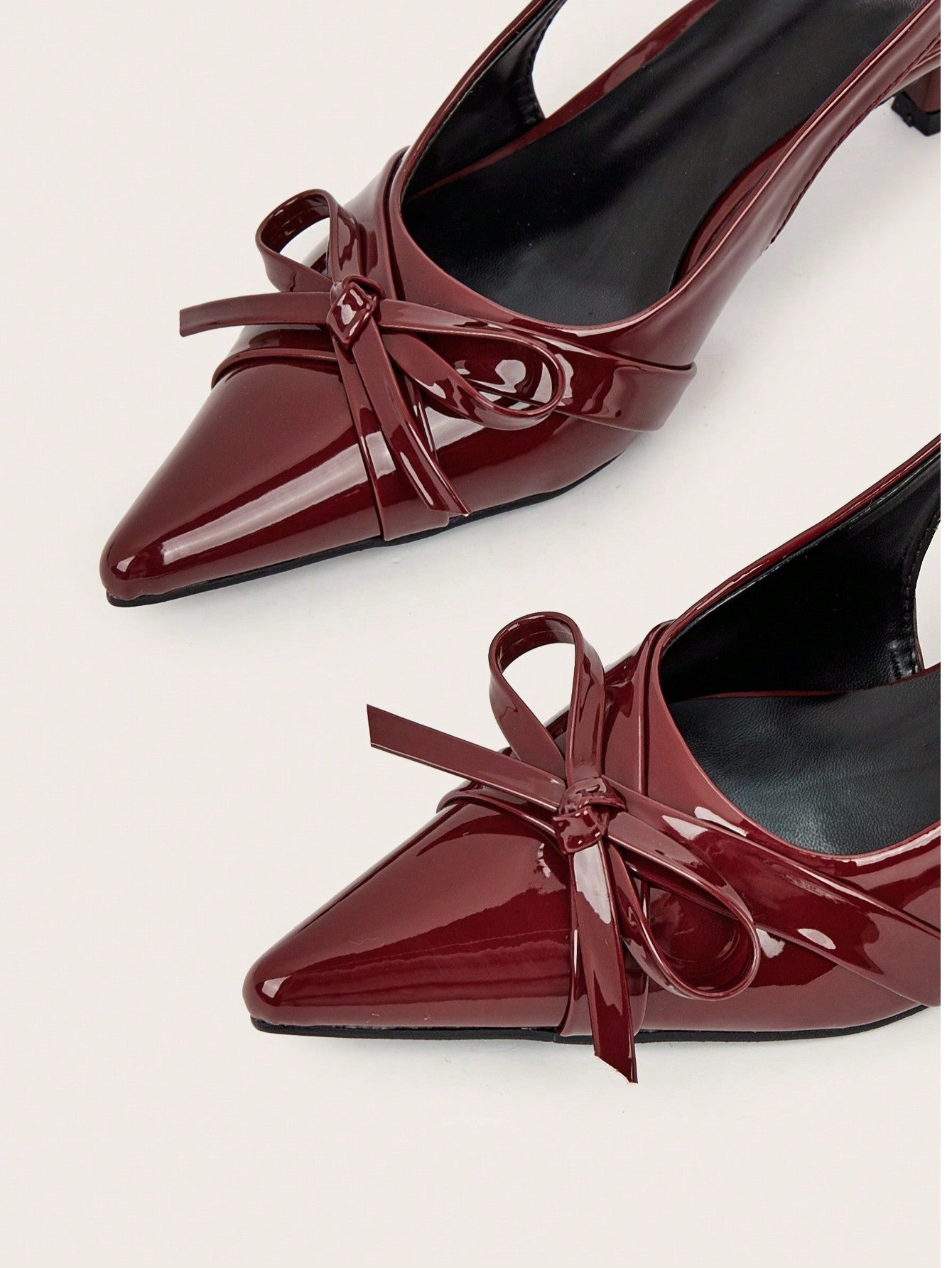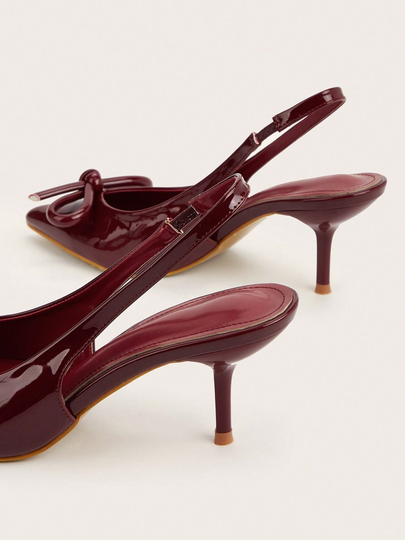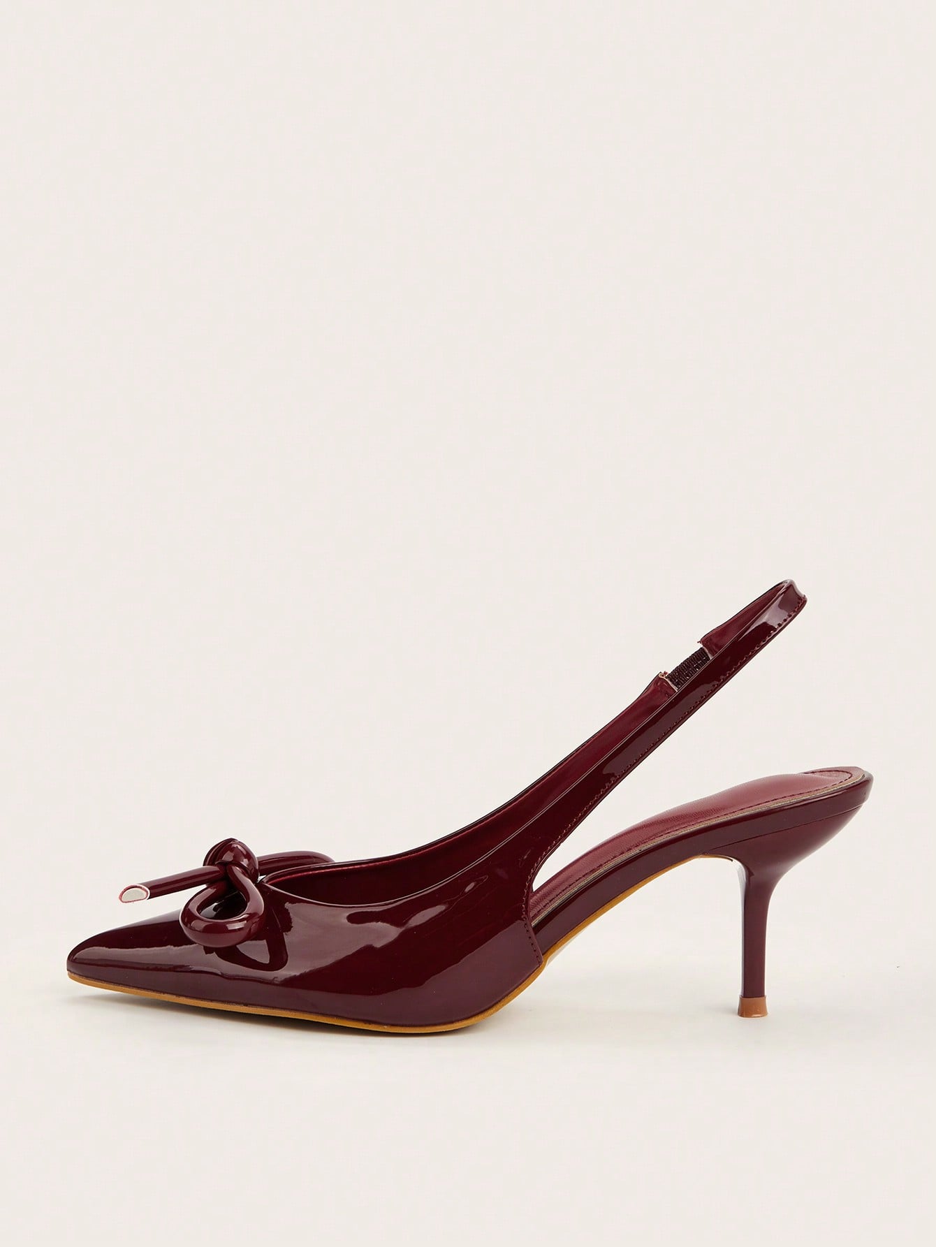 Patent Leather Pointed Toe Butterfly Strap Open Back Mules Stiletto High Heels, Burgundy