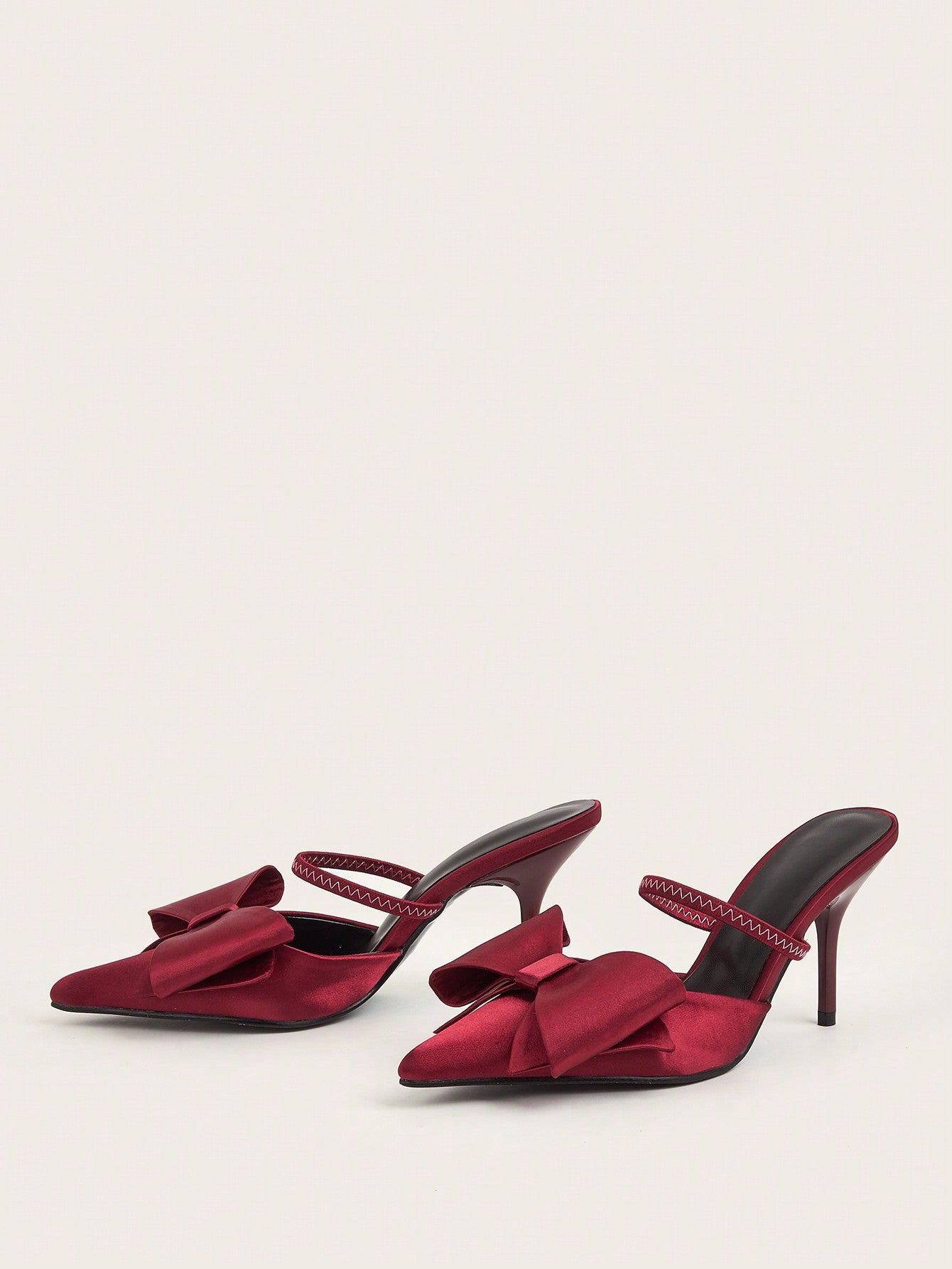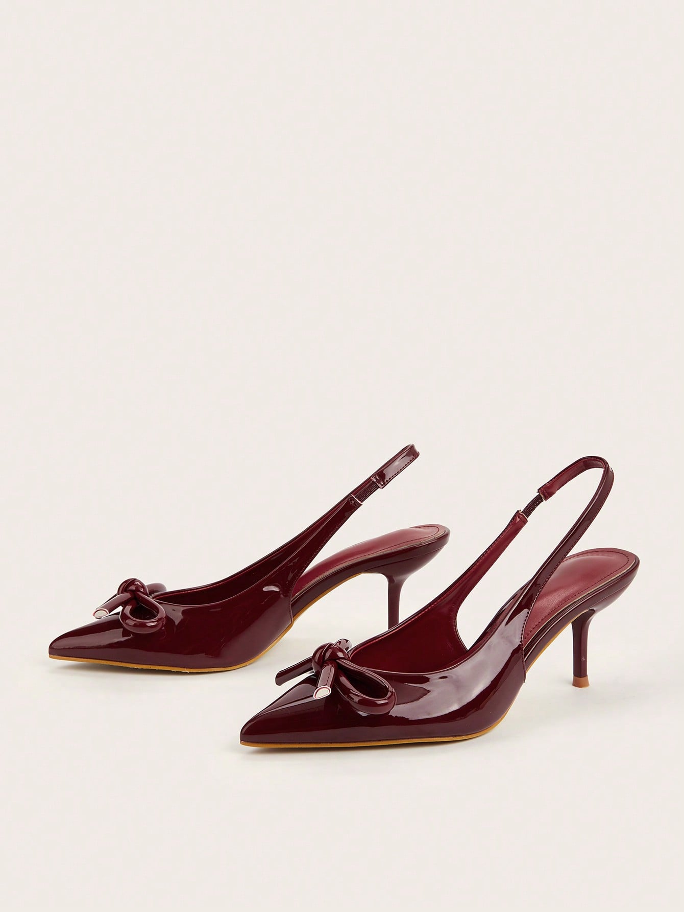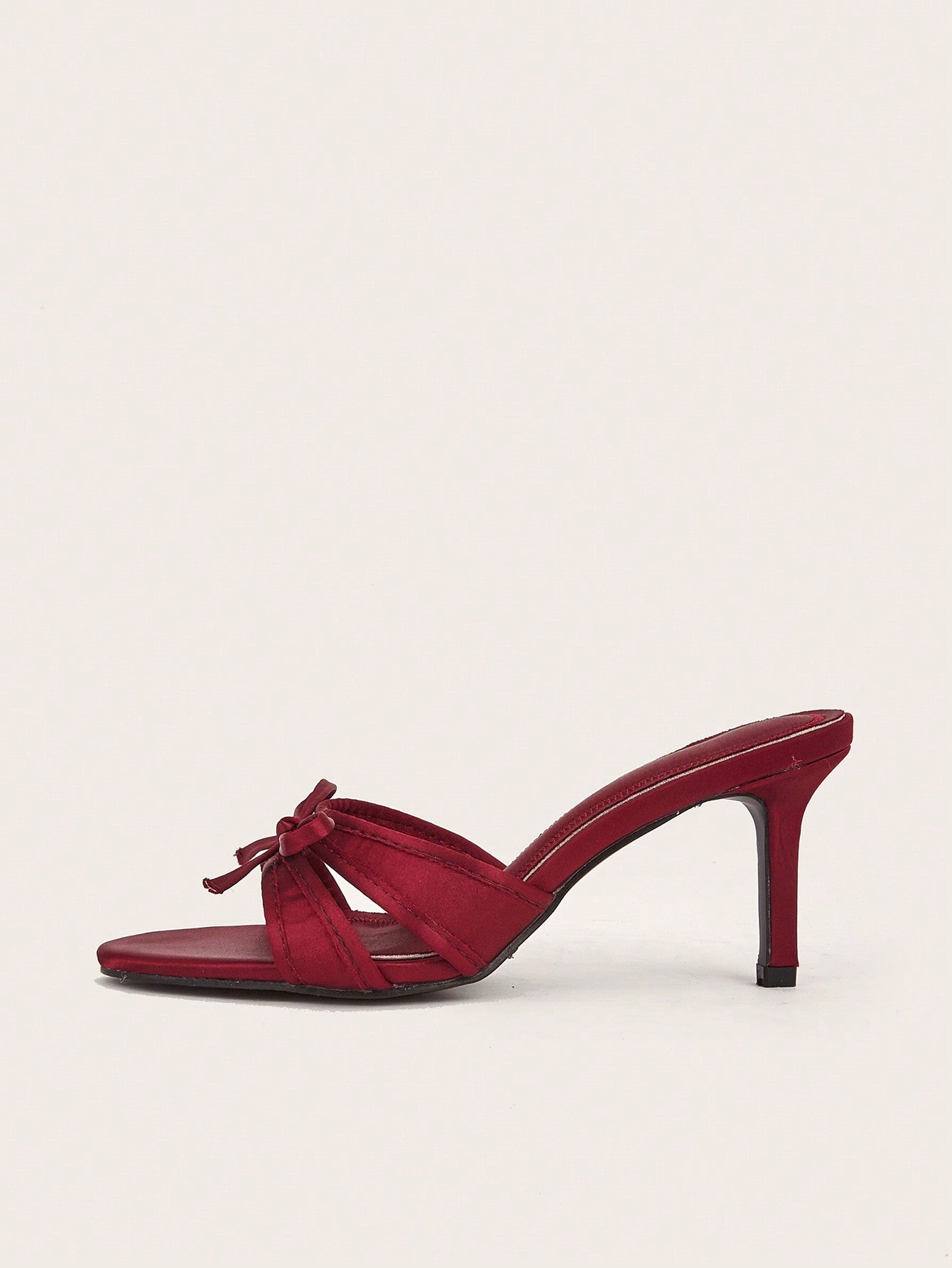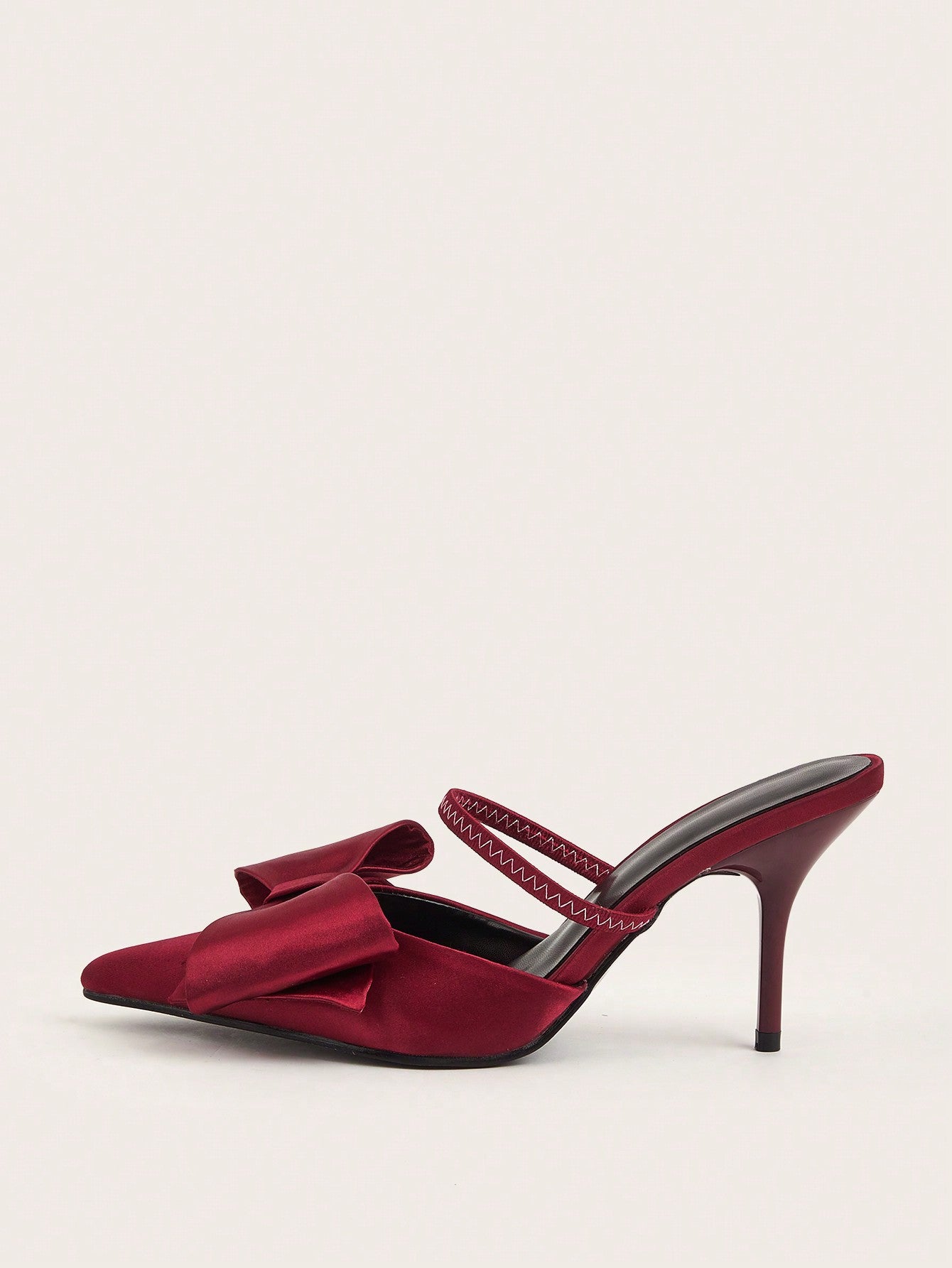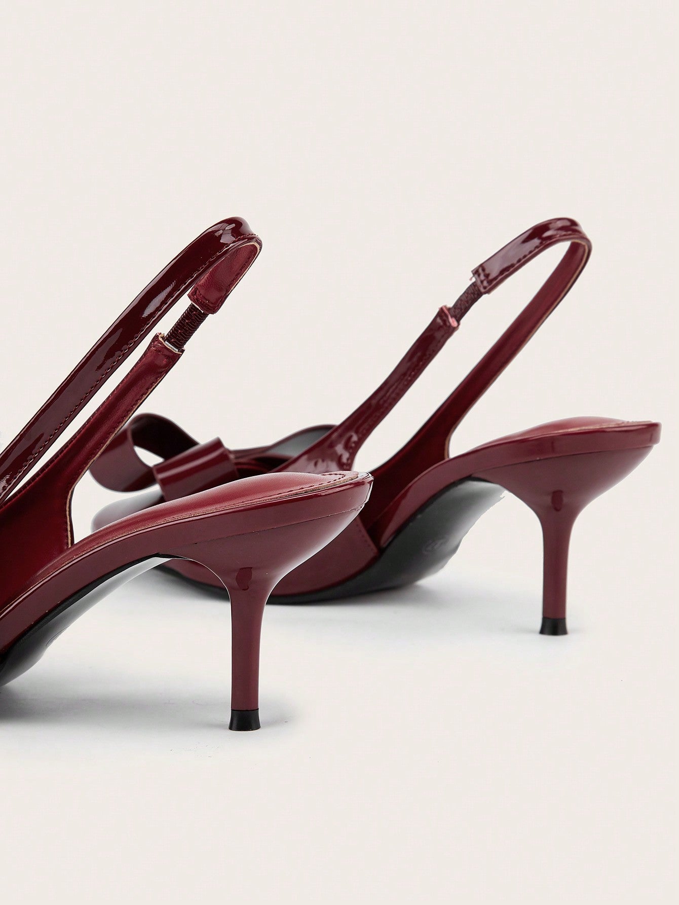 Patent Leather Pointed Toe Butterfly Strap Open Back Mules Stiletto High Heels, Burgundy