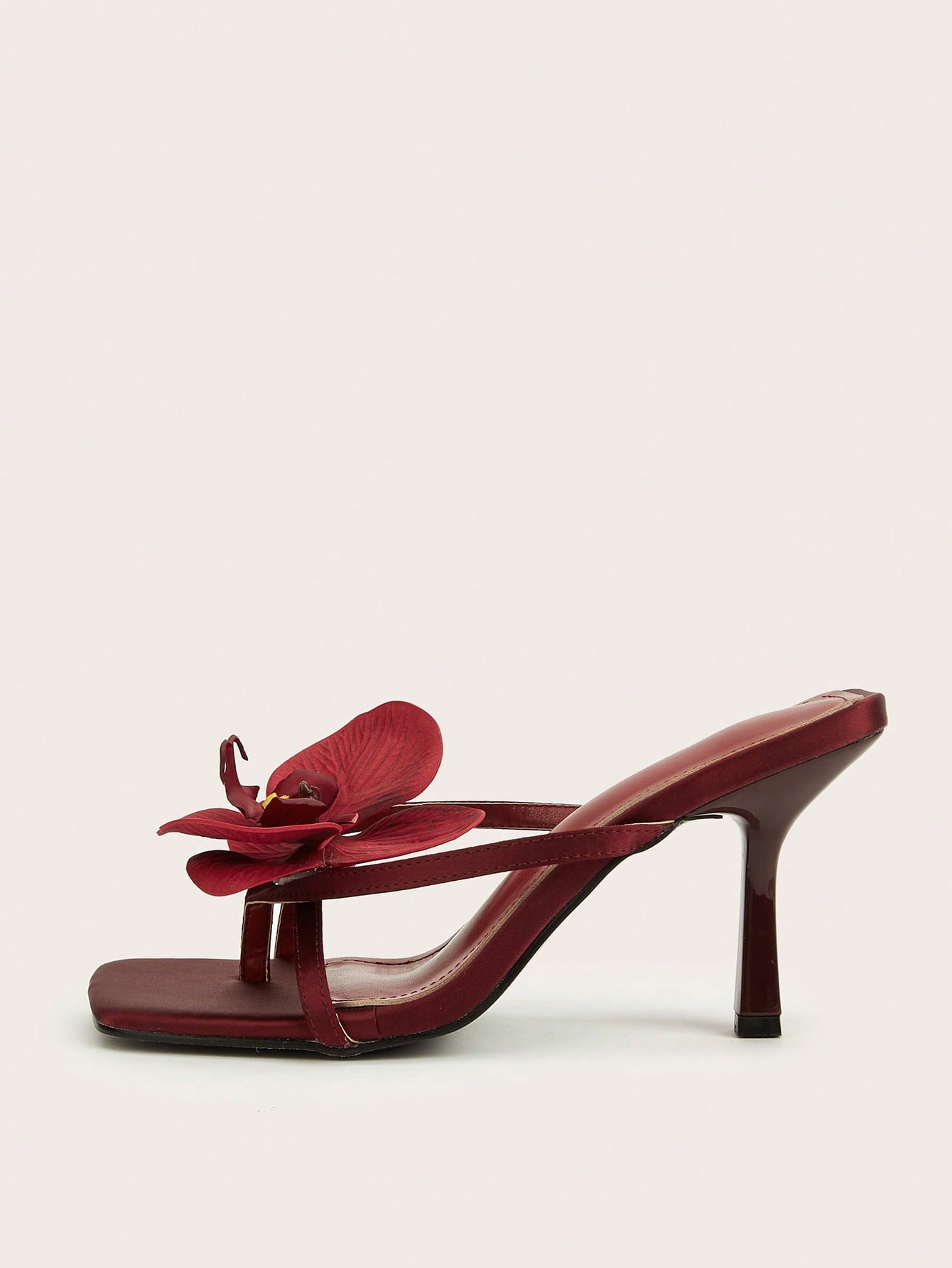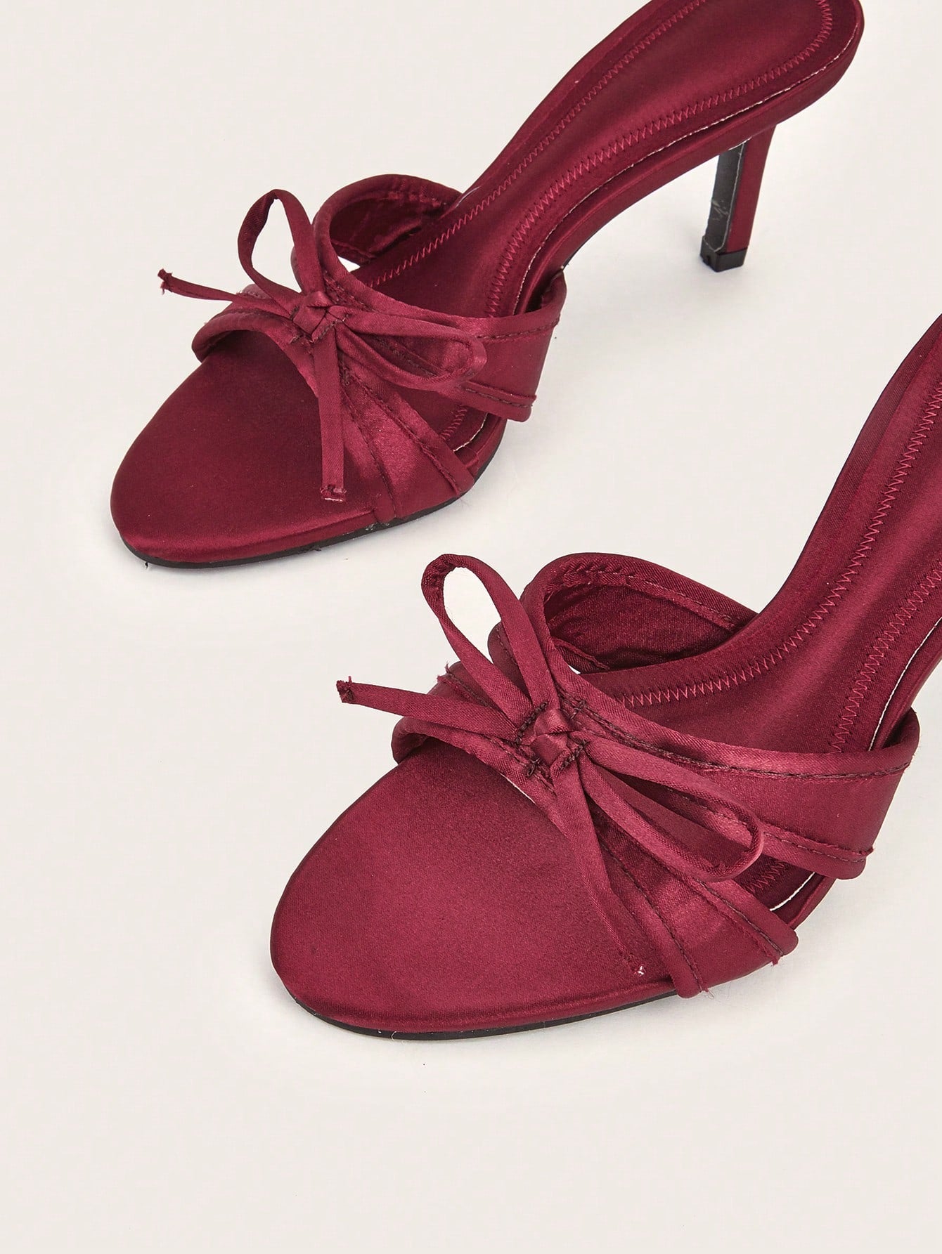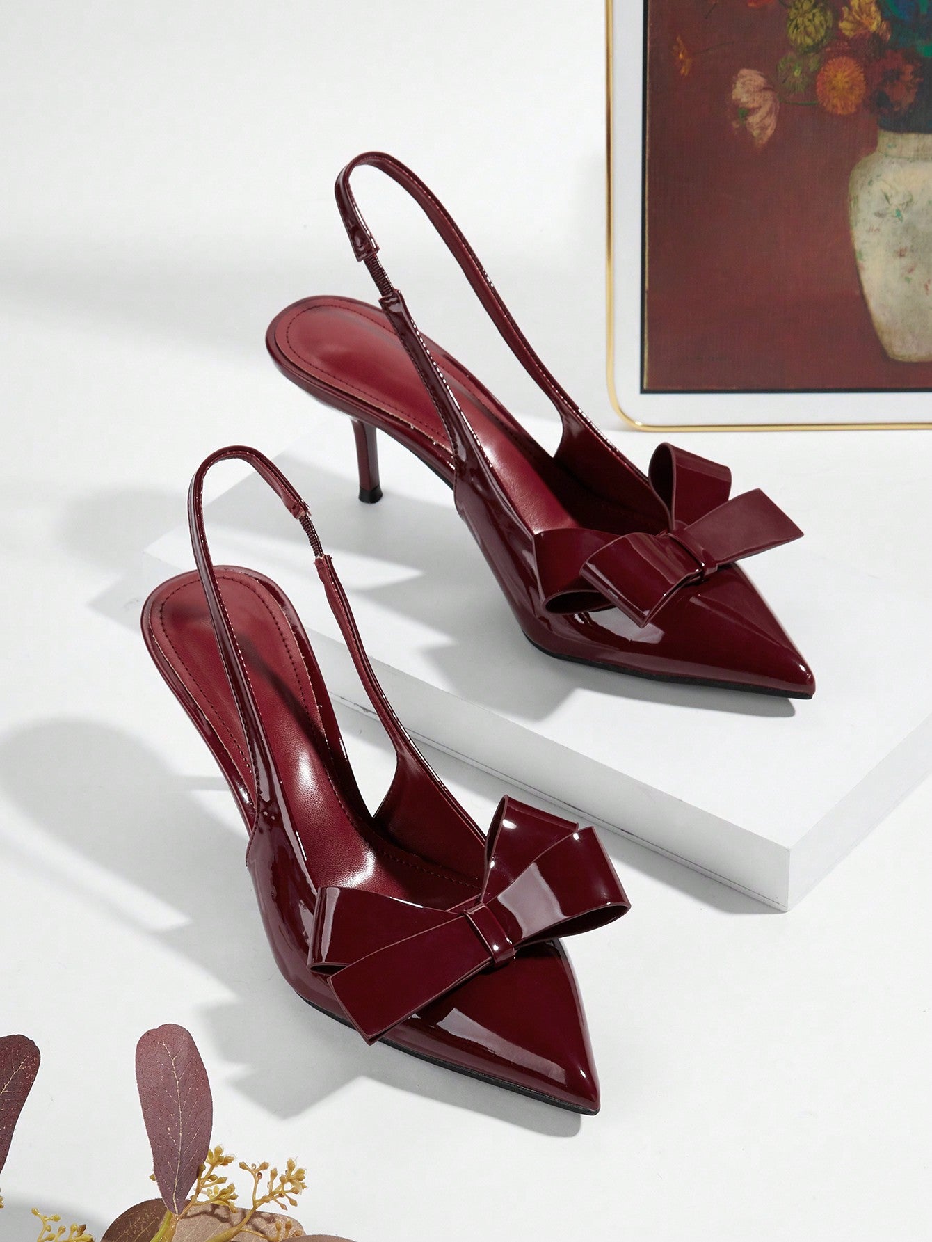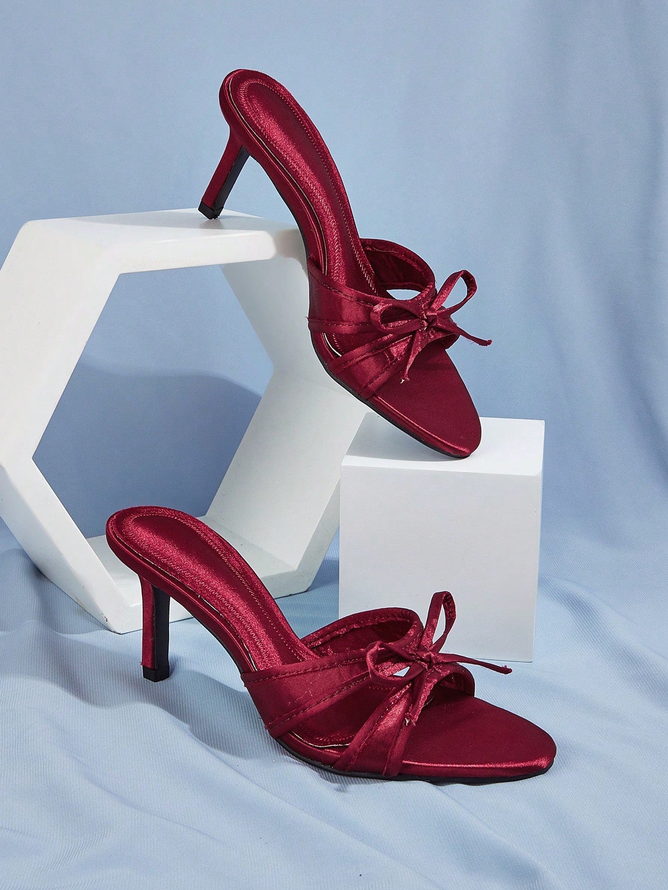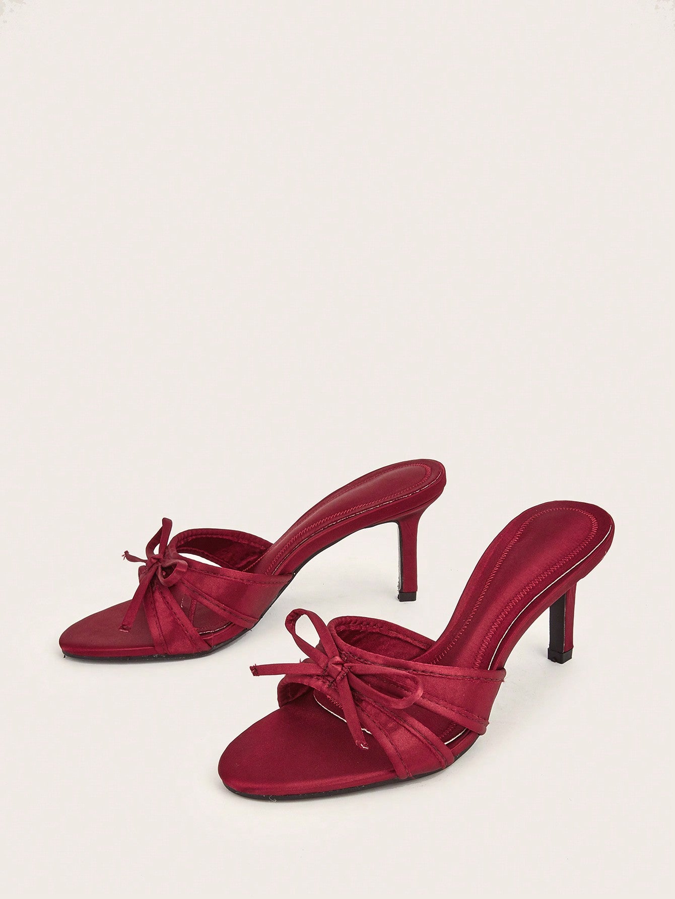 Patent Leather Pointed Toe Butterfly Strap Open Back Mules Stiletto High Heels, Burgundy