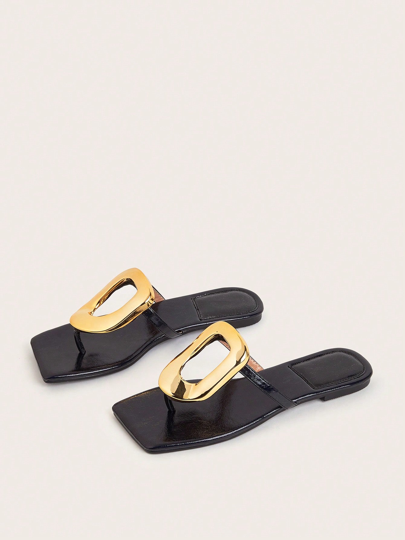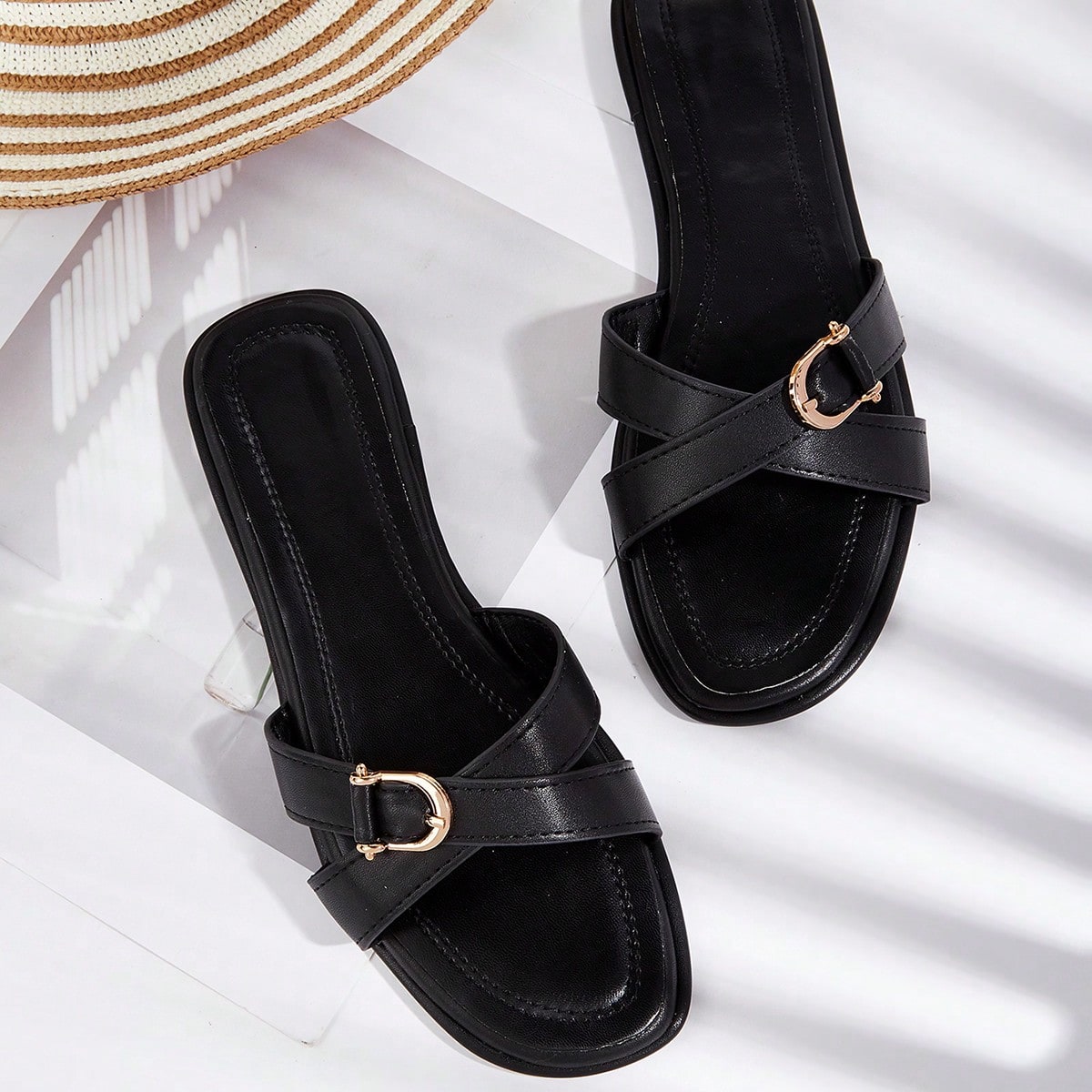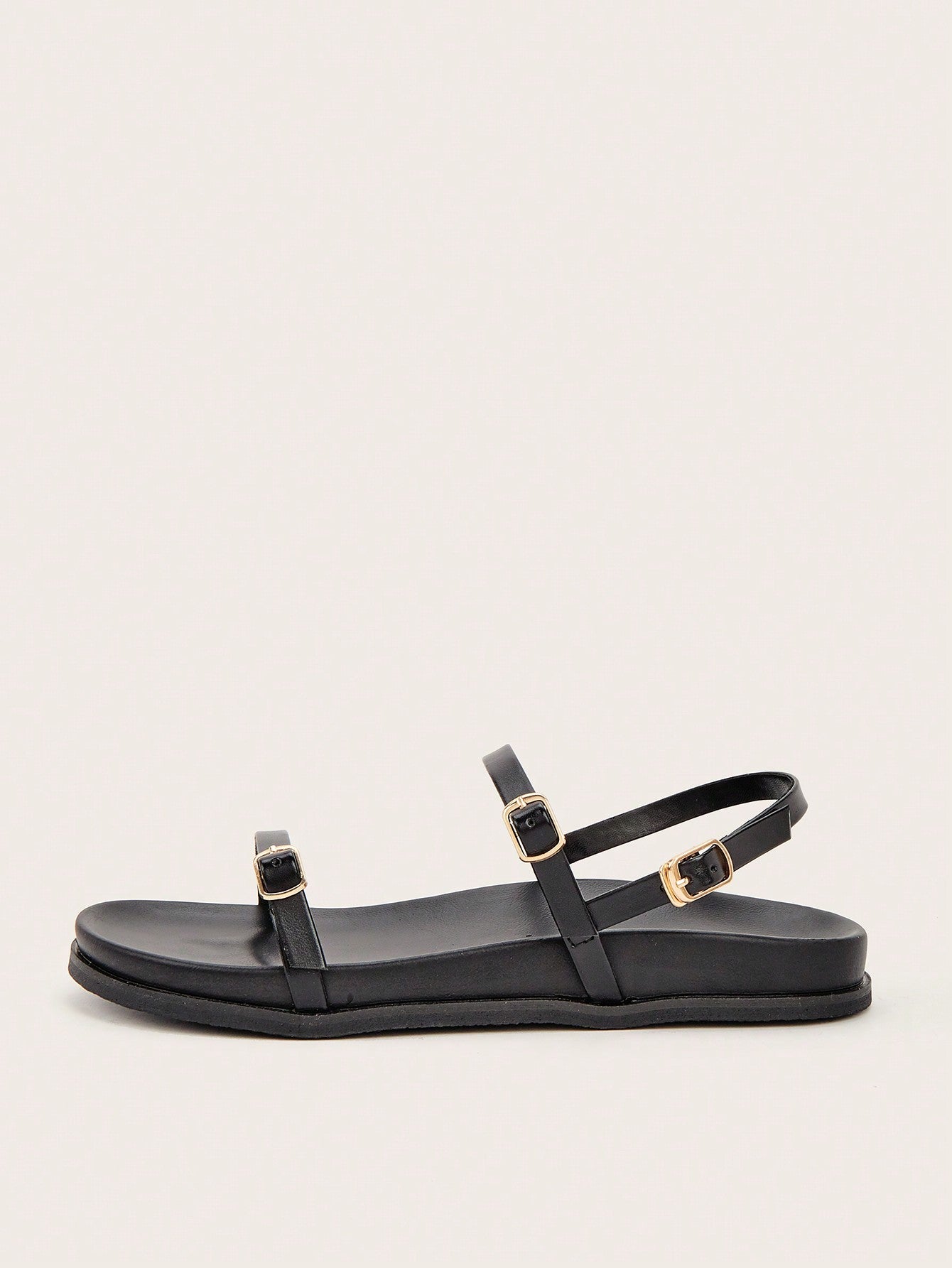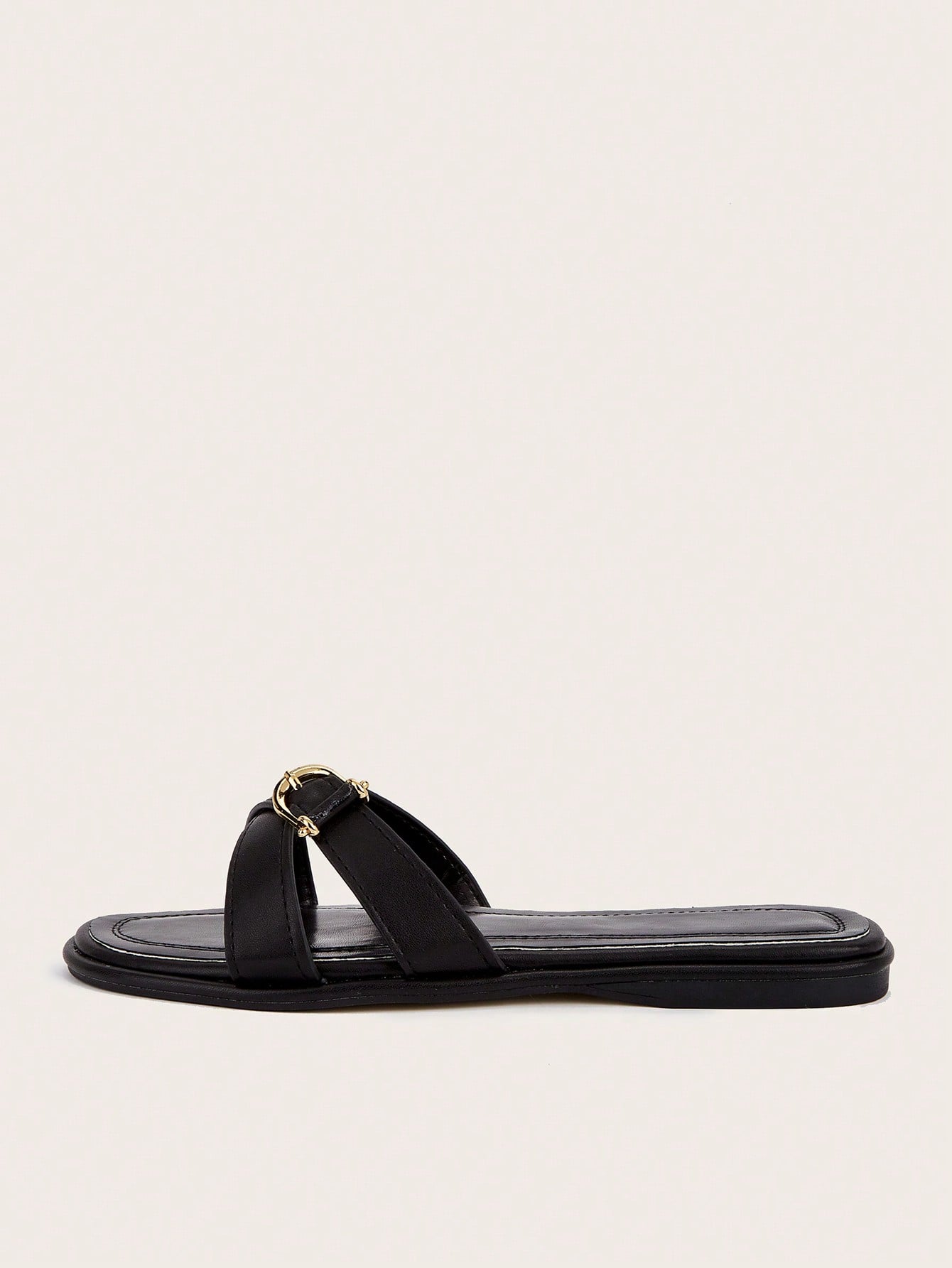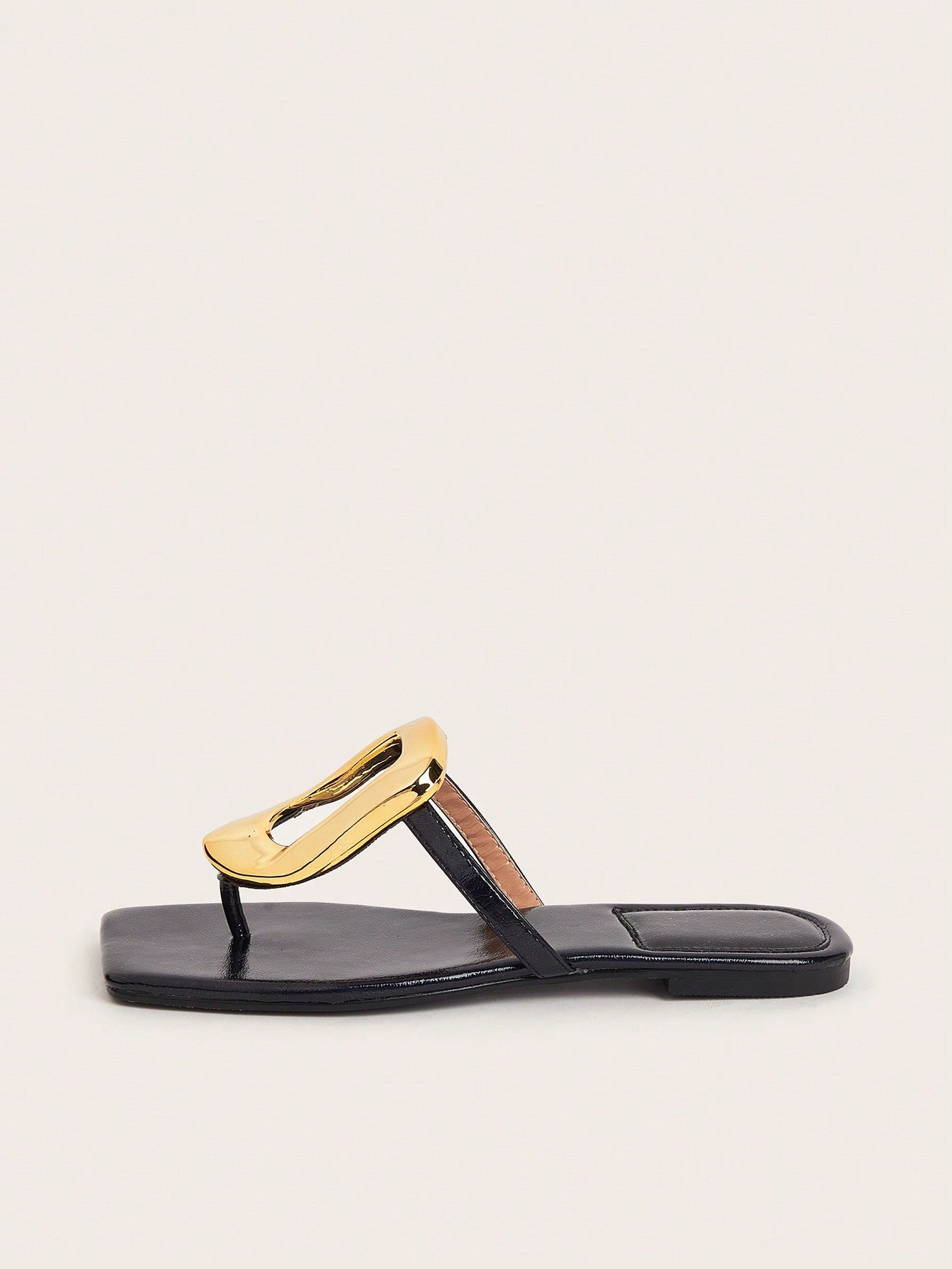 Party/Holiday/Casual Black Square Toe Metal Buckle Flat Sandals