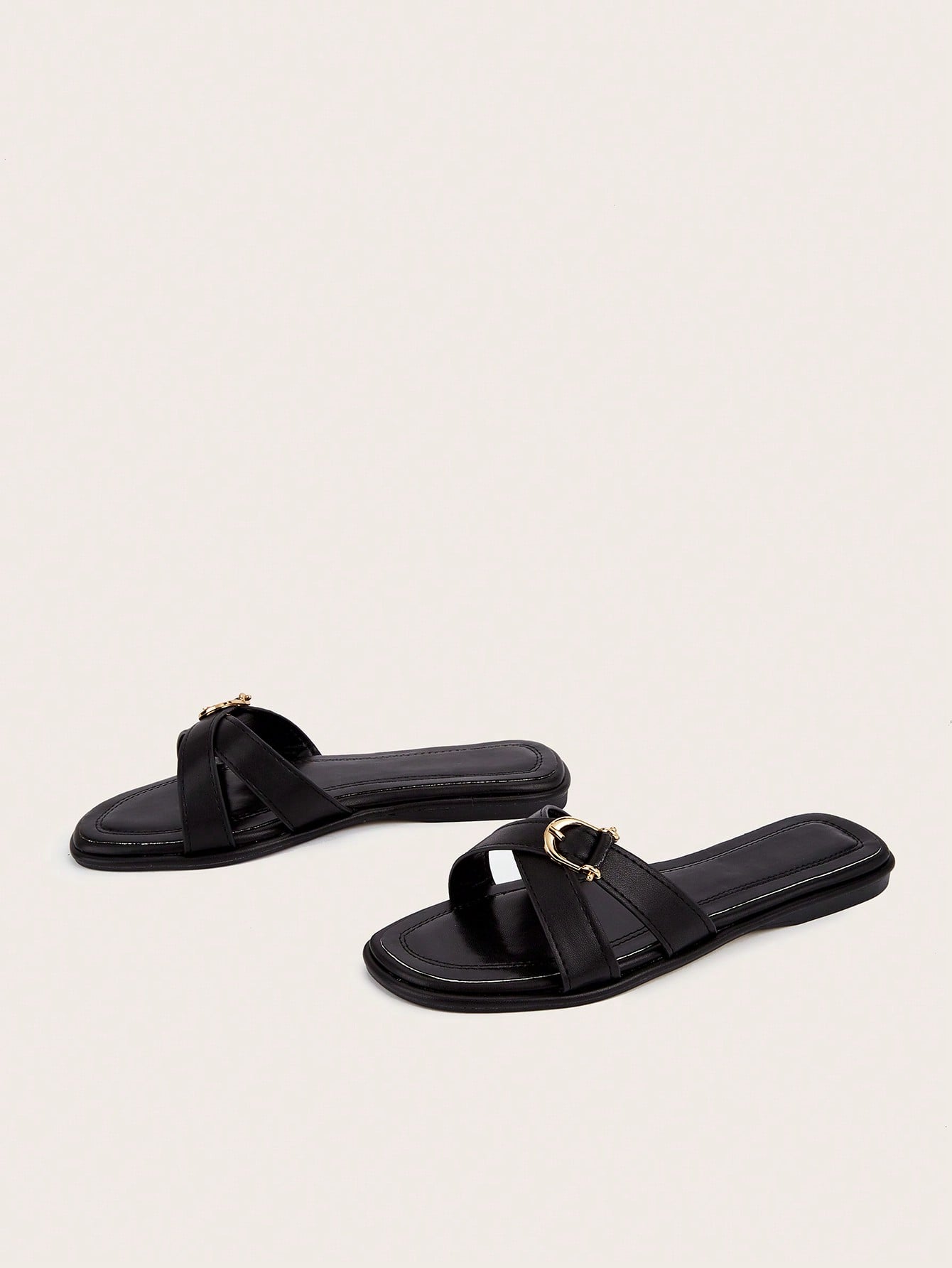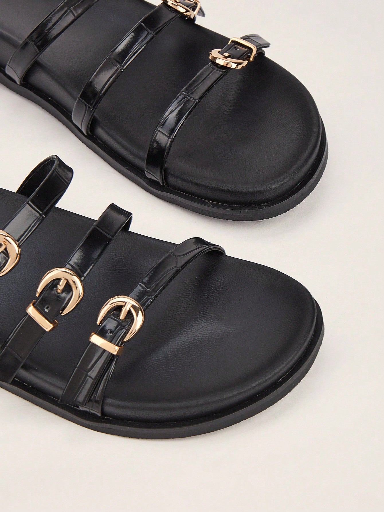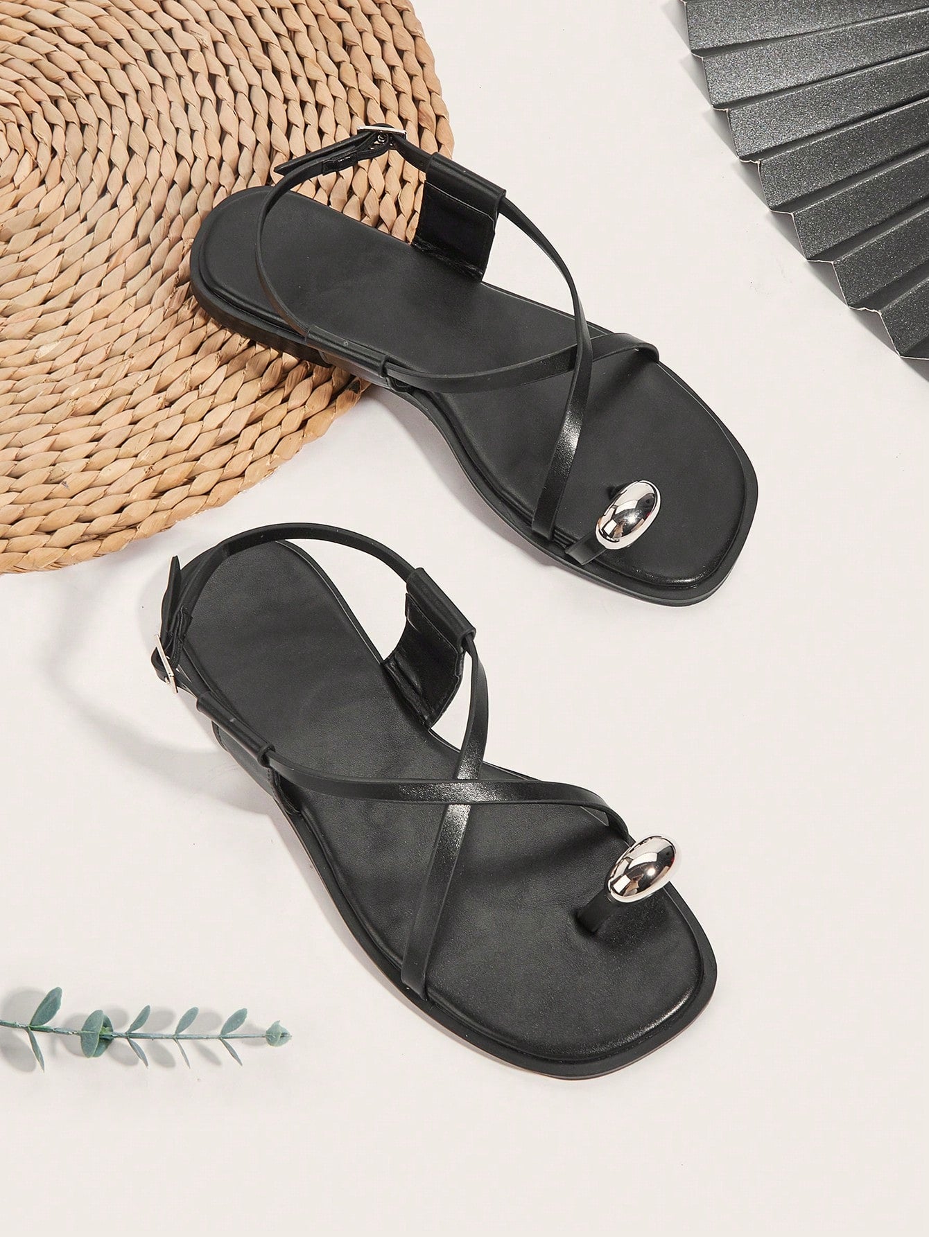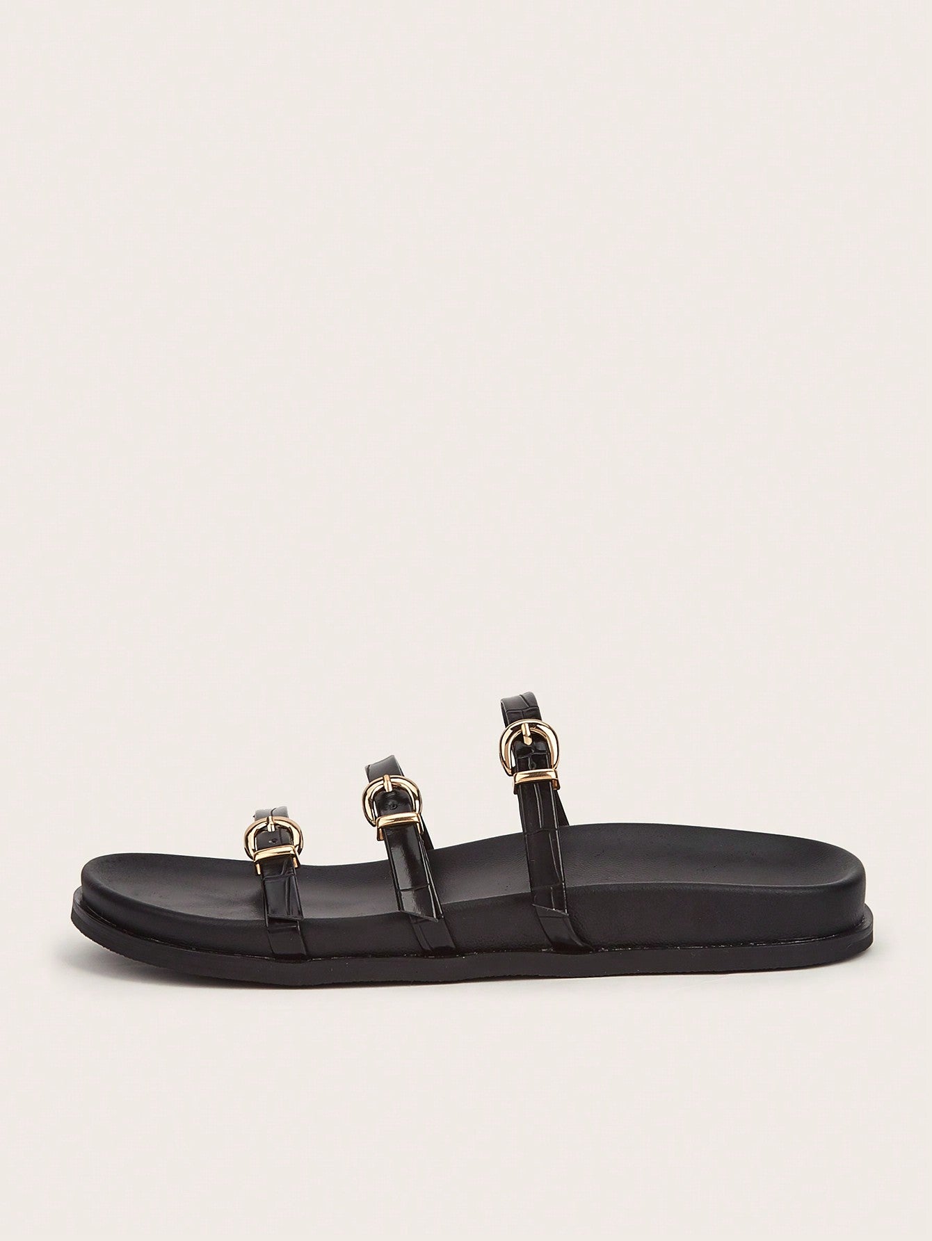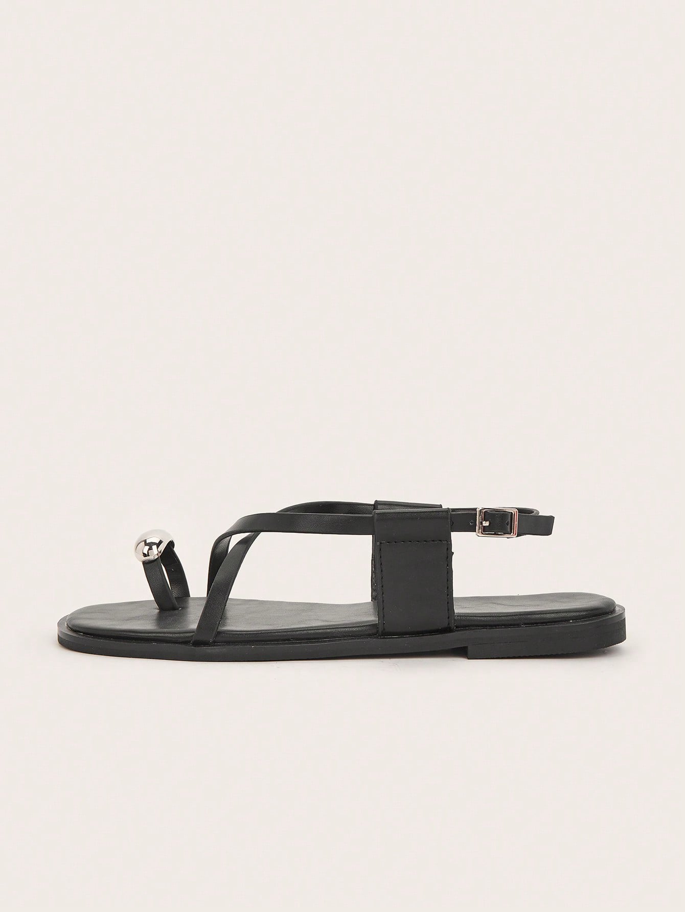 Party/Holiday/Casual Black Square Toe Metal Buckle Flat Sandals