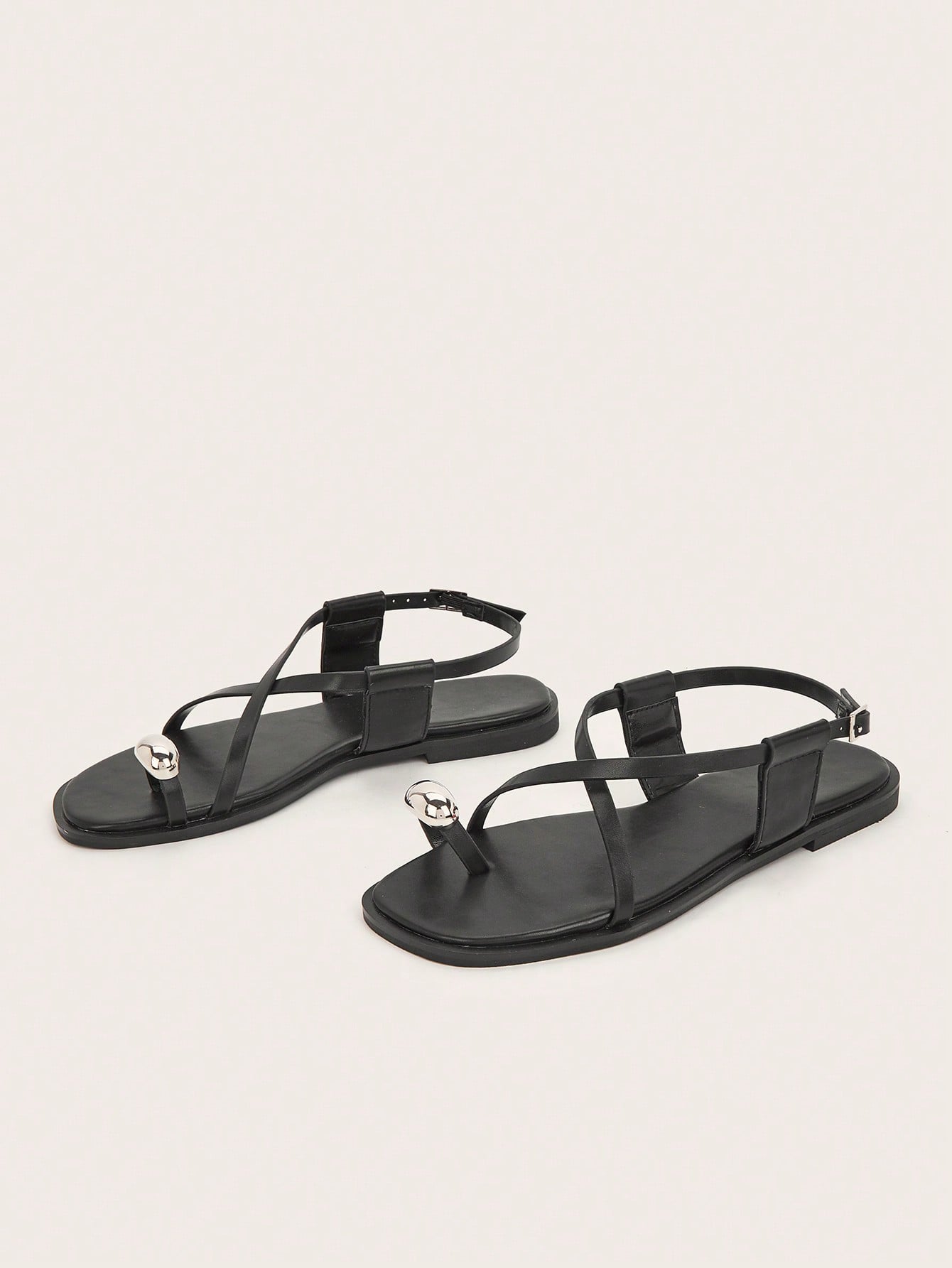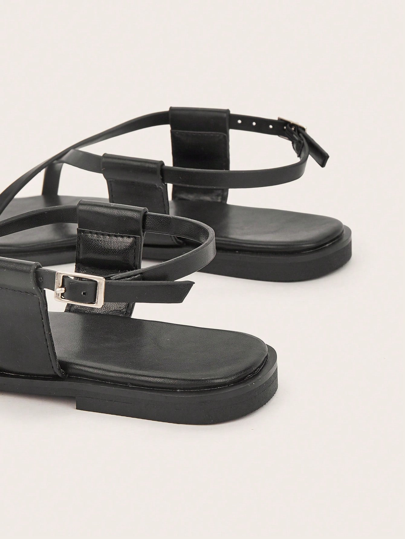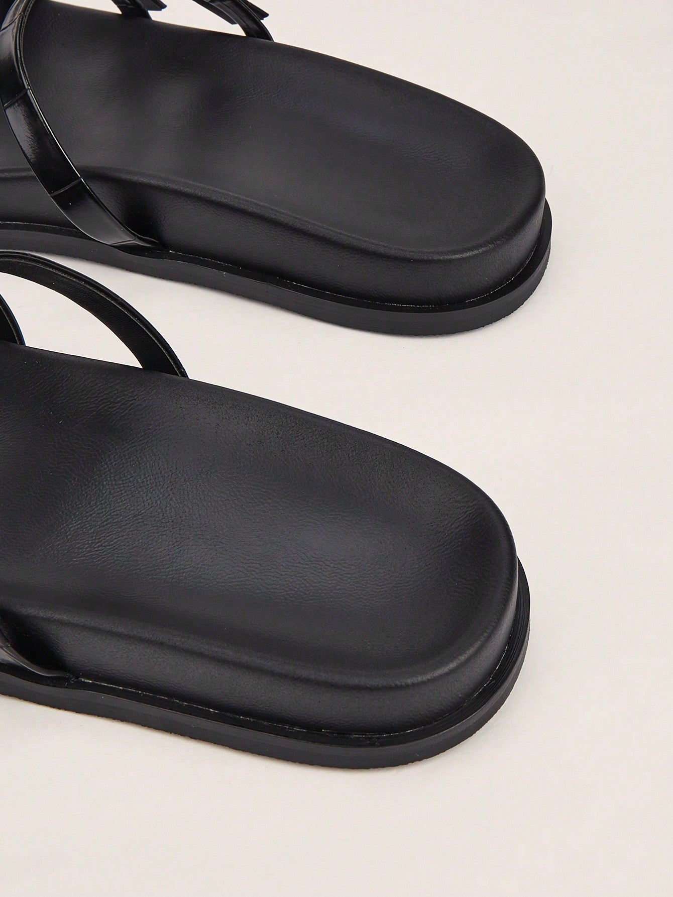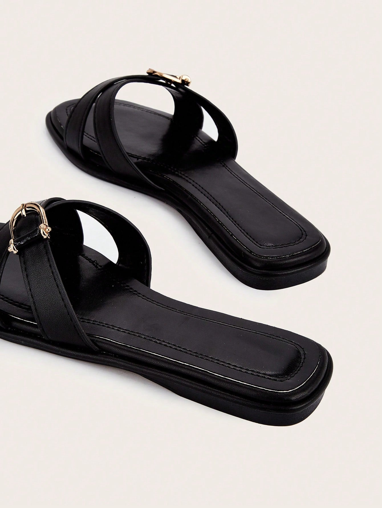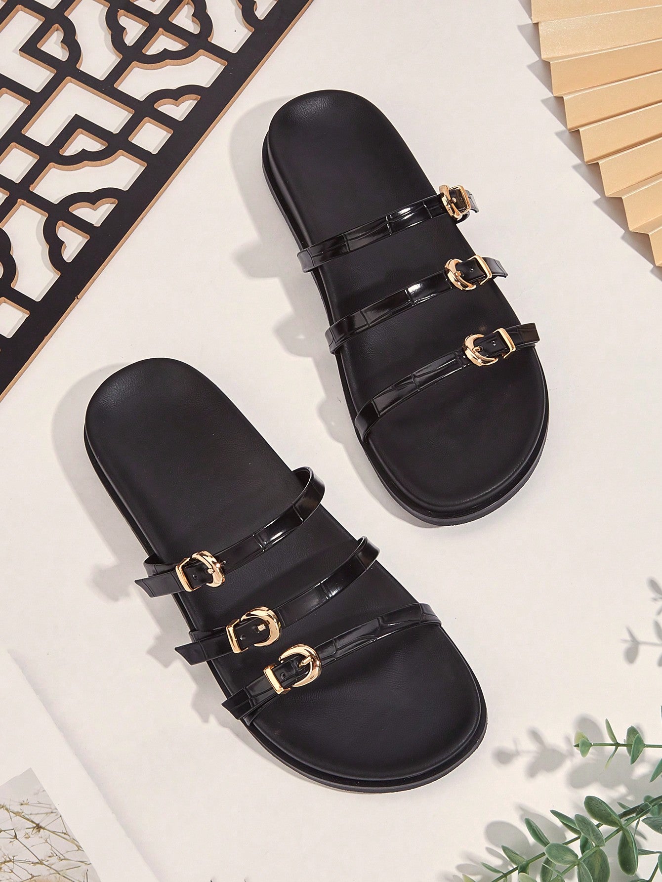 Party/Holiday/Casual Black Square Toe Metal Buckle Flat Sandals