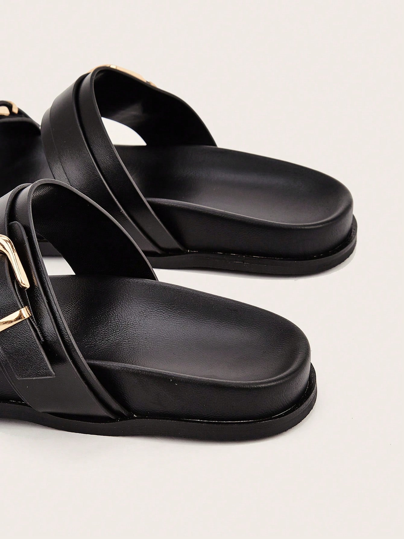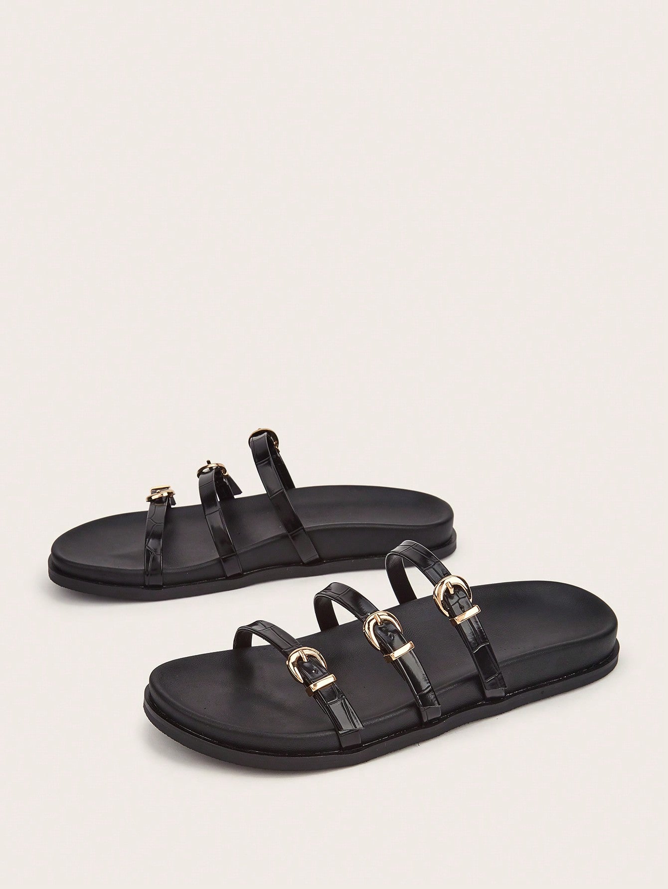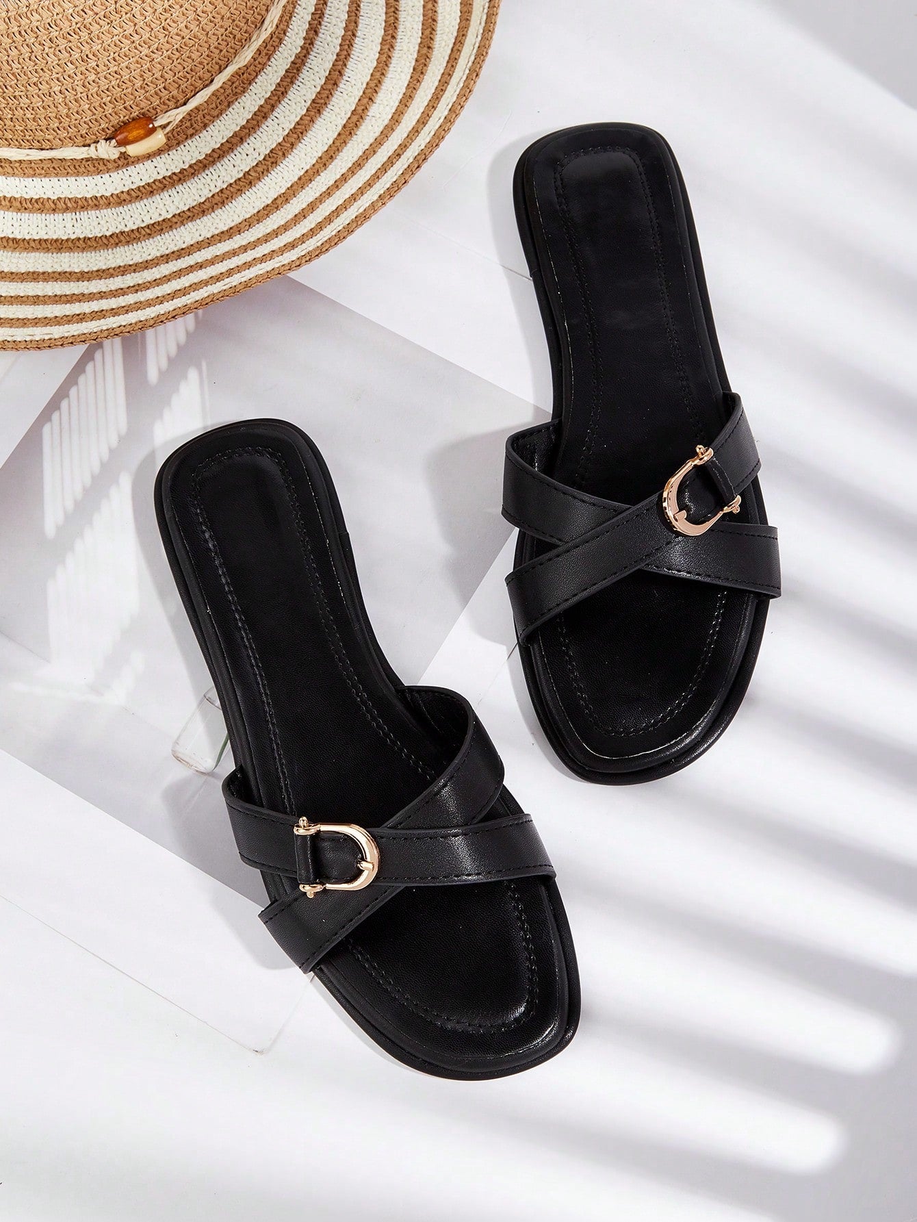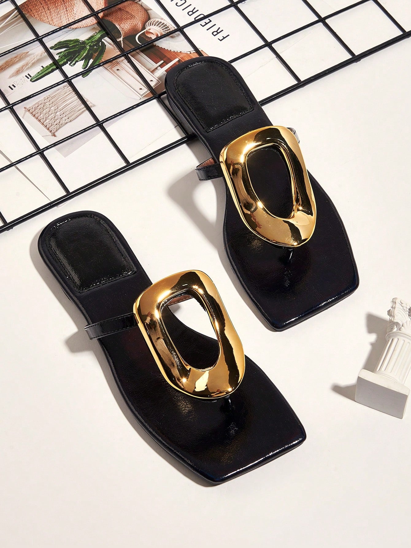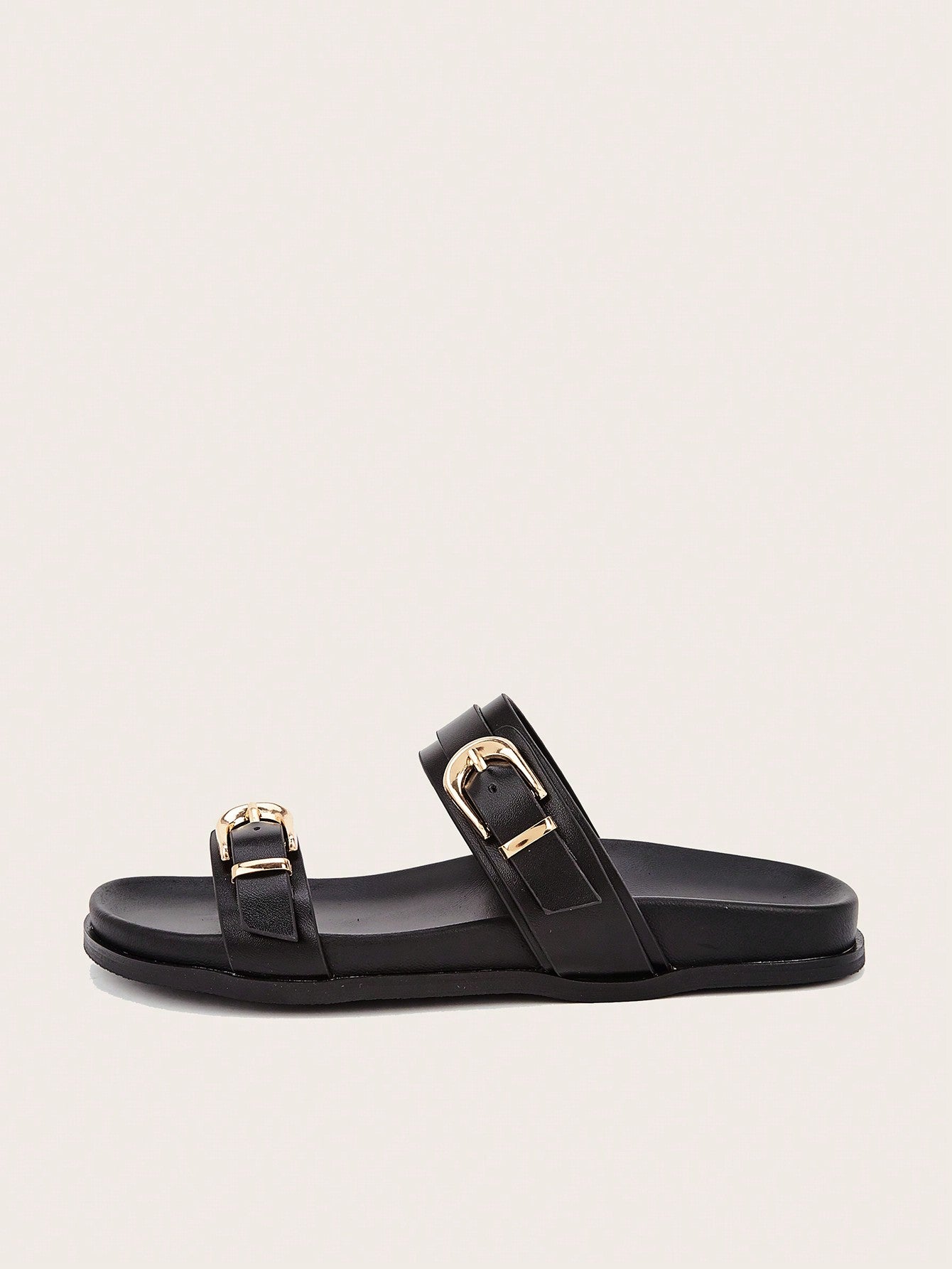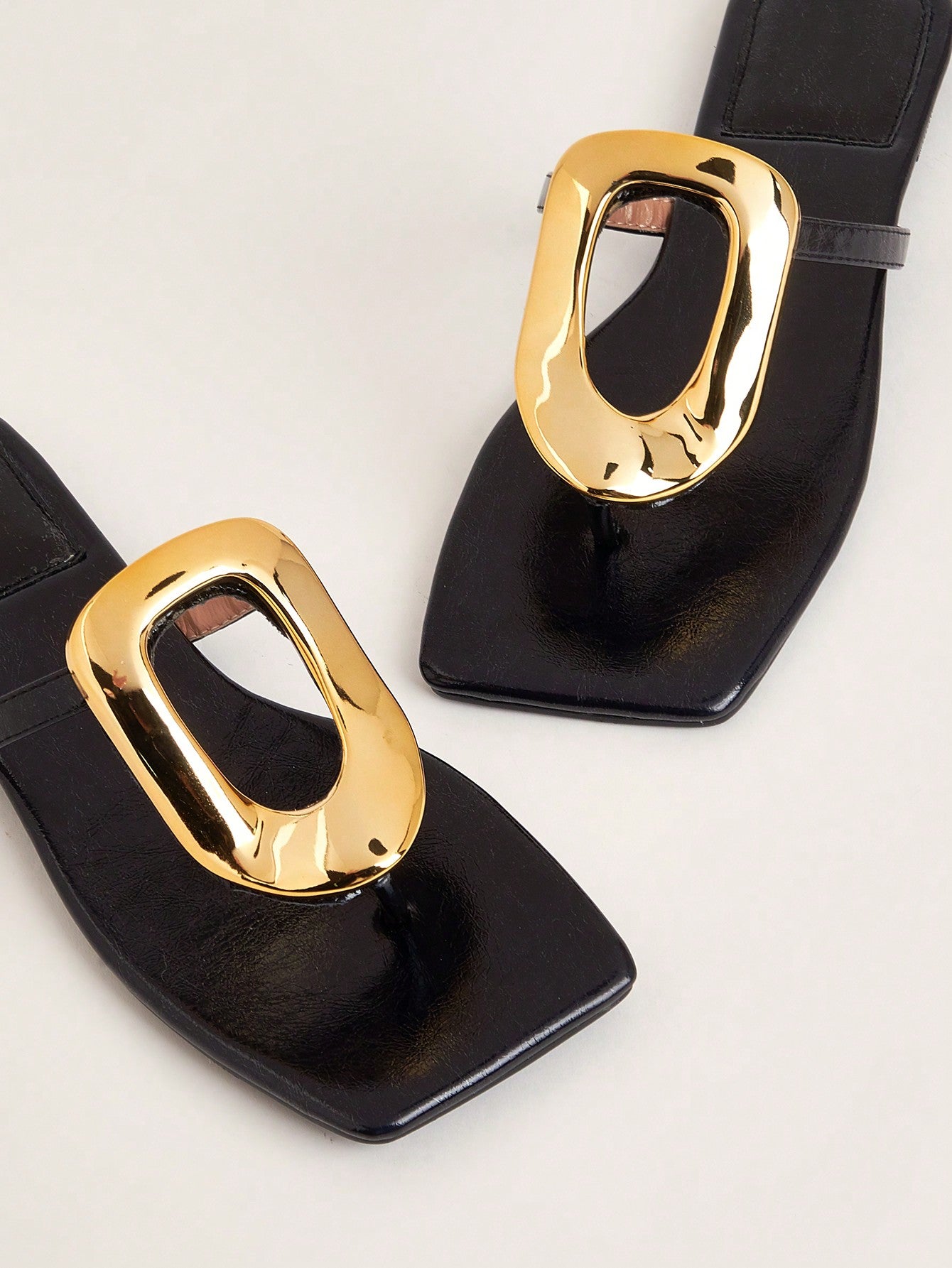 Party/Holiday/Casual Black Square Toe Metal Buckle Flat Sandals