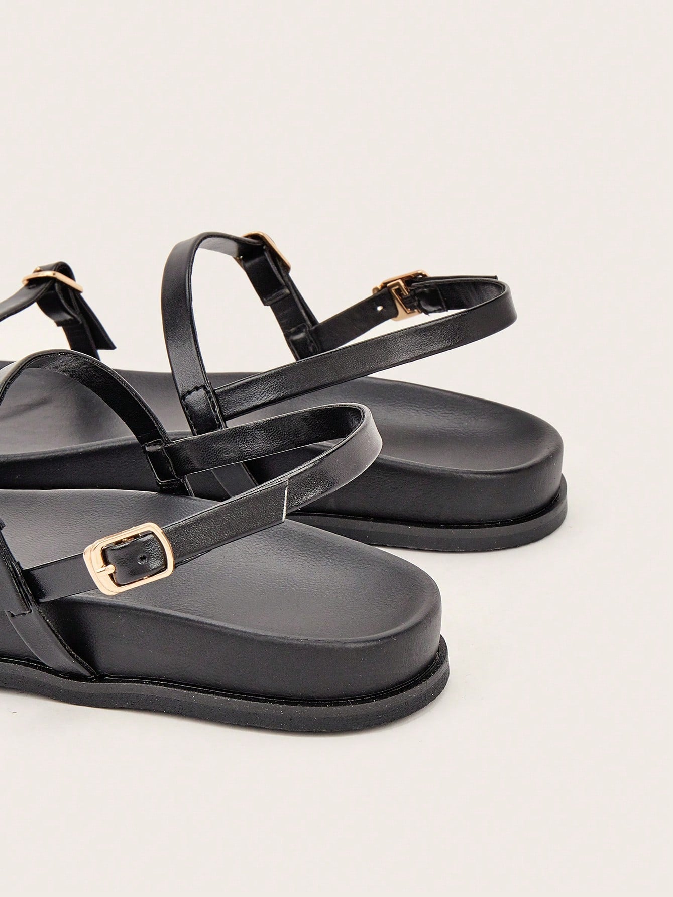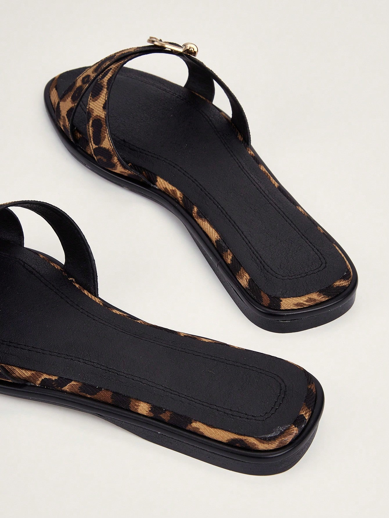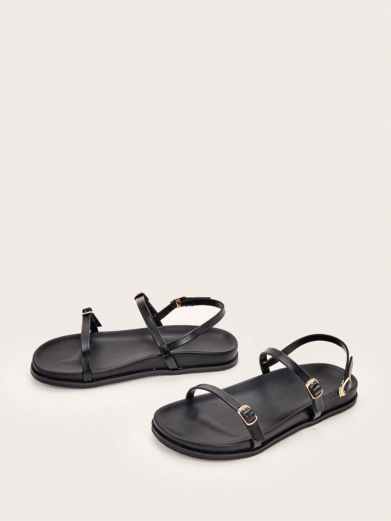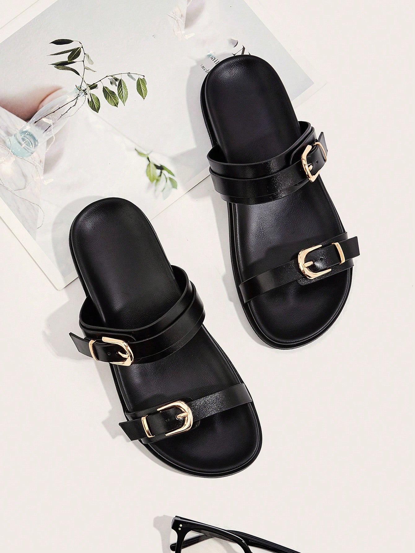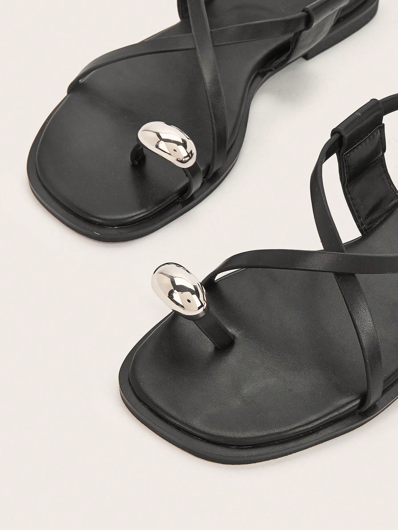 Party/Holiday/Casual Black Square Toe Metal Buckle Flat Sandals