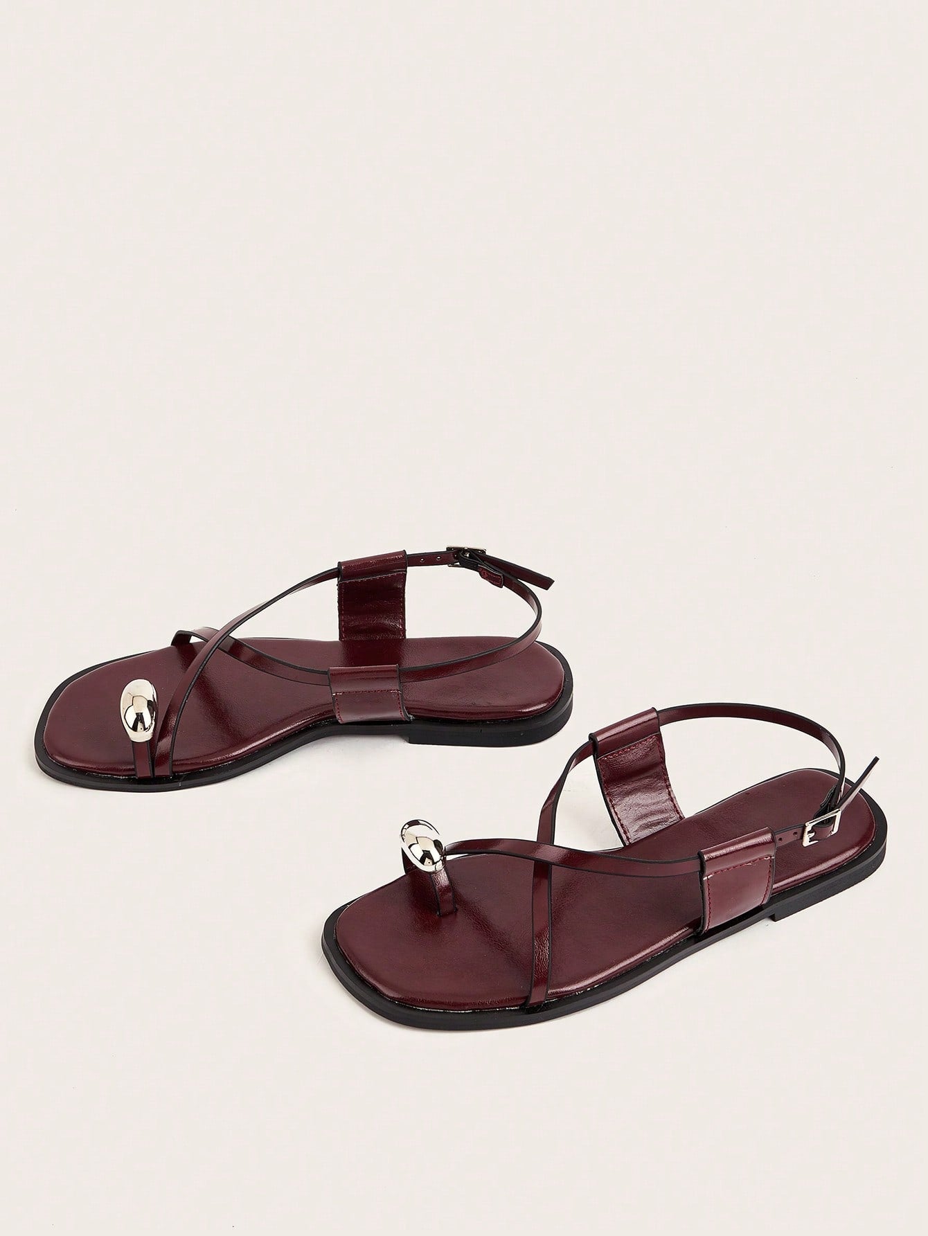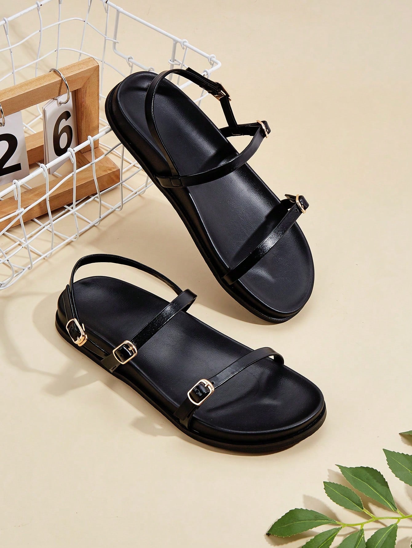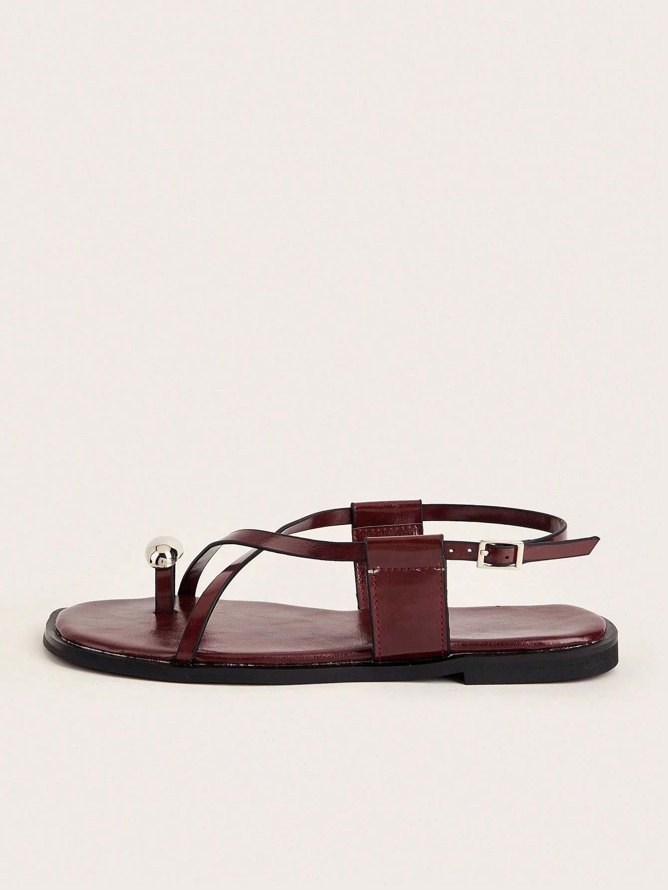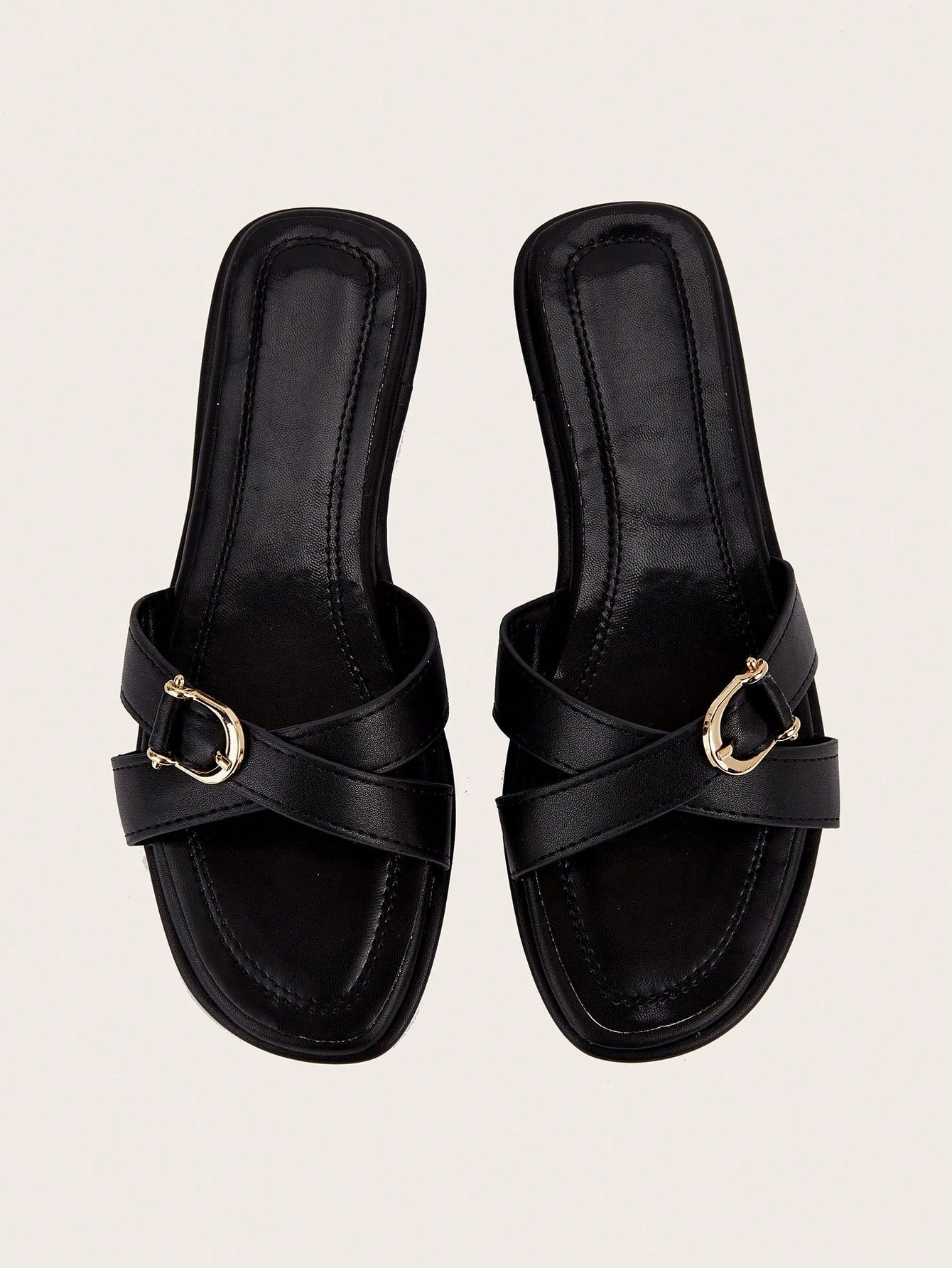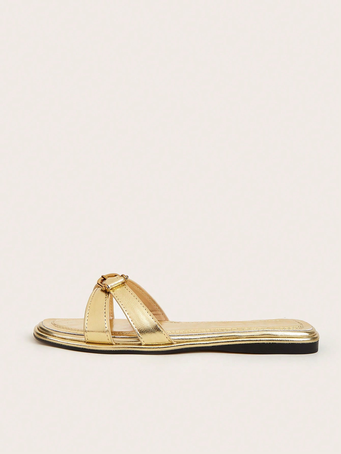 Party/Holiday/Casual Black Square Toe Metal Buckle Flat Sandals