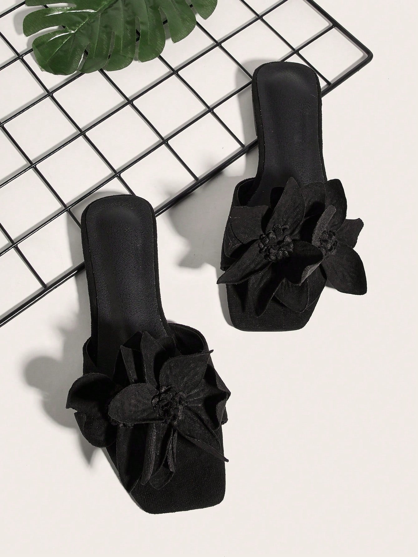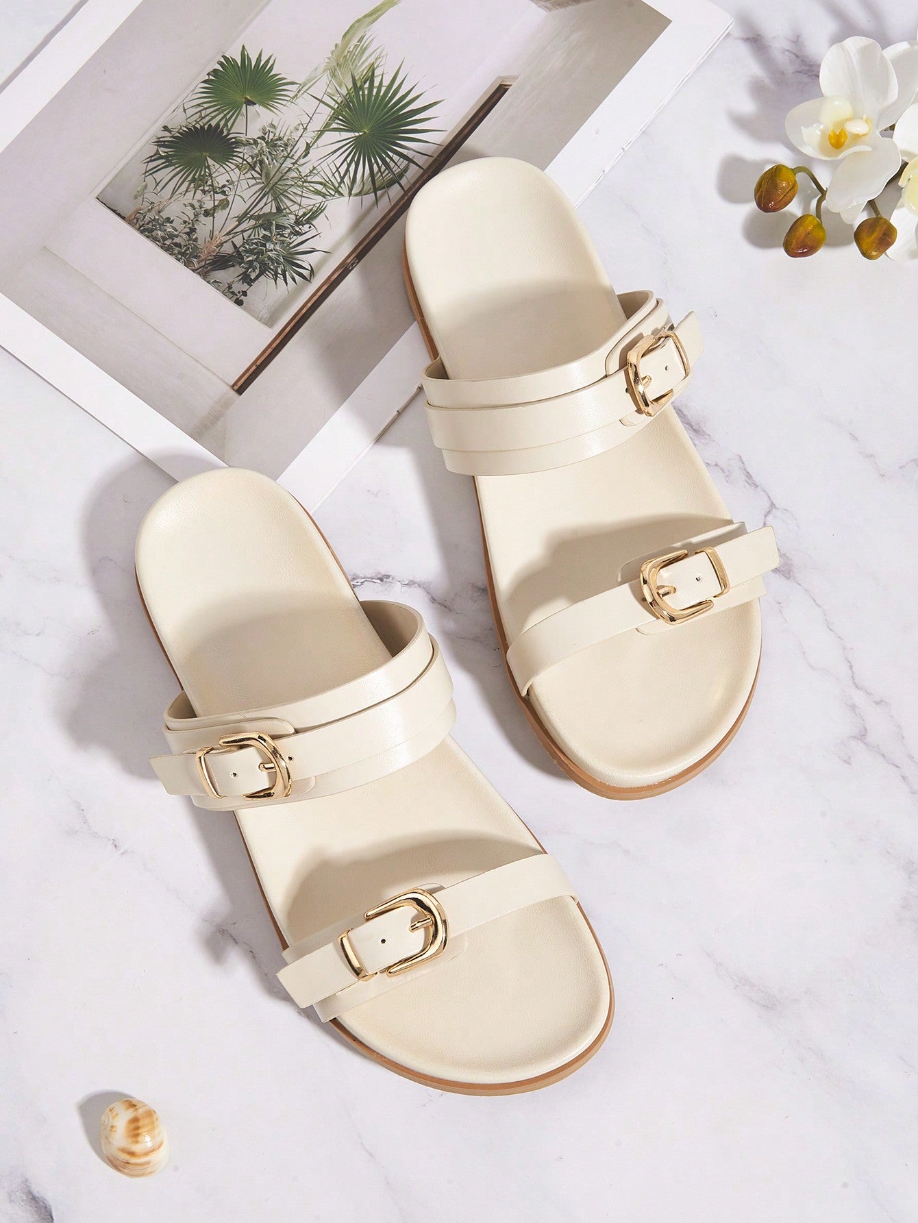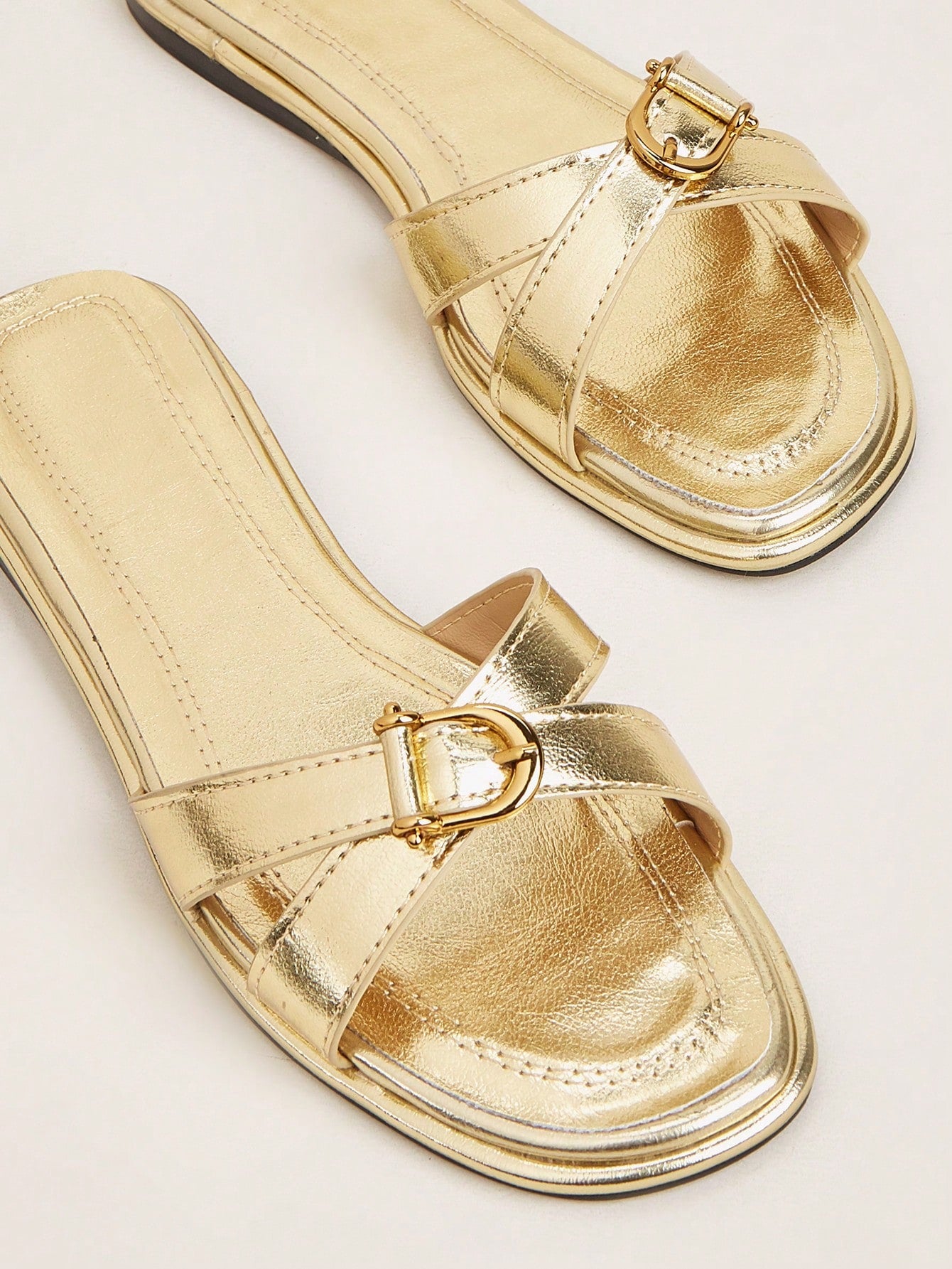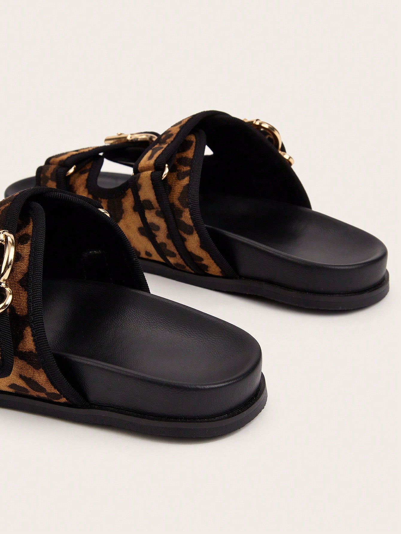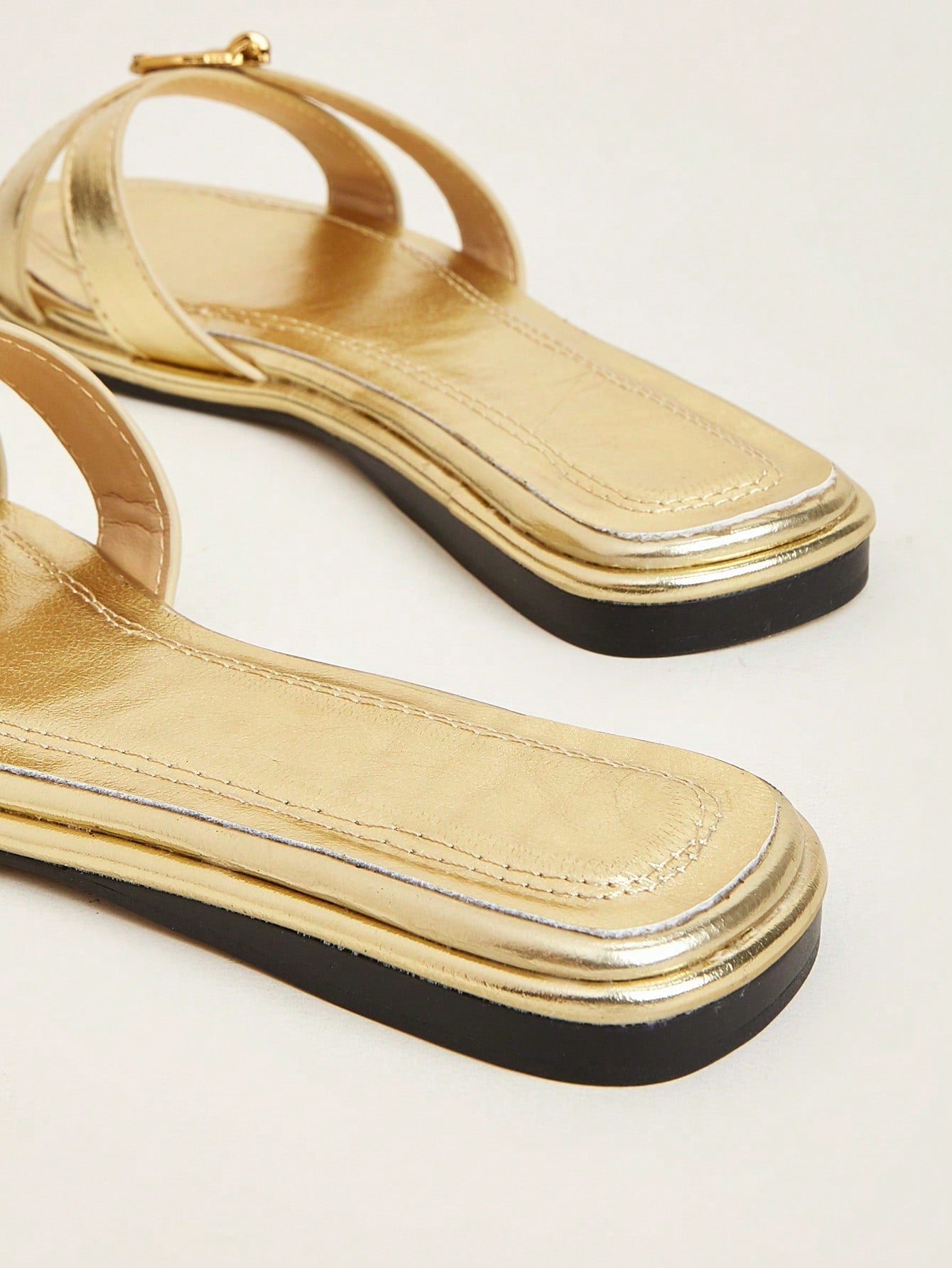 Party/Holiday/Casual Black Square Toe Metal Buckle Flat Sandals