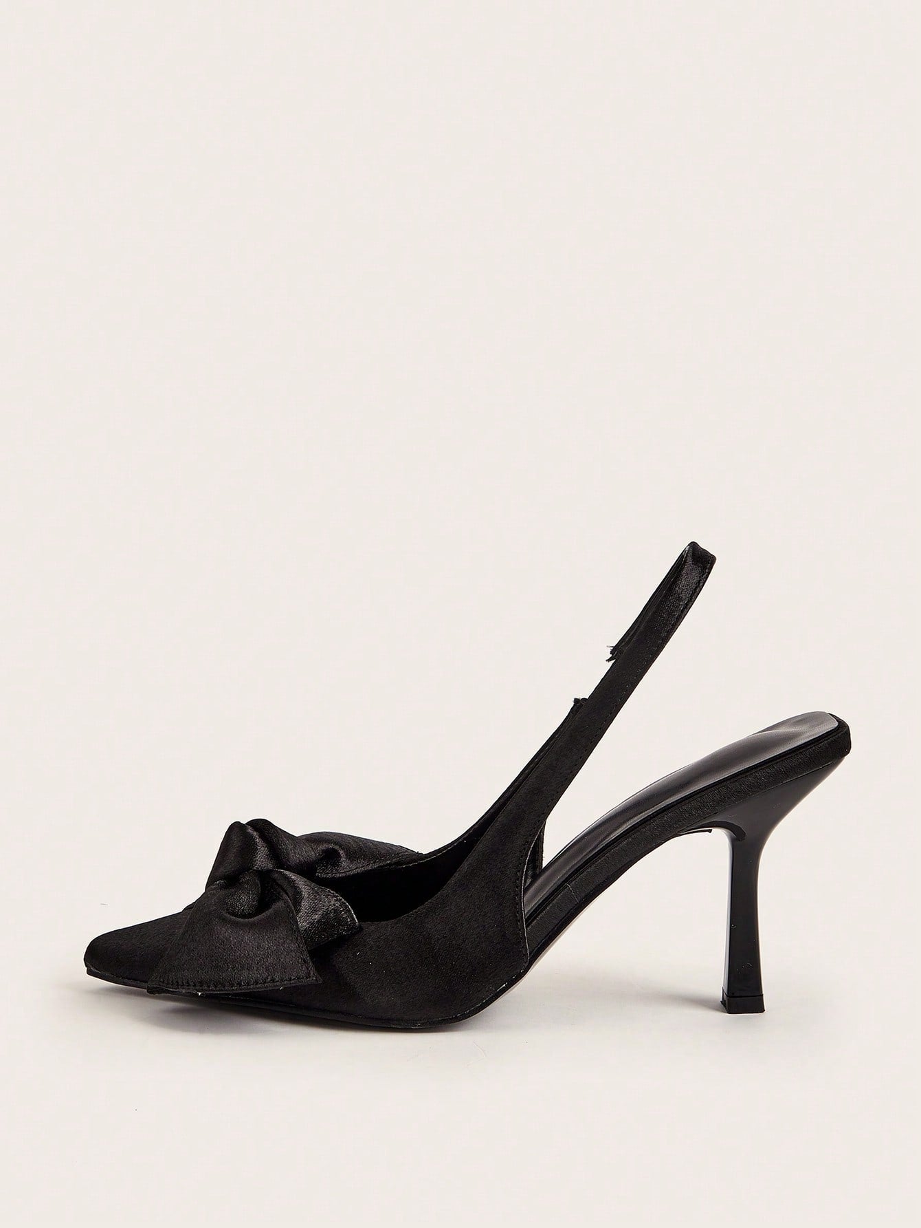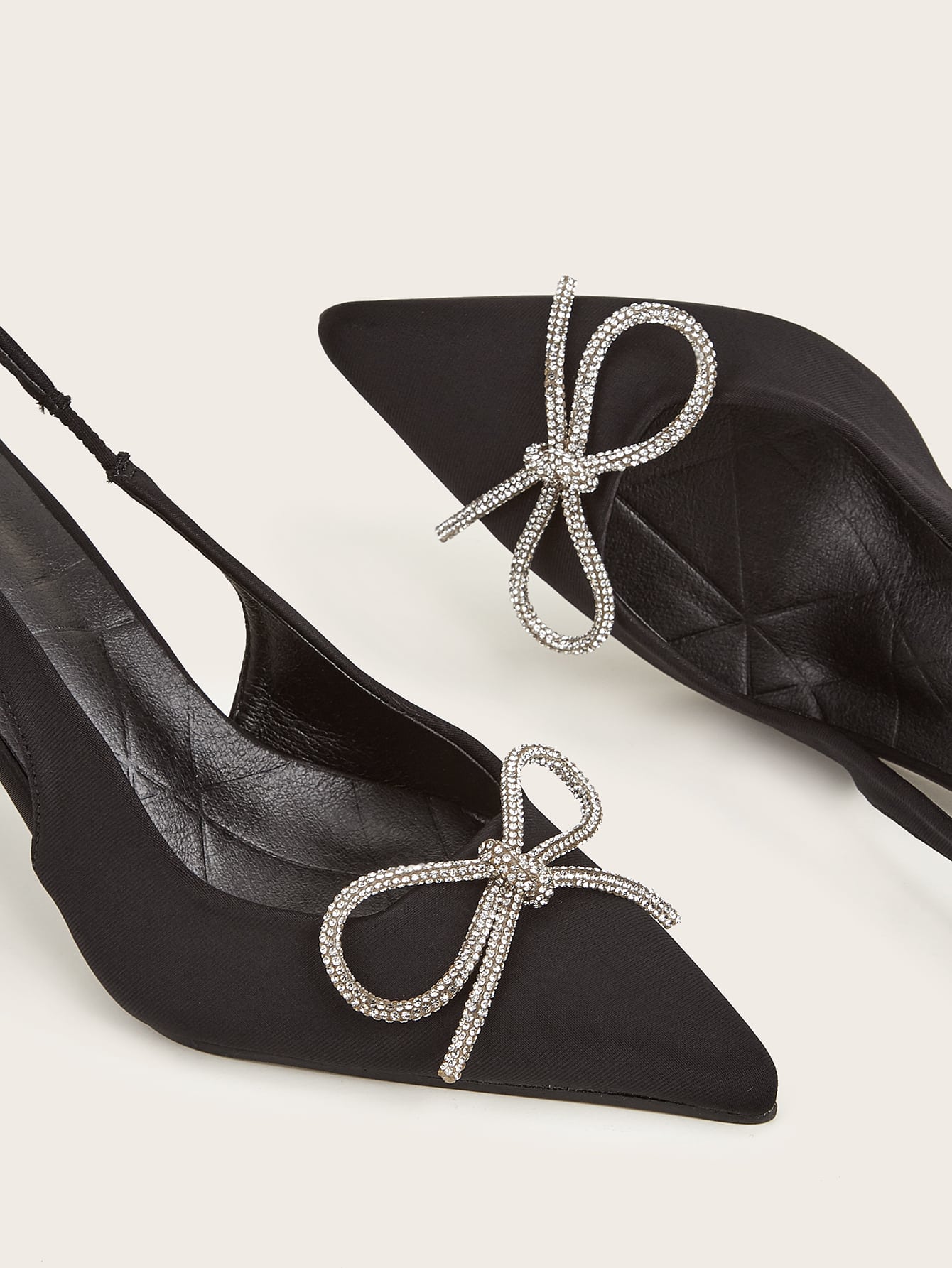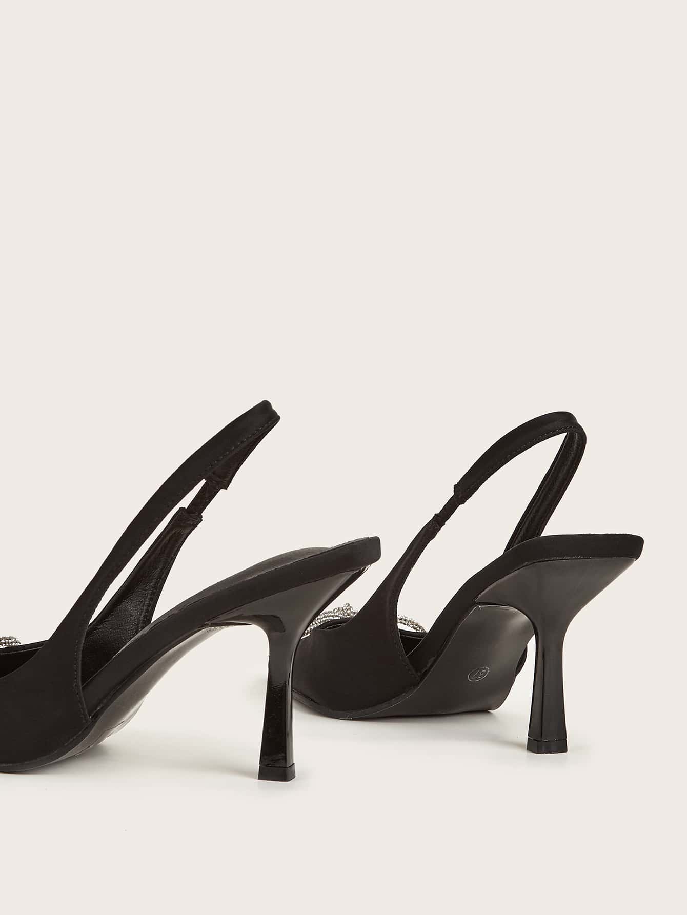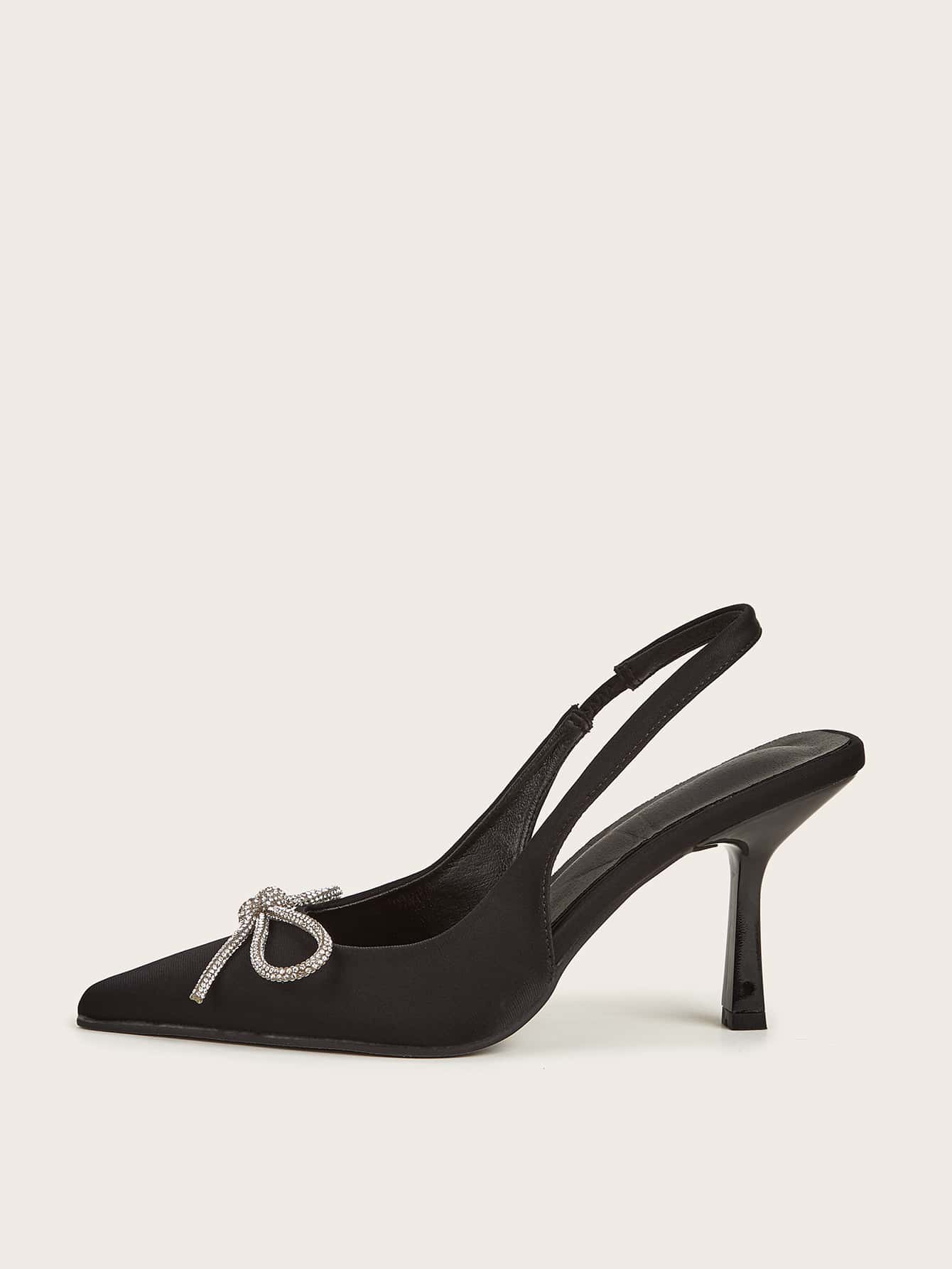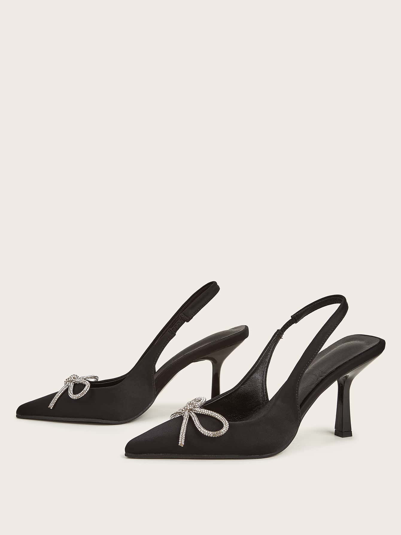 Women Rhinestone Bow Decor Point Toe Sculptural Heeled Slingback Point Toe Stiletto Heeled Slingback Pumps Valentines