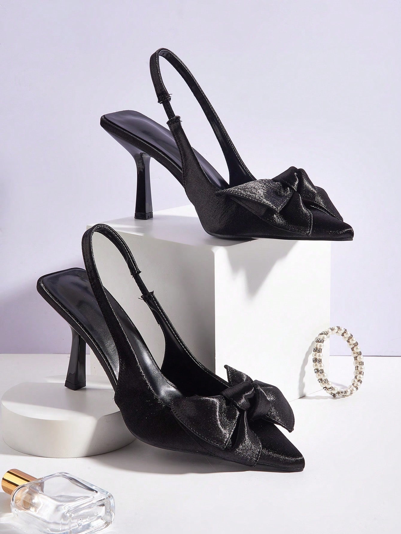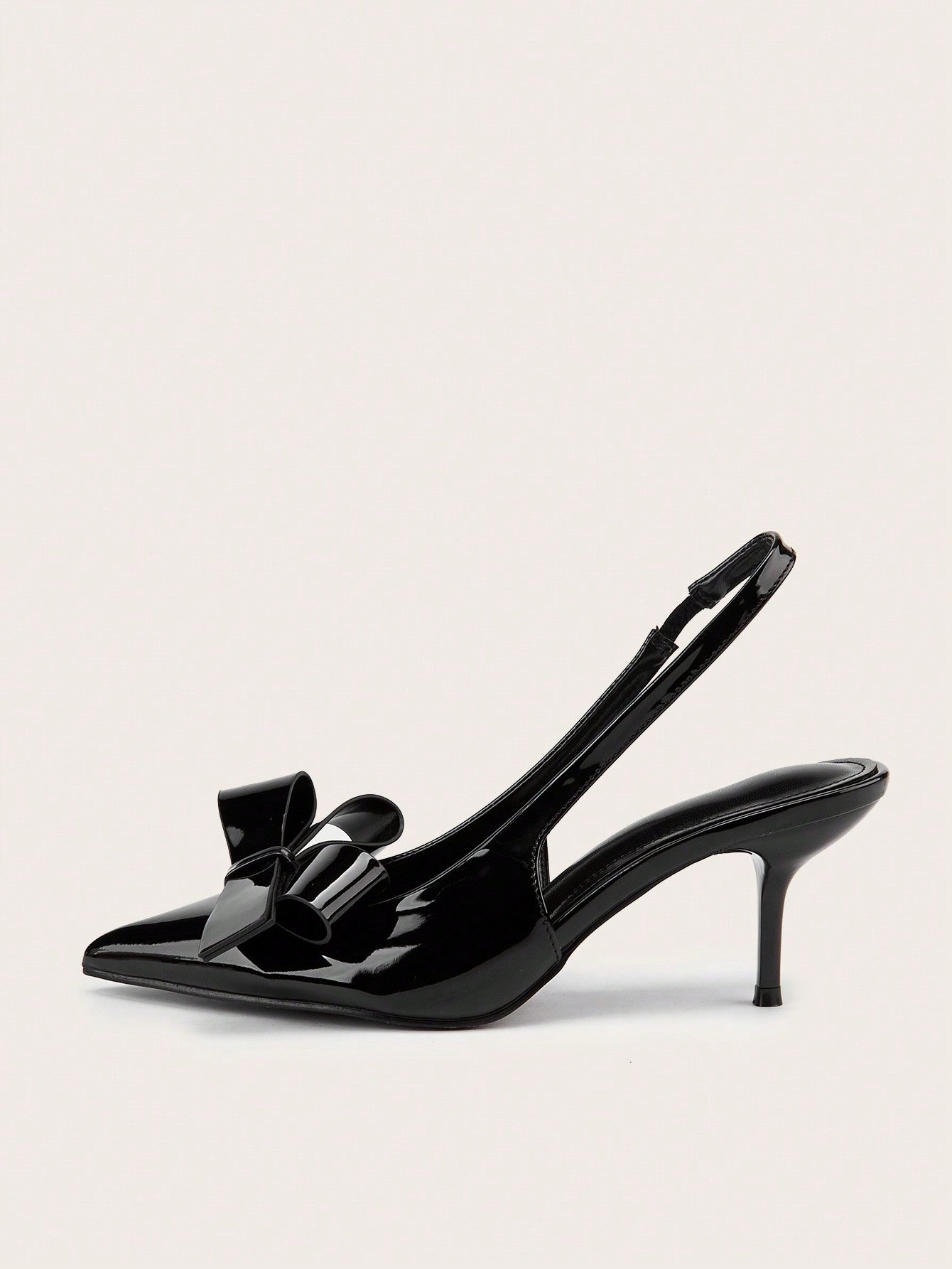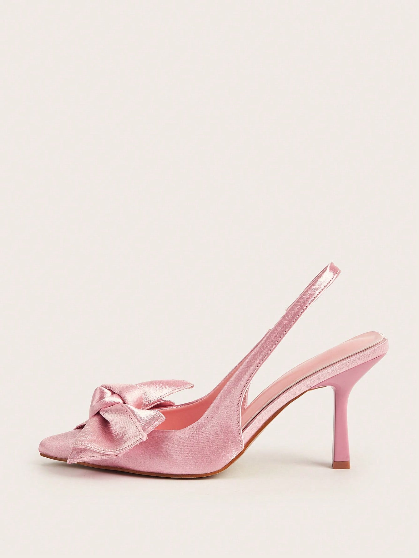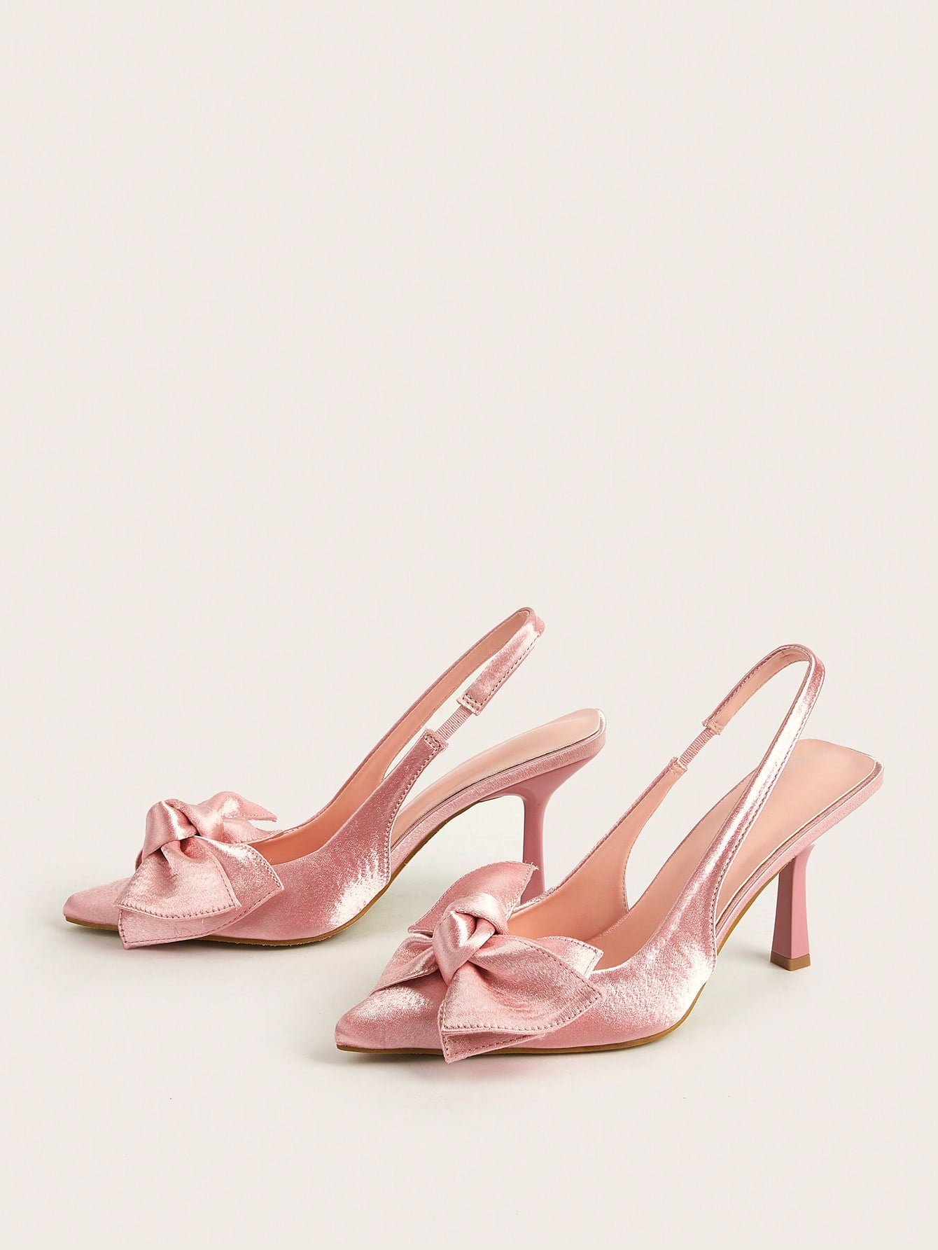 Women Rhinestone Bow Decor Point Toe Sculptural Heeled Slingback Point Toe Stiletto Heeled Slingback Pumps Valentines