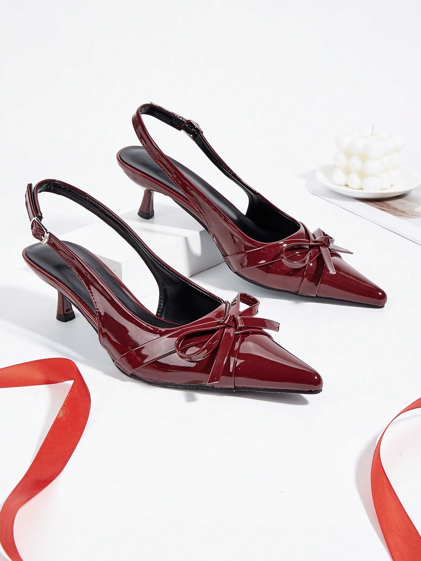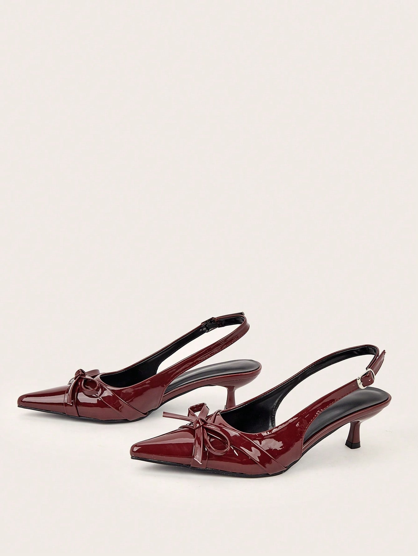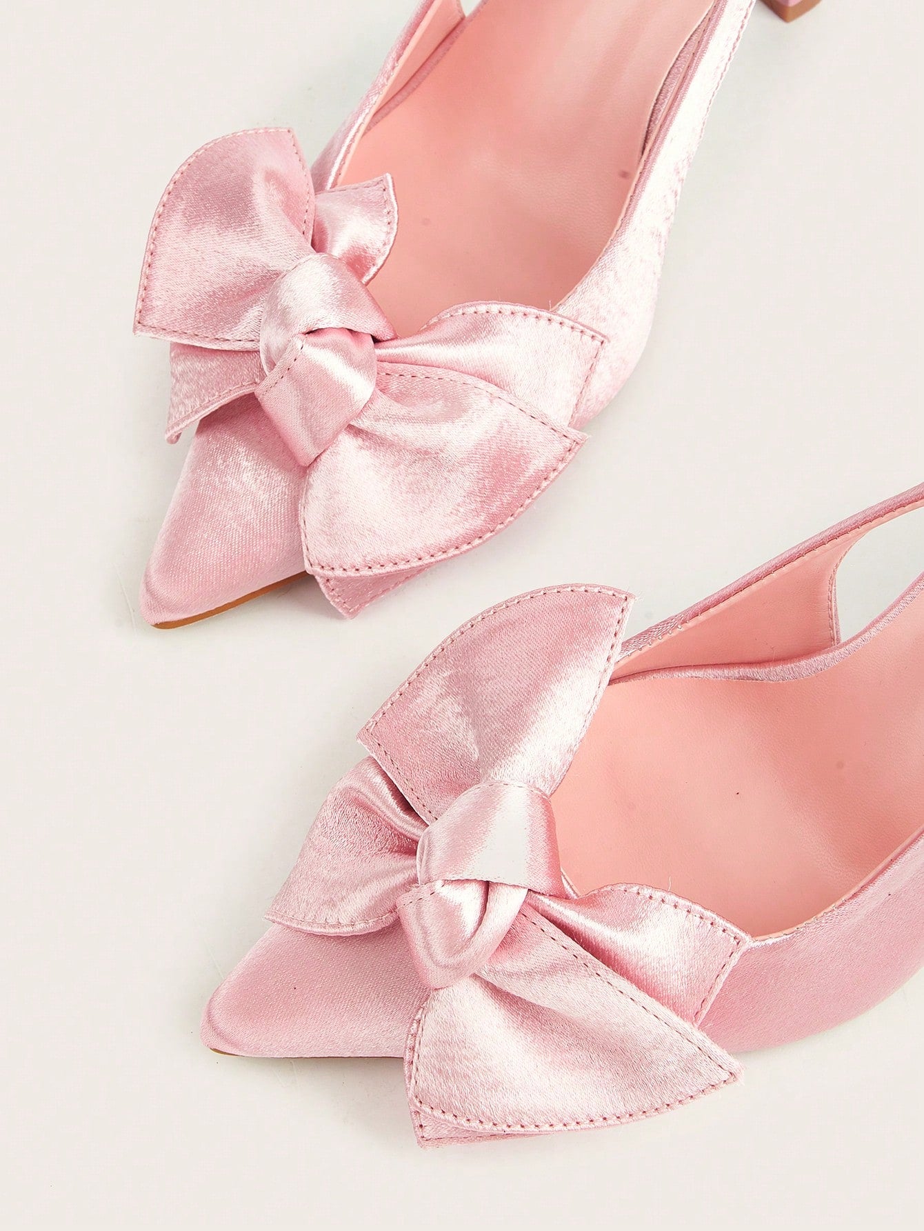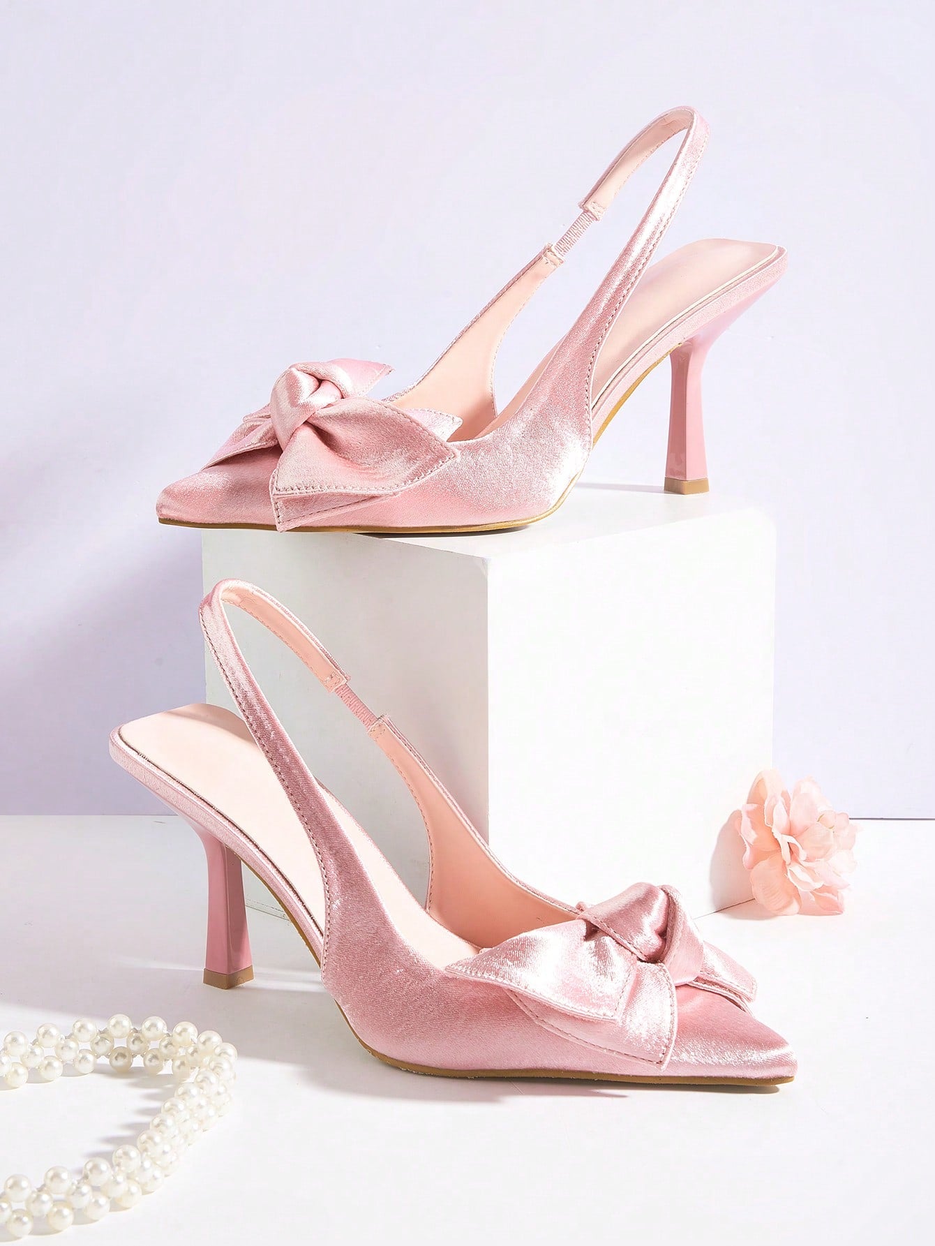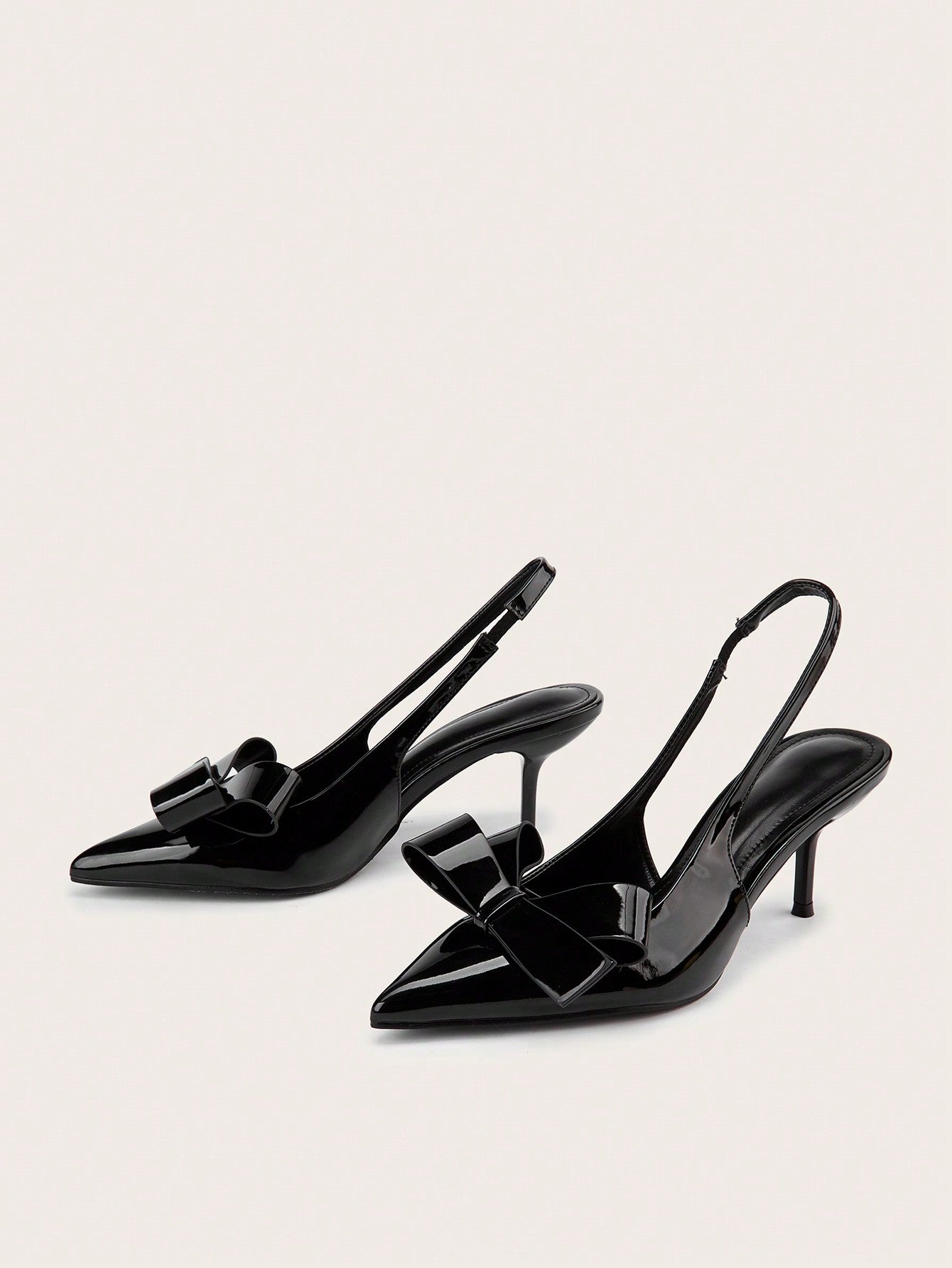 Women Rhinestone Bow Decor Point Toe Sculptural Heeled Slingback Point Toe Stiletto Heeled Slingback Pumps Valentines