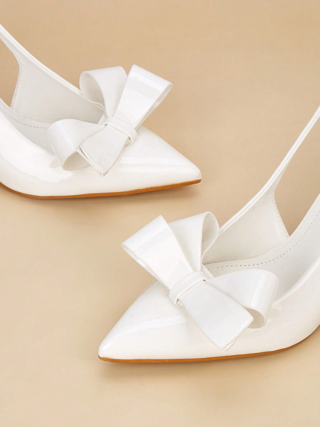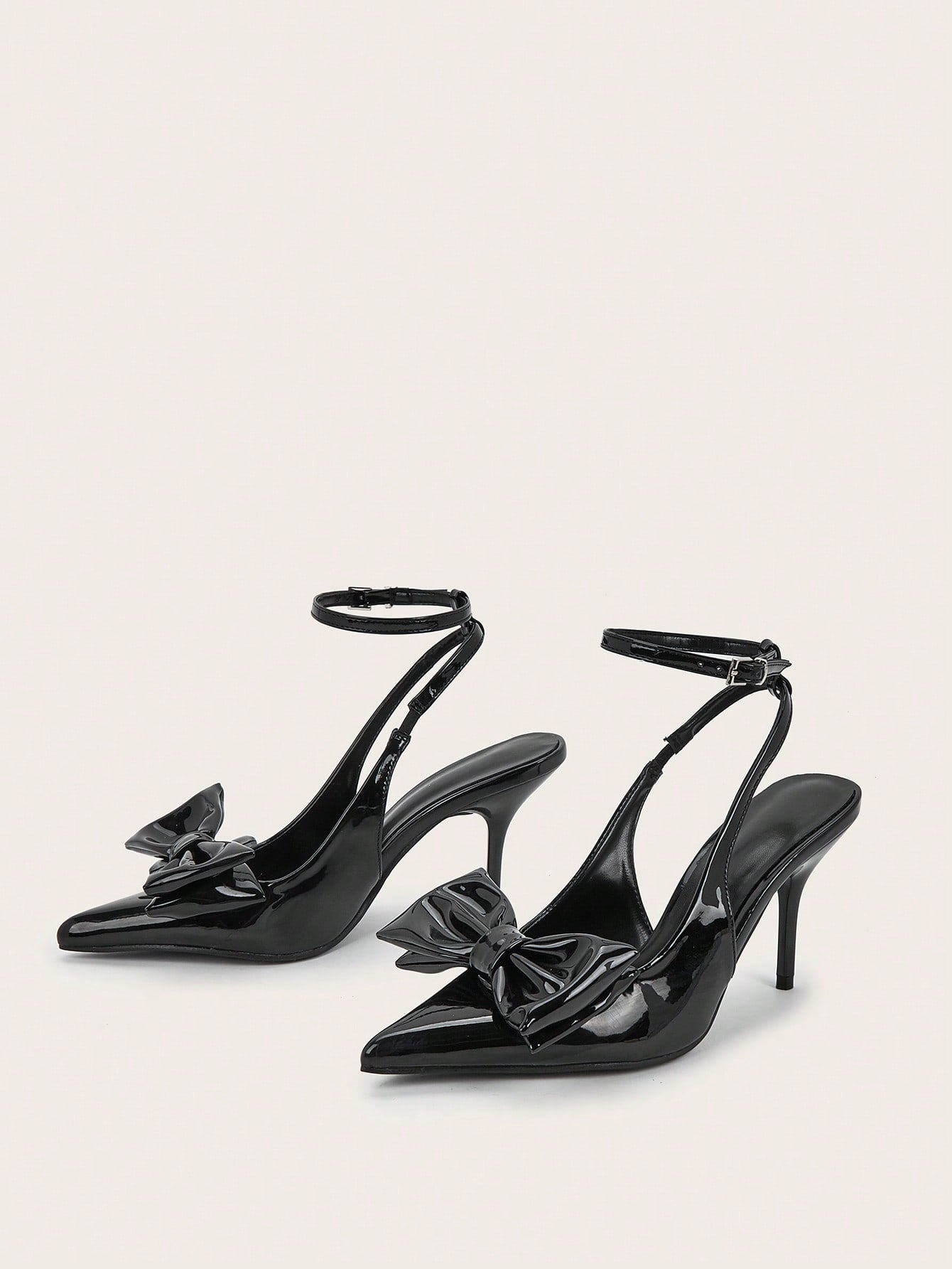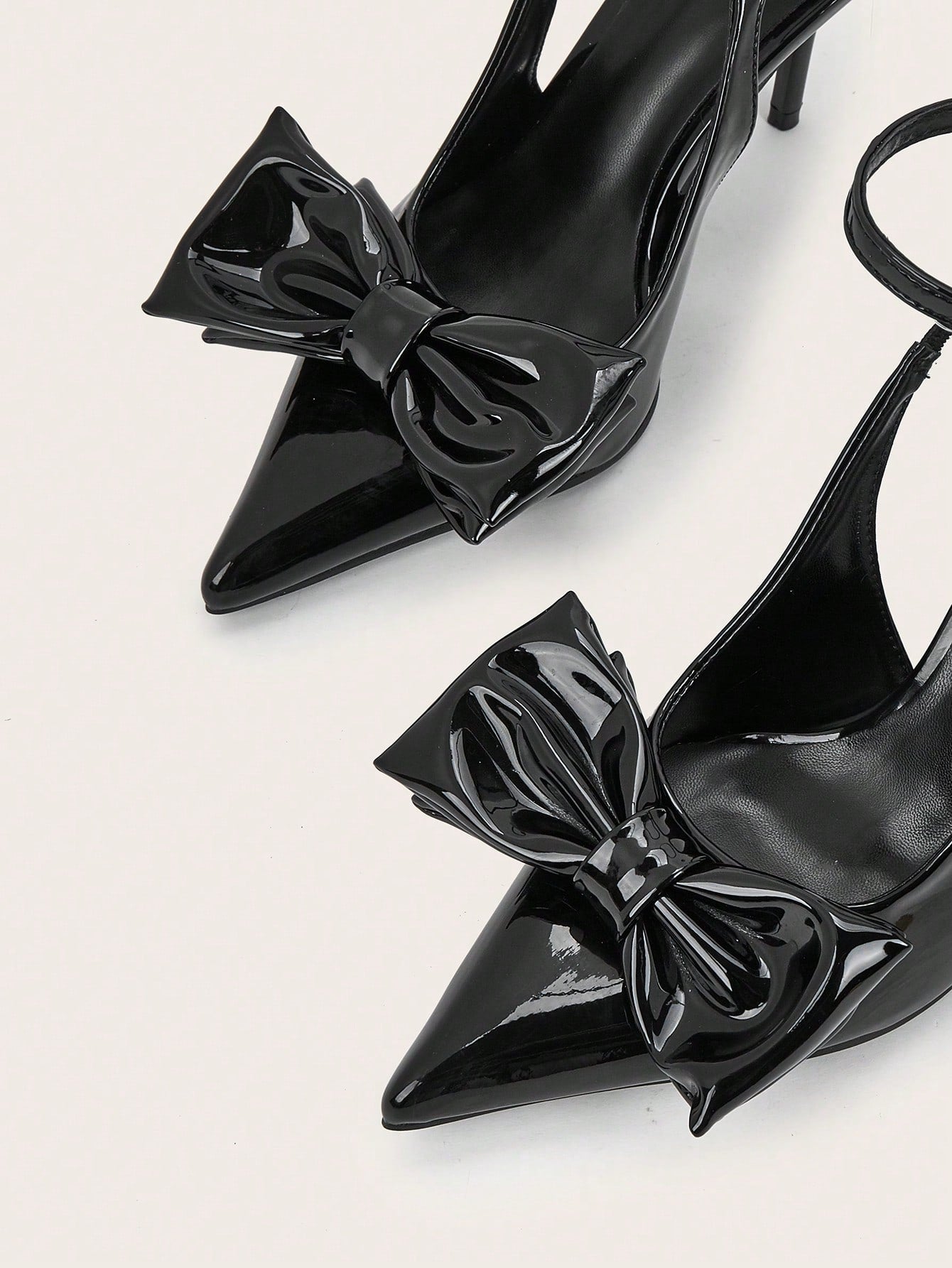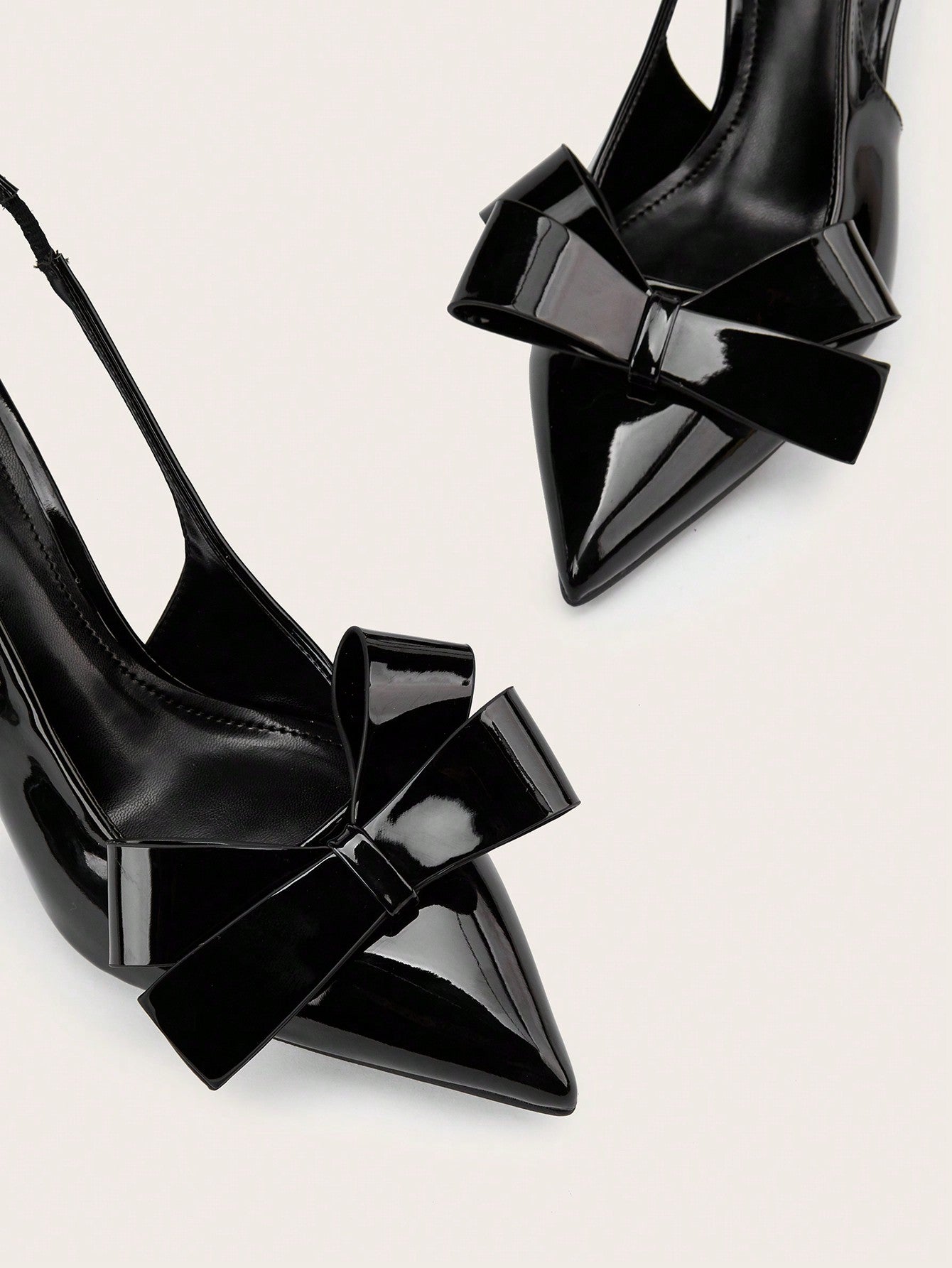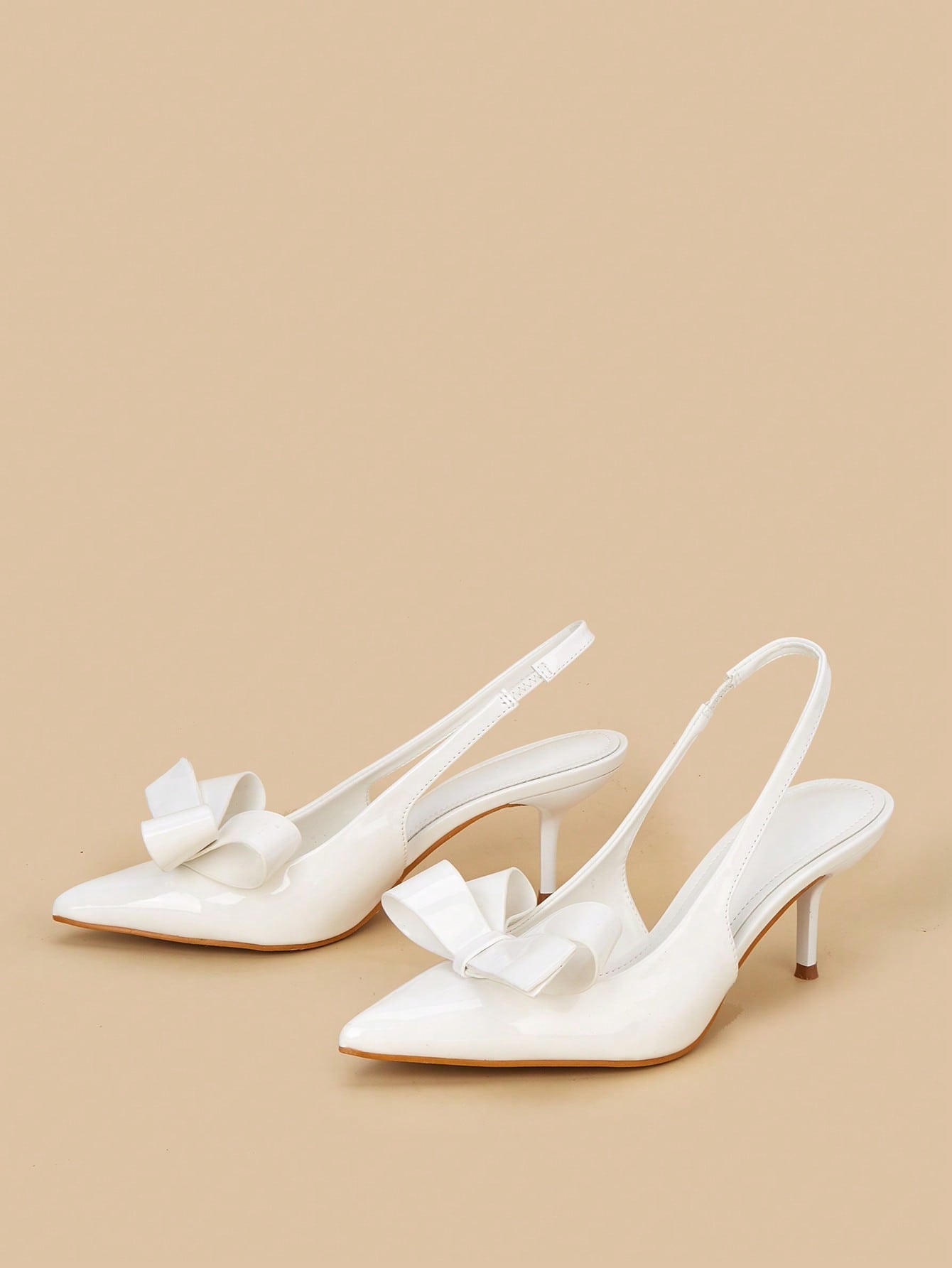 Women Rhinestone Bow Decor Point Toe Sculptural Heeled Slingback Point Toe Stiletto Heeled Slingback Pumps Valentines