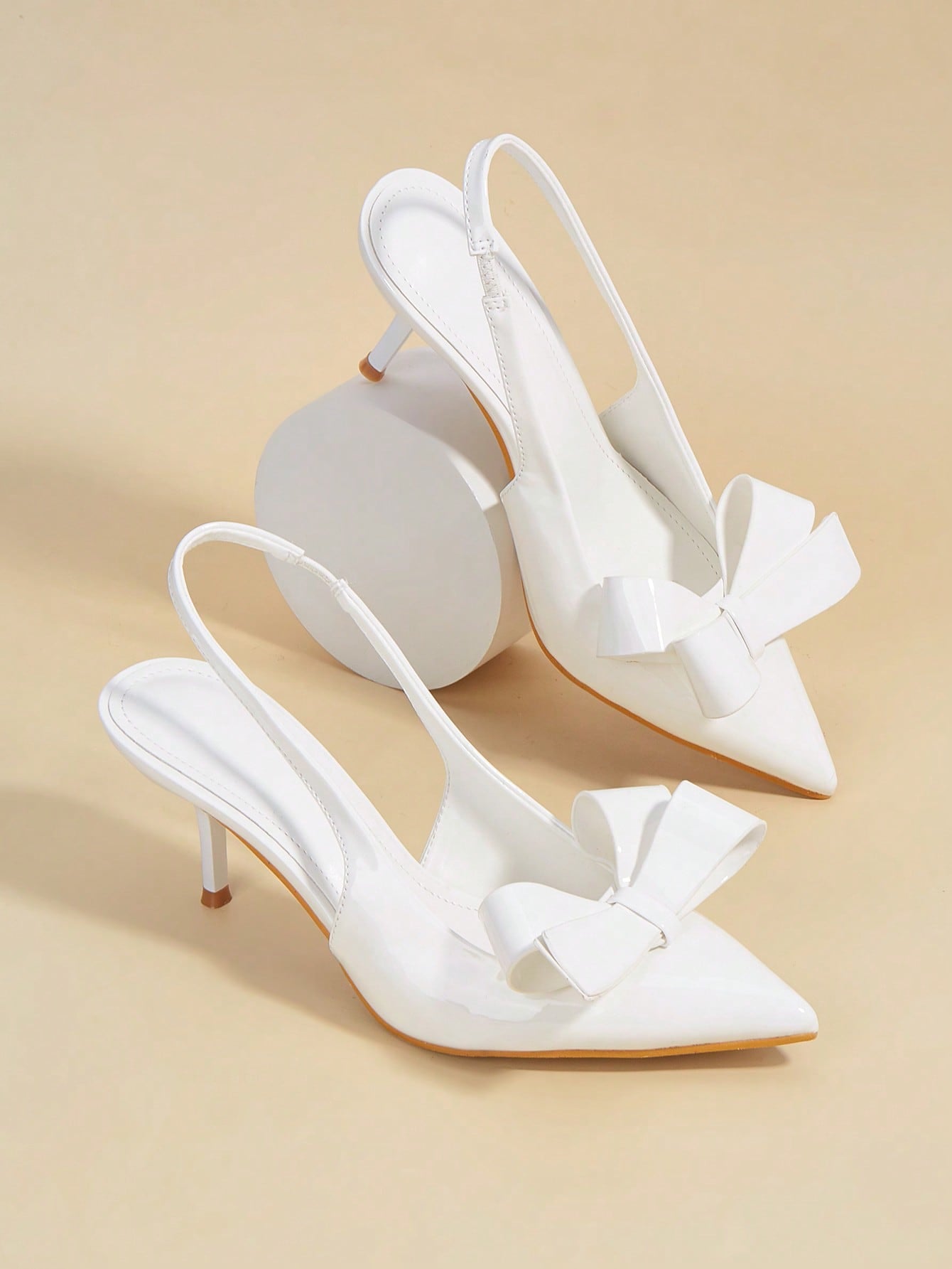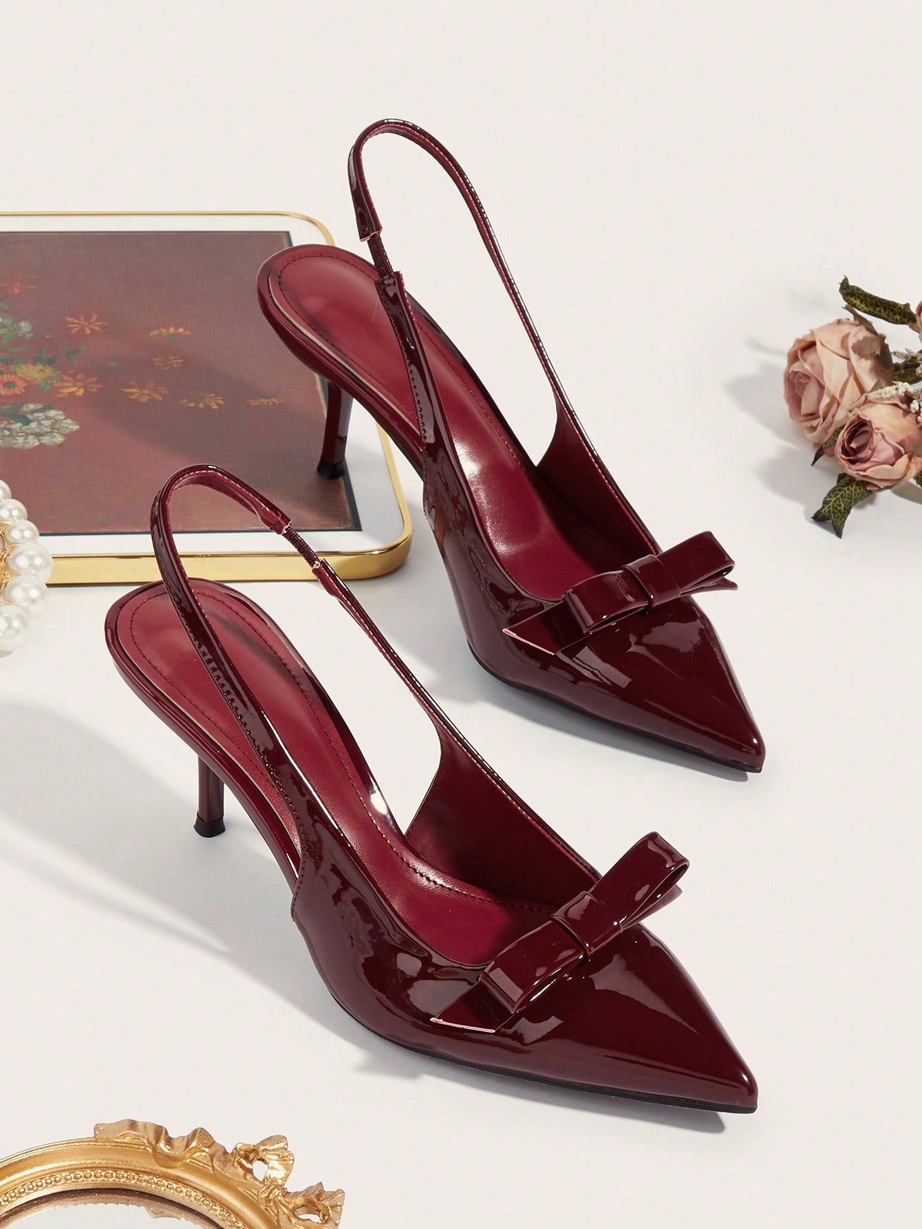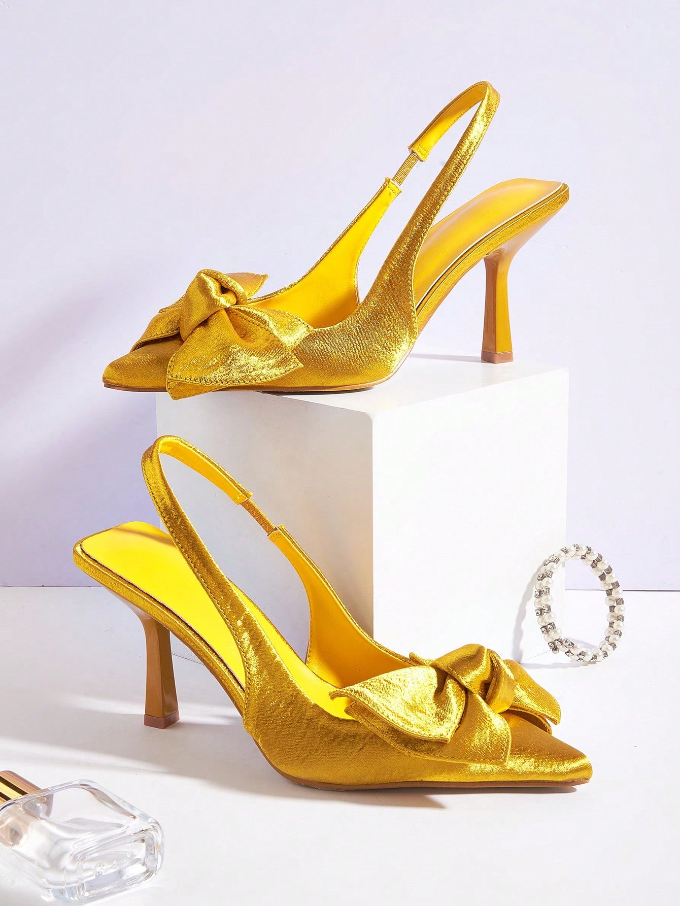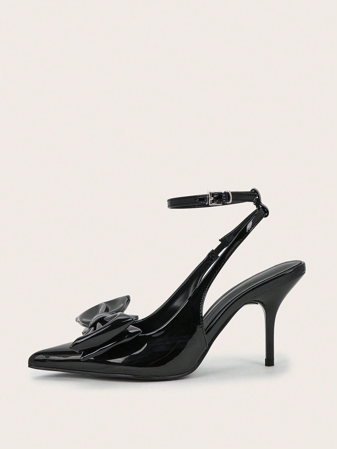 Women Rhinestone Bow Decor Point Toe Sculptural Heeled Slingback Point Toe Stiletto Heeled Slingback Pumps Valentines