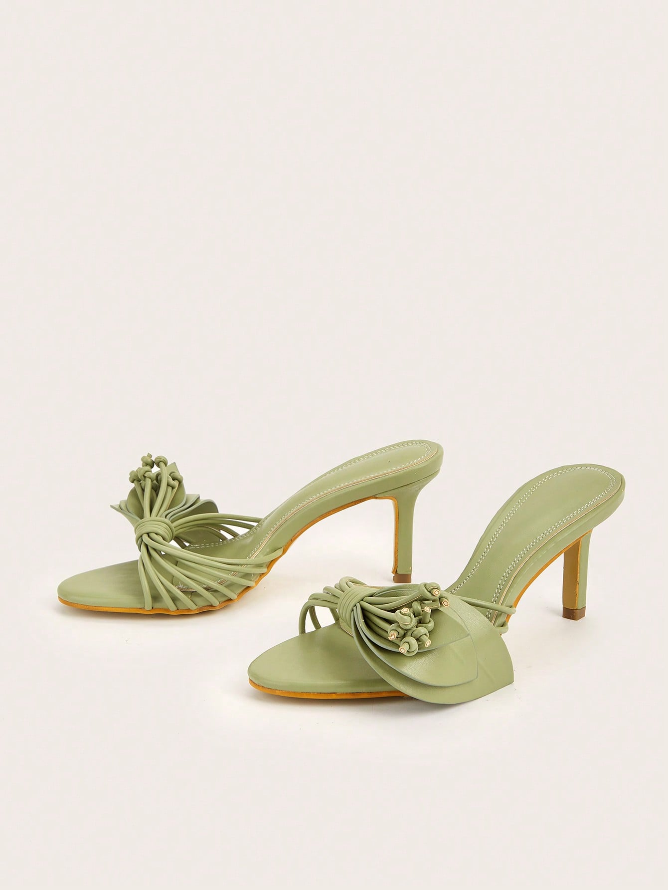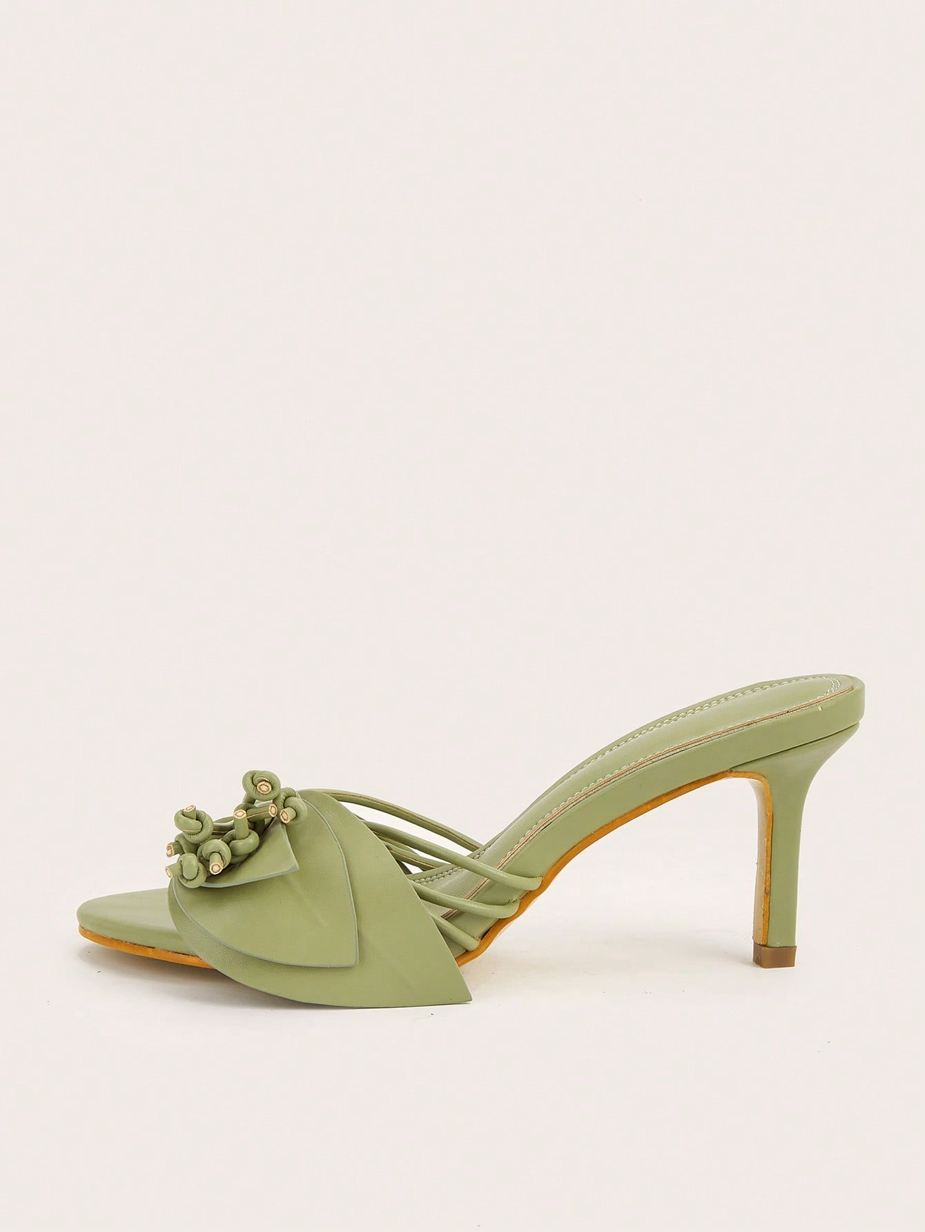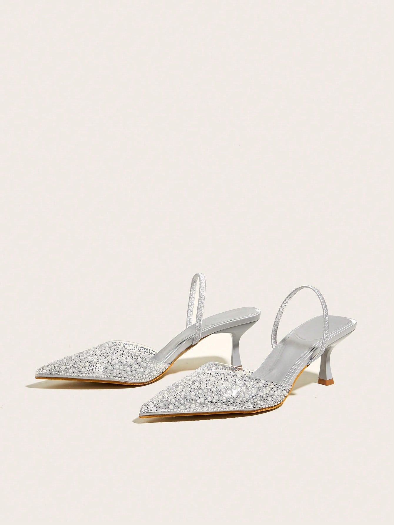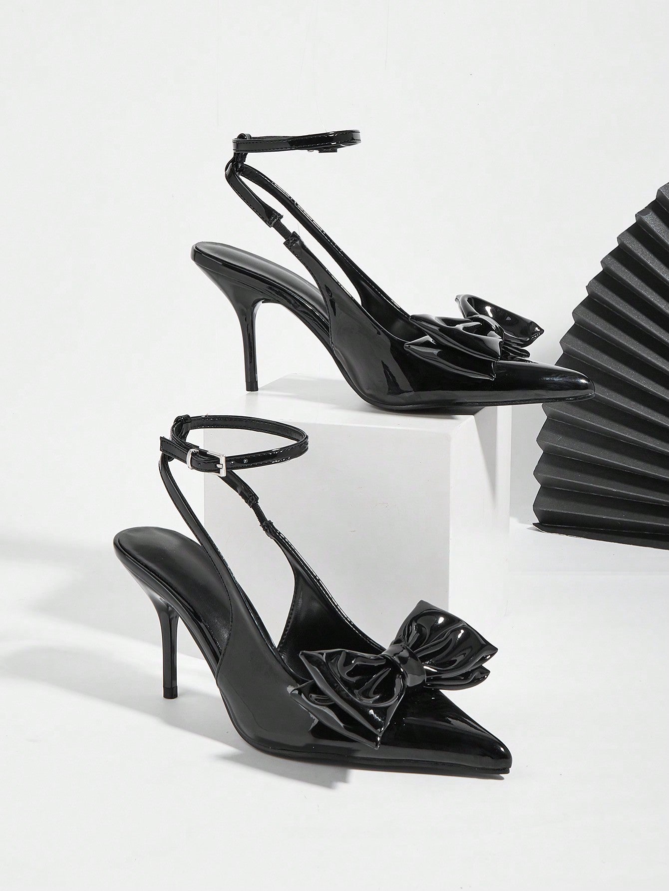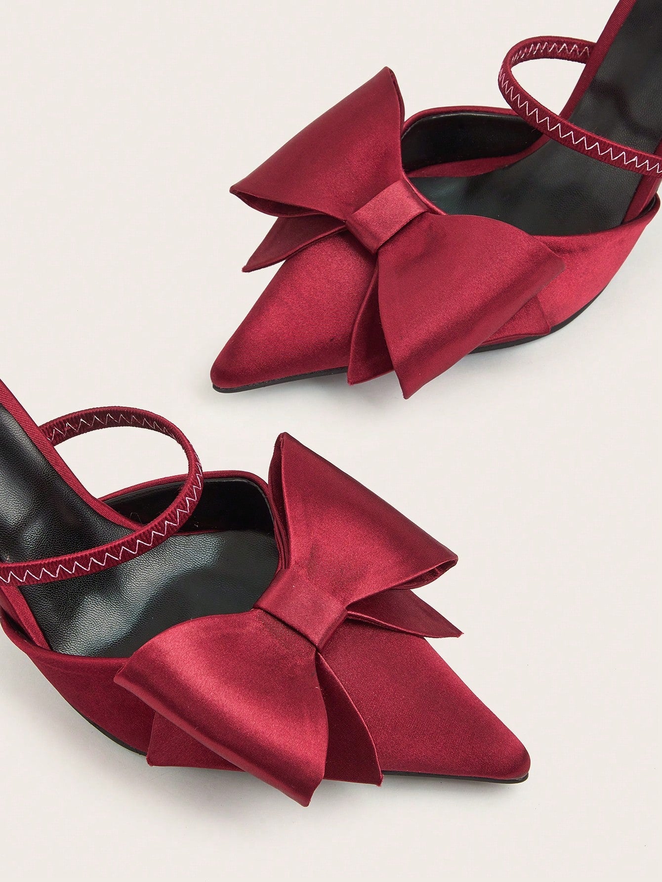 Women Rhinestone Bow Decor Point Toe Sculptural Heeled Slingback Point Toe Stiletto Heeled Slingback Pumps Valentines