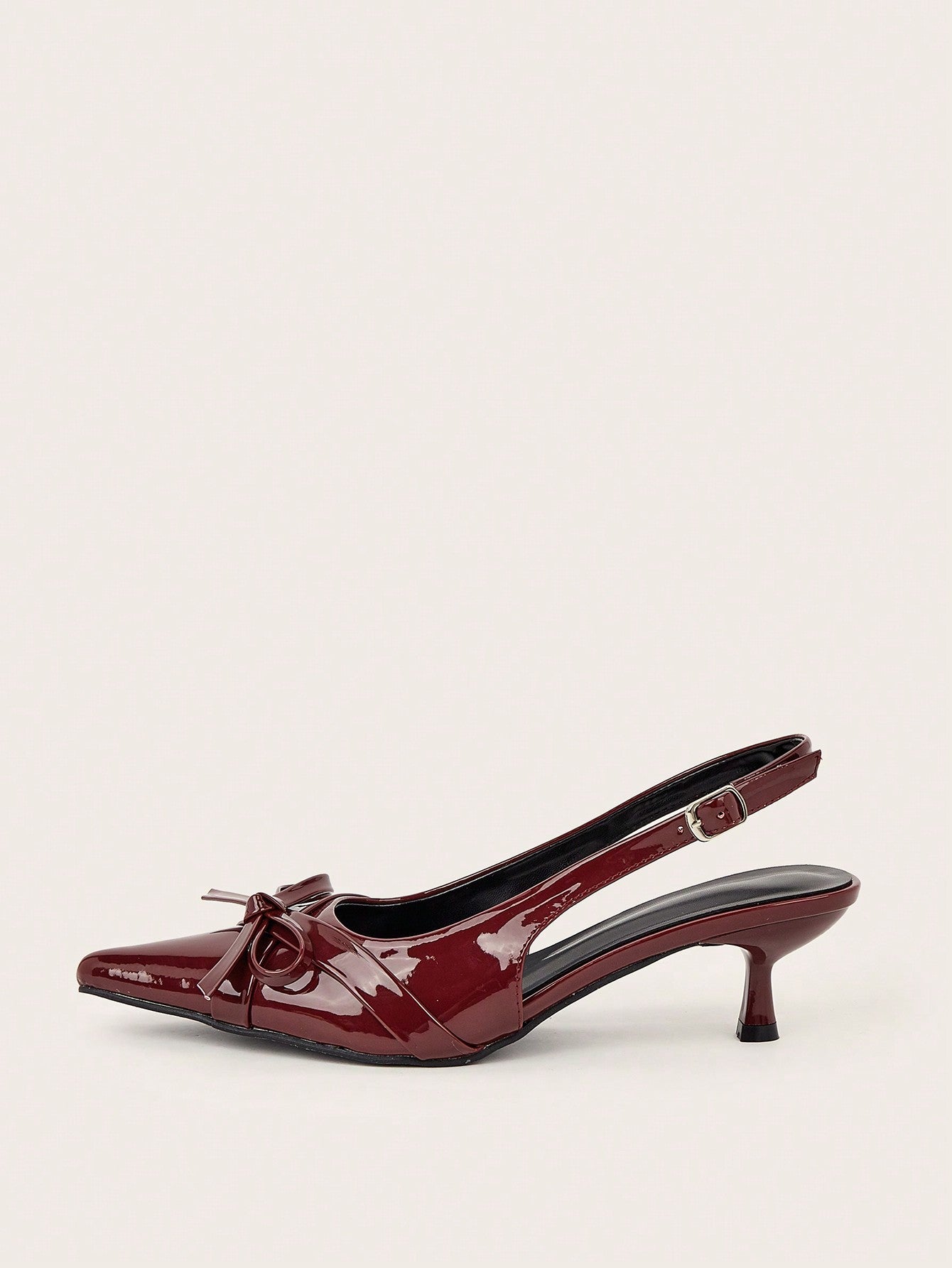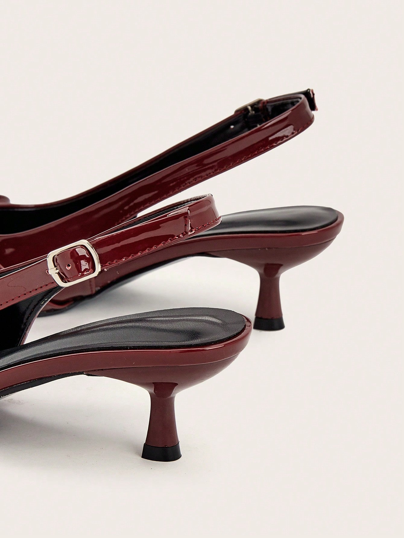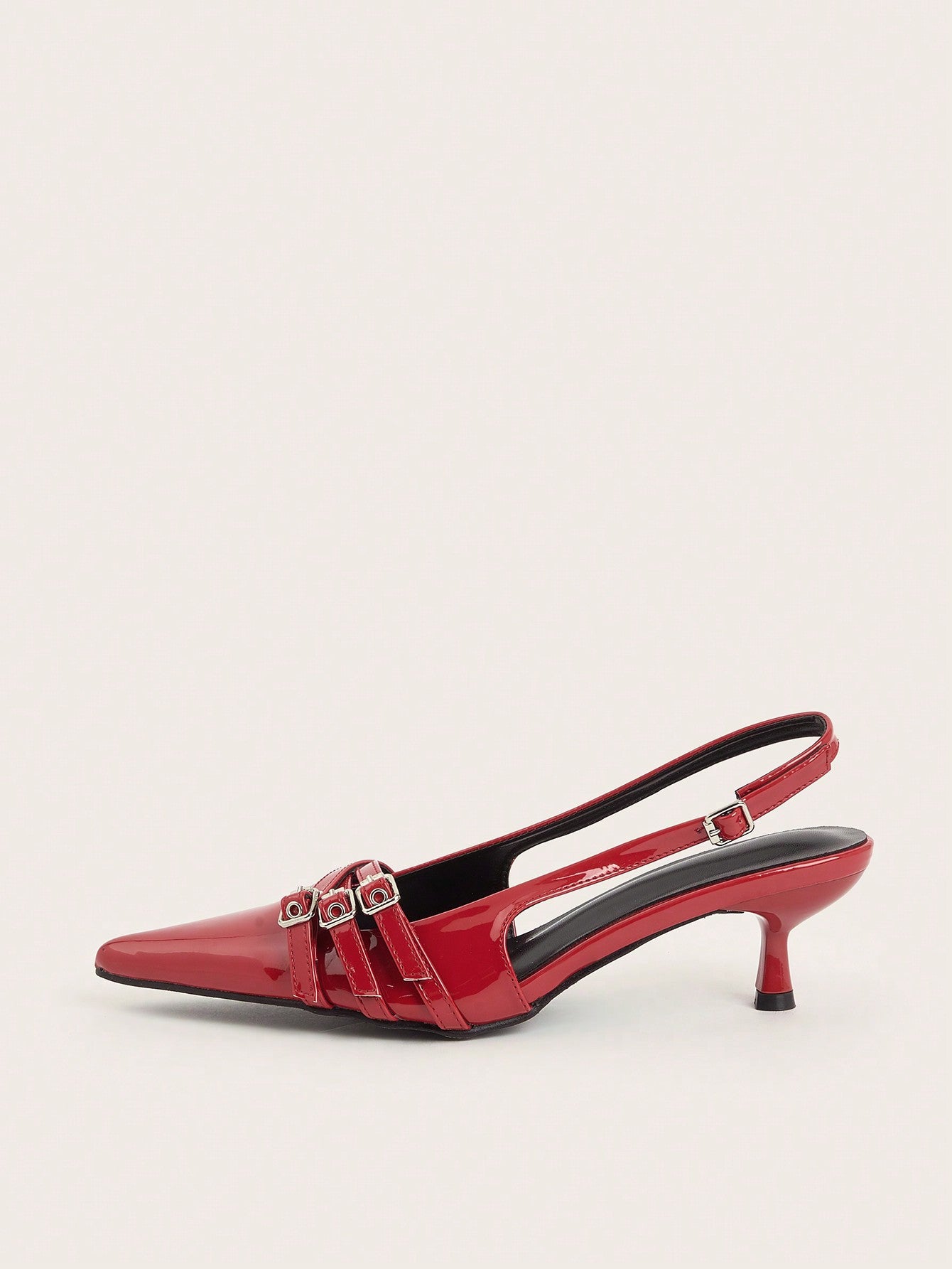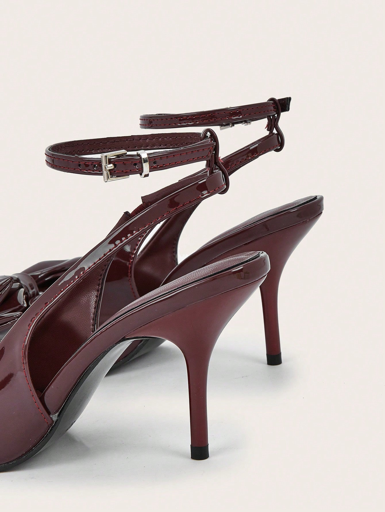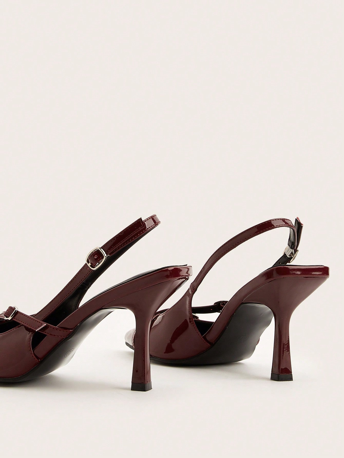 Wedding Party Sexy Burgundy Patent Leather Pointed Toe Metal Buckle Strap Stiletto High Heels