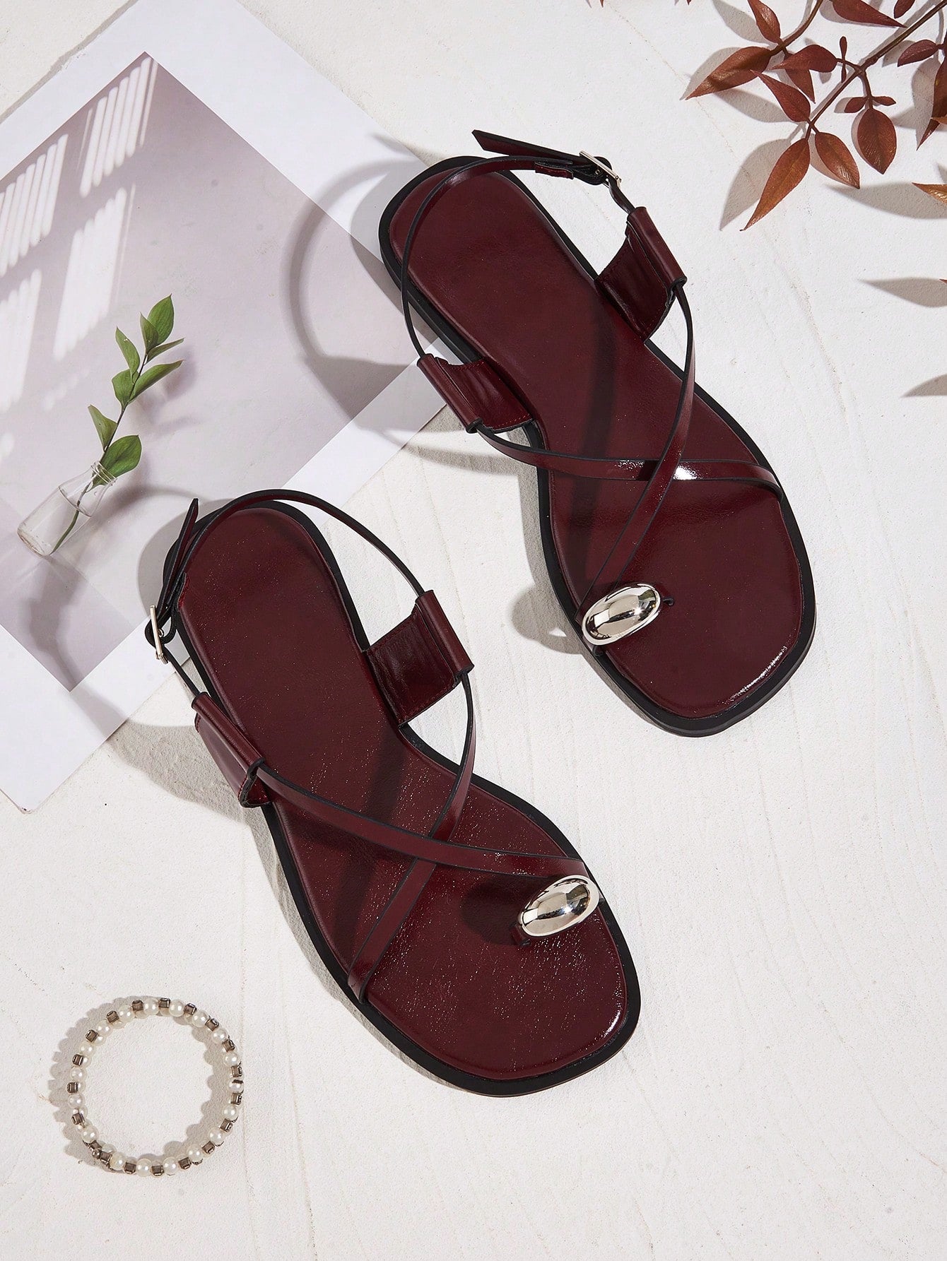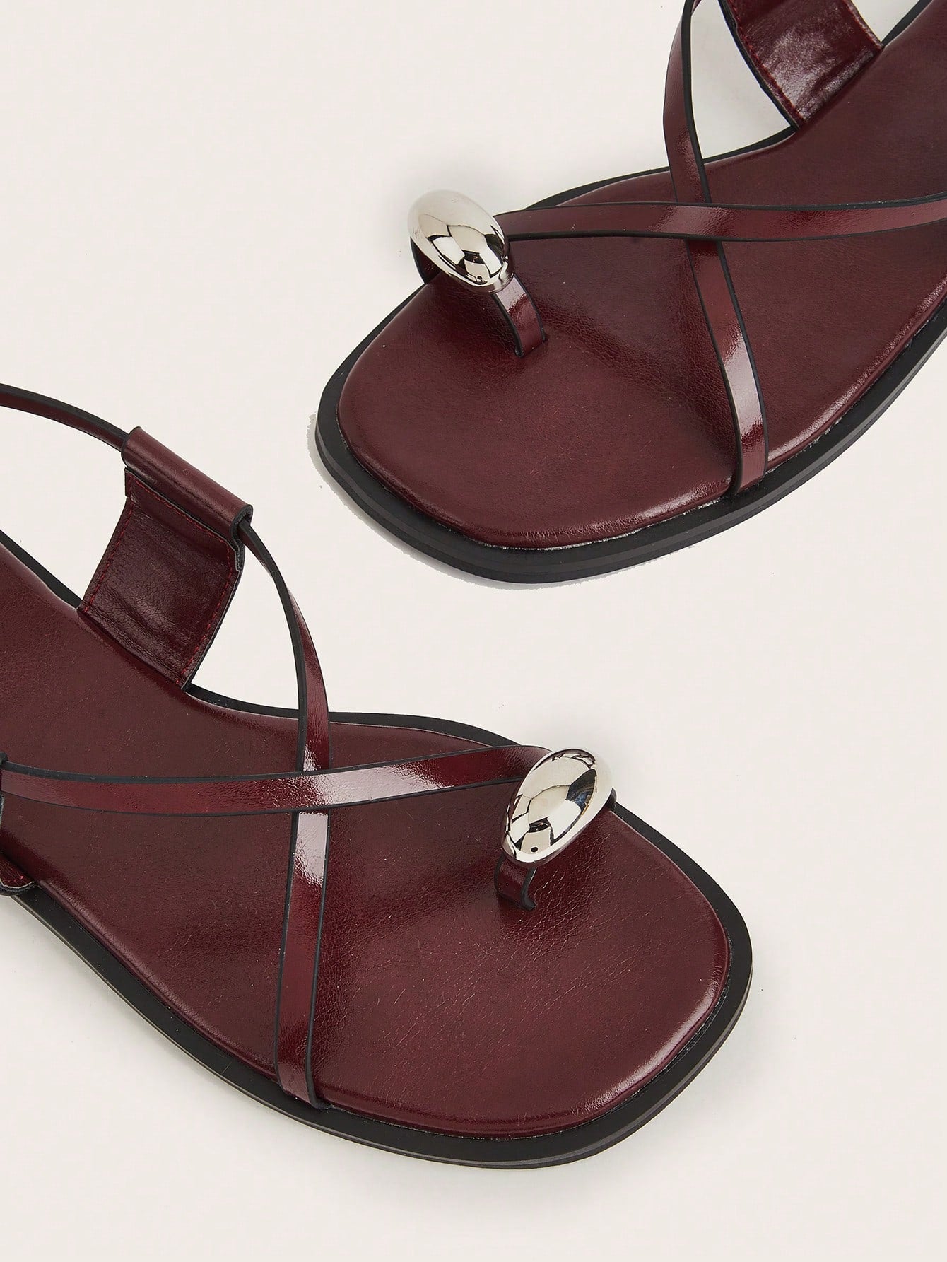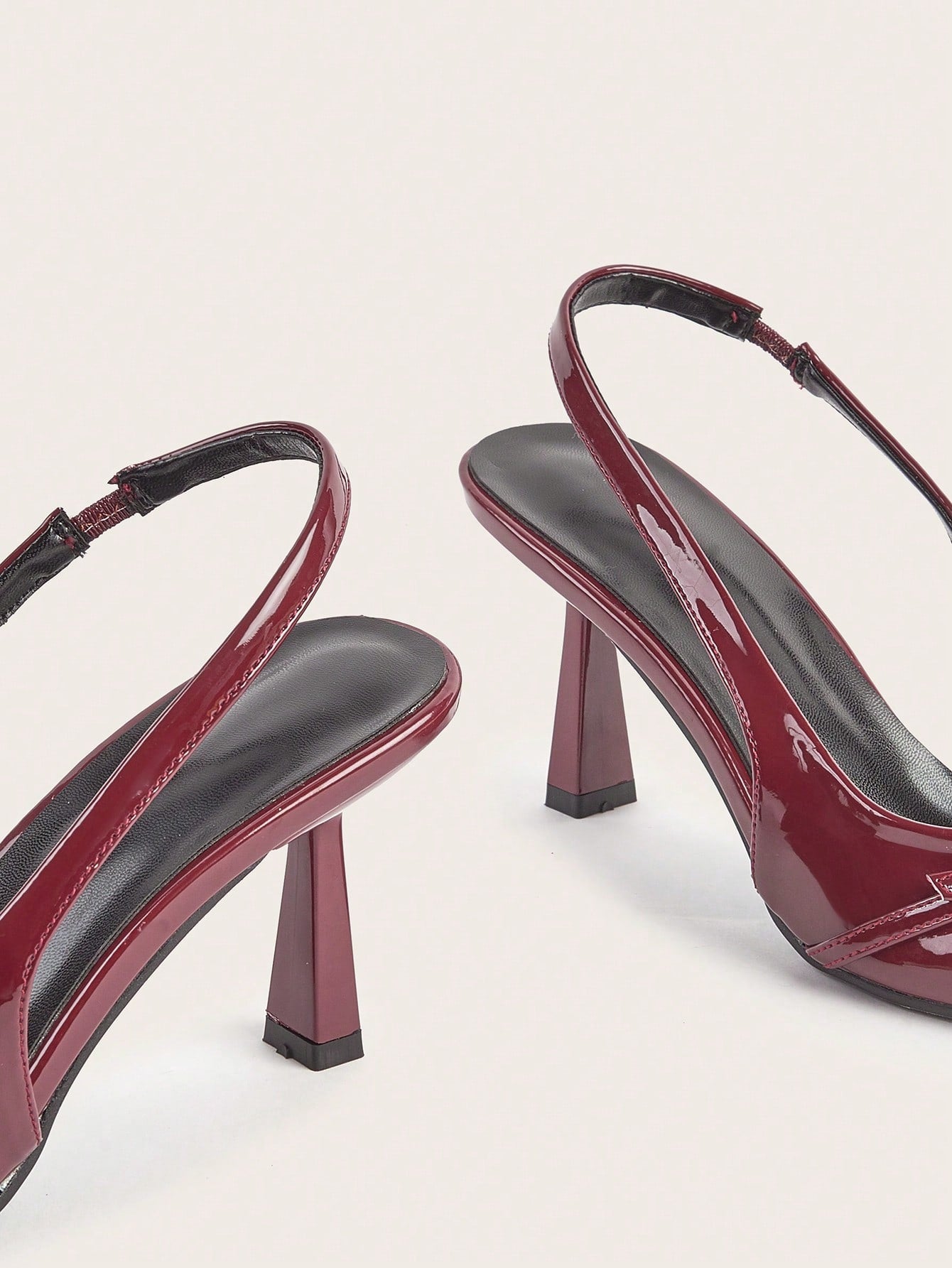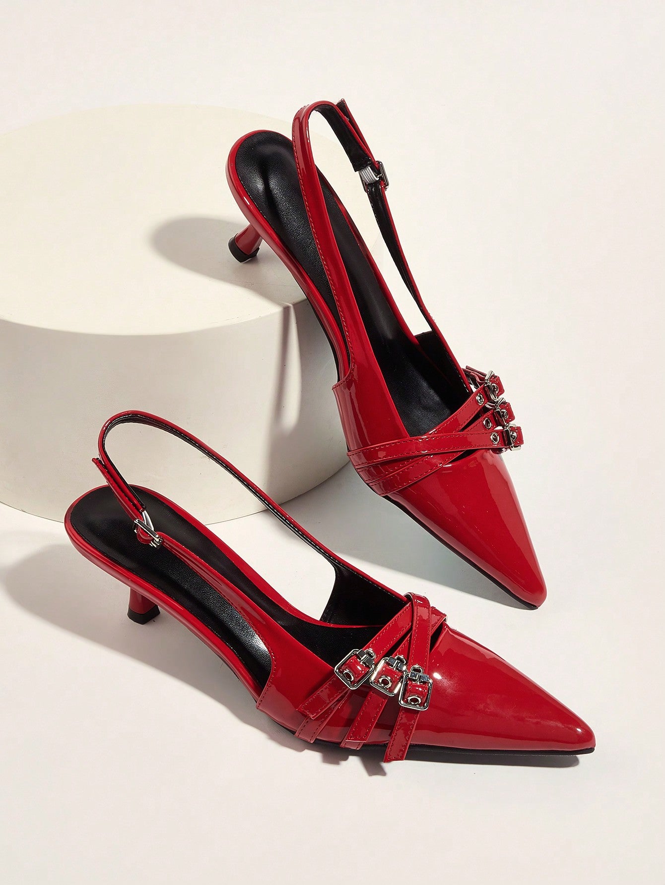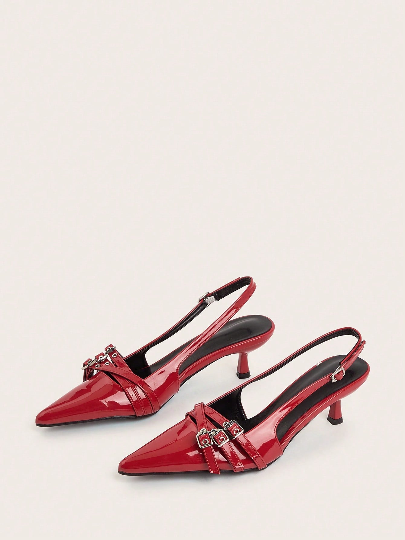 Wedding Party Sexy Burgundy Patent Leather Pointed Toe Metal Buckle Strap Stiletto High Heels