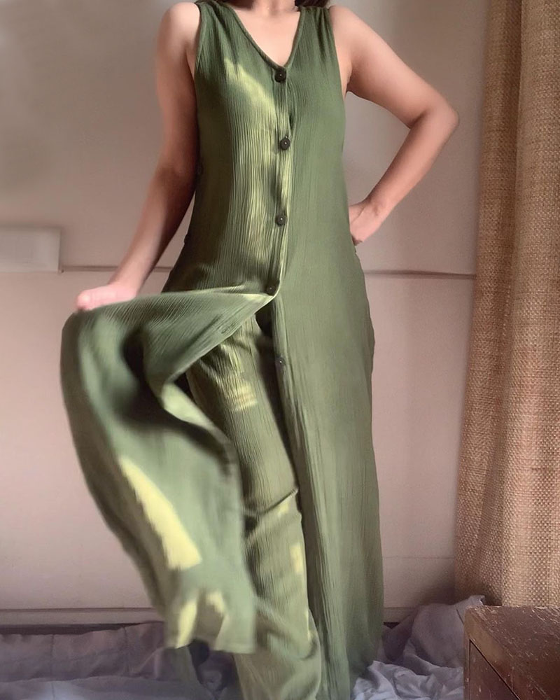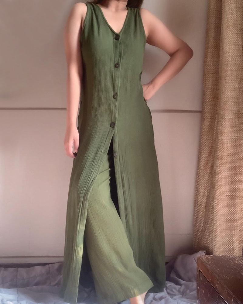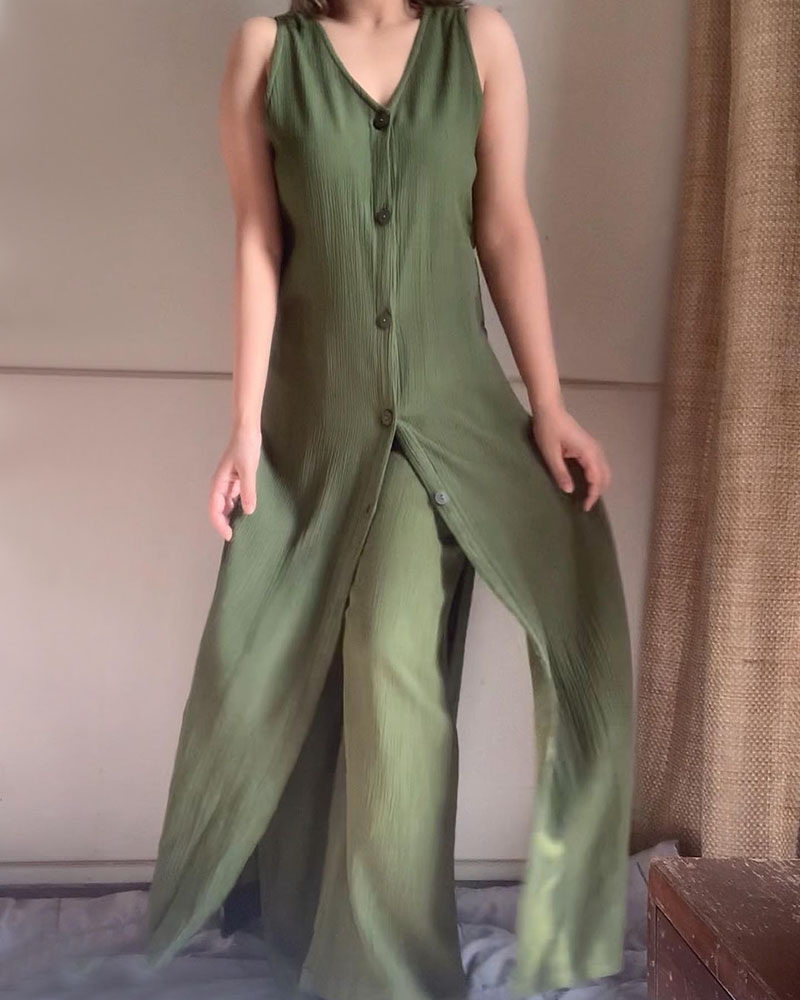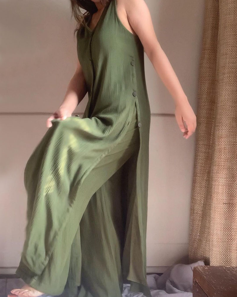 Chic sleeveless slit casual two-piece set