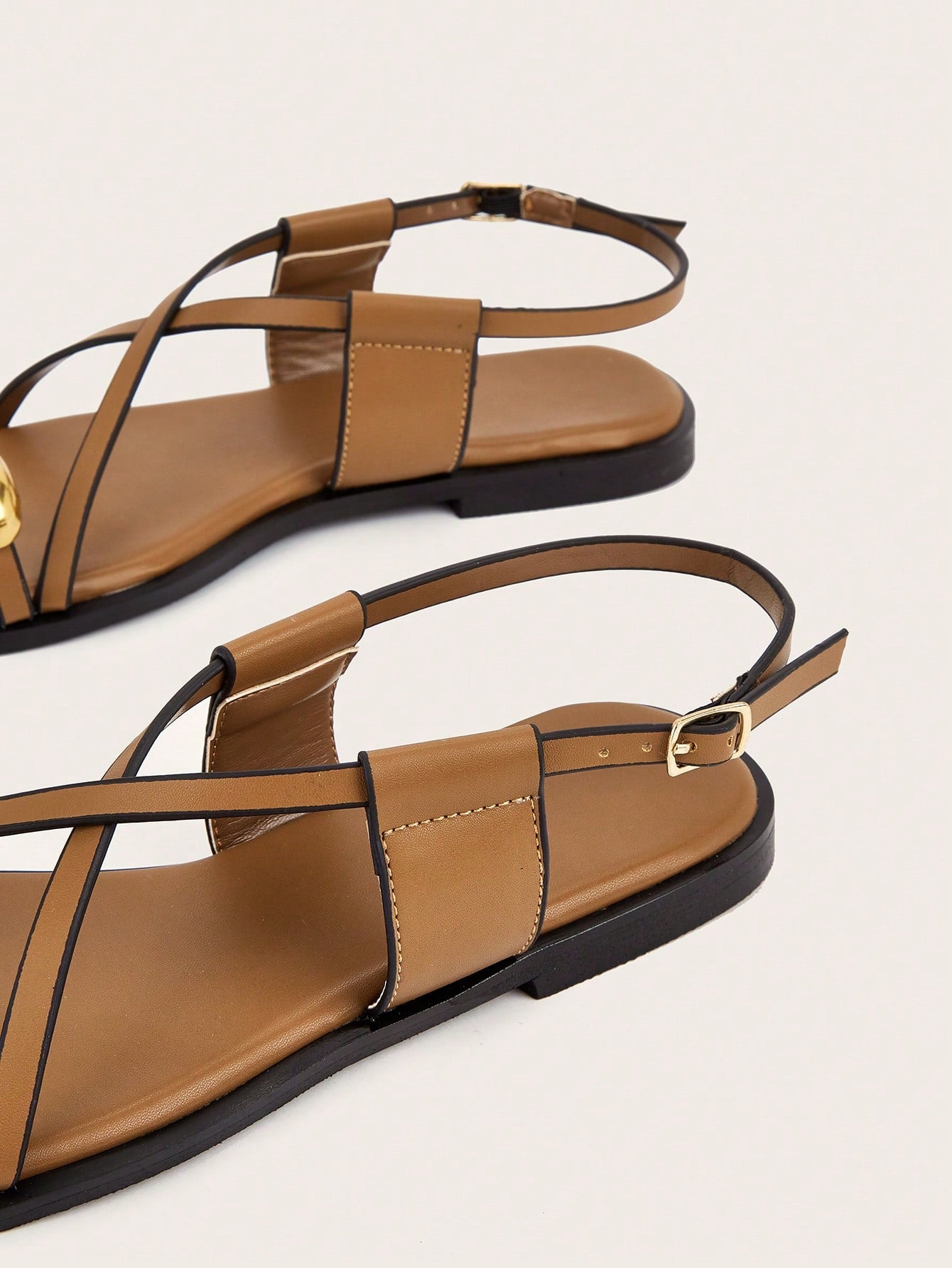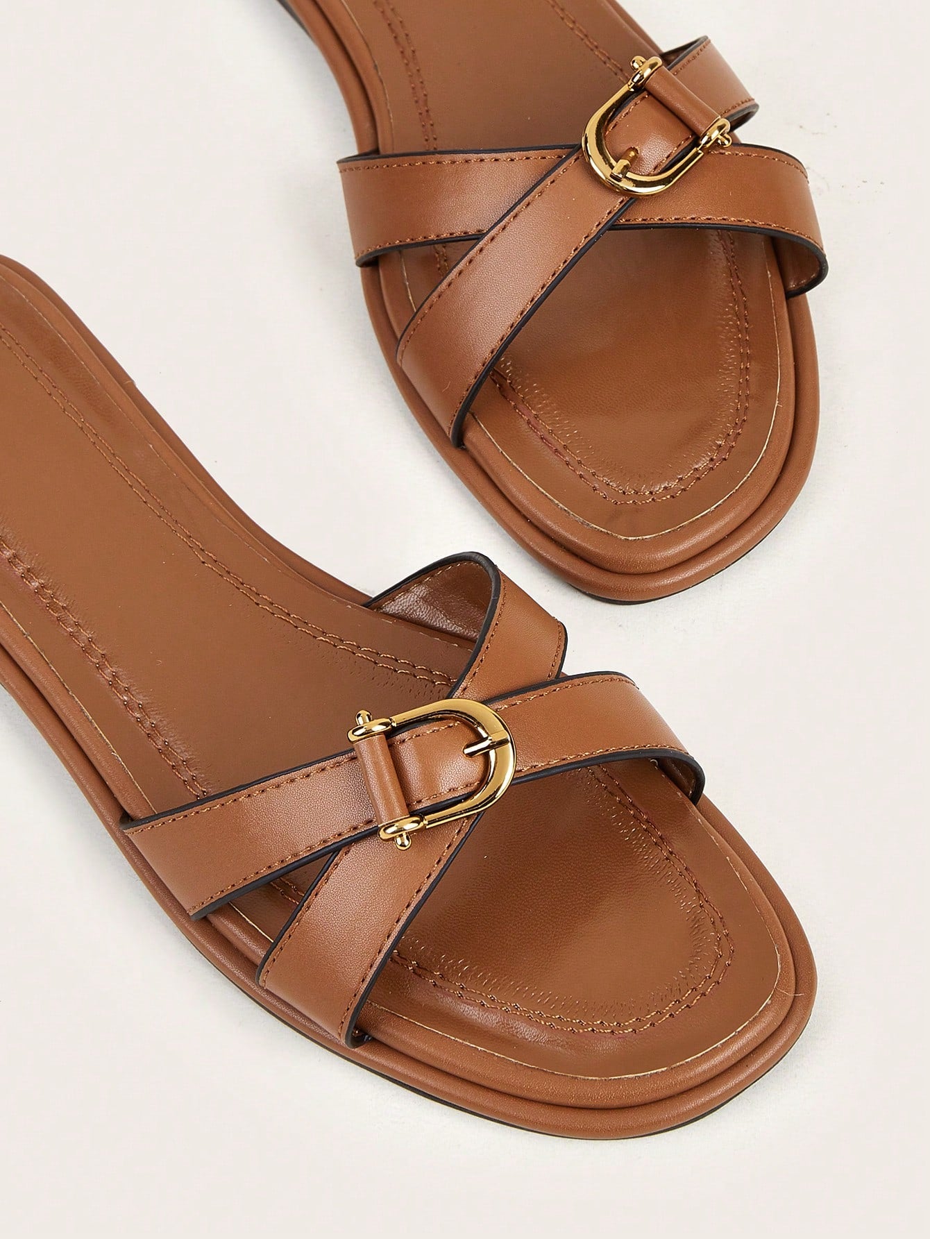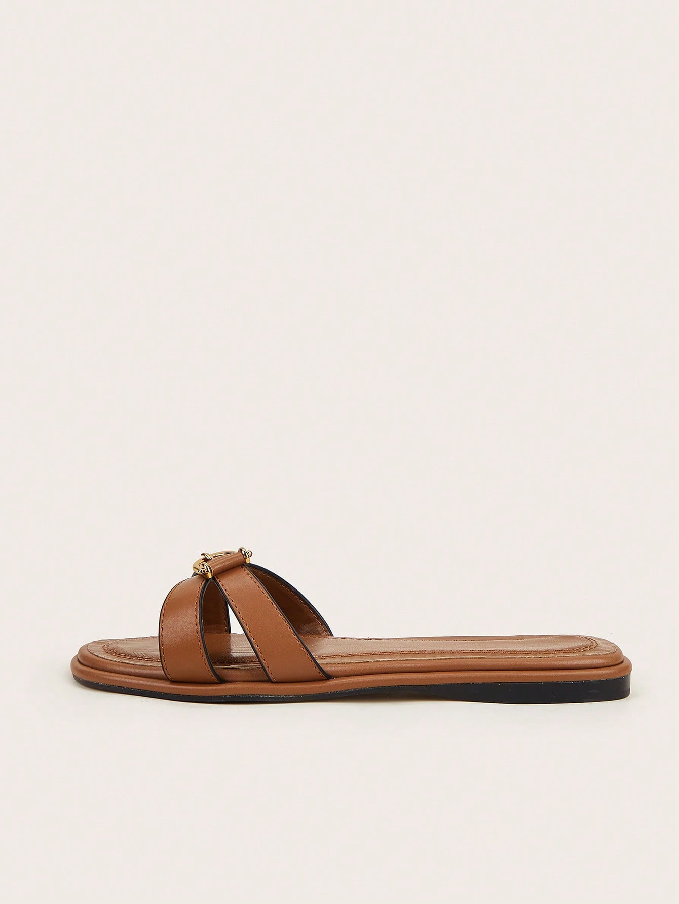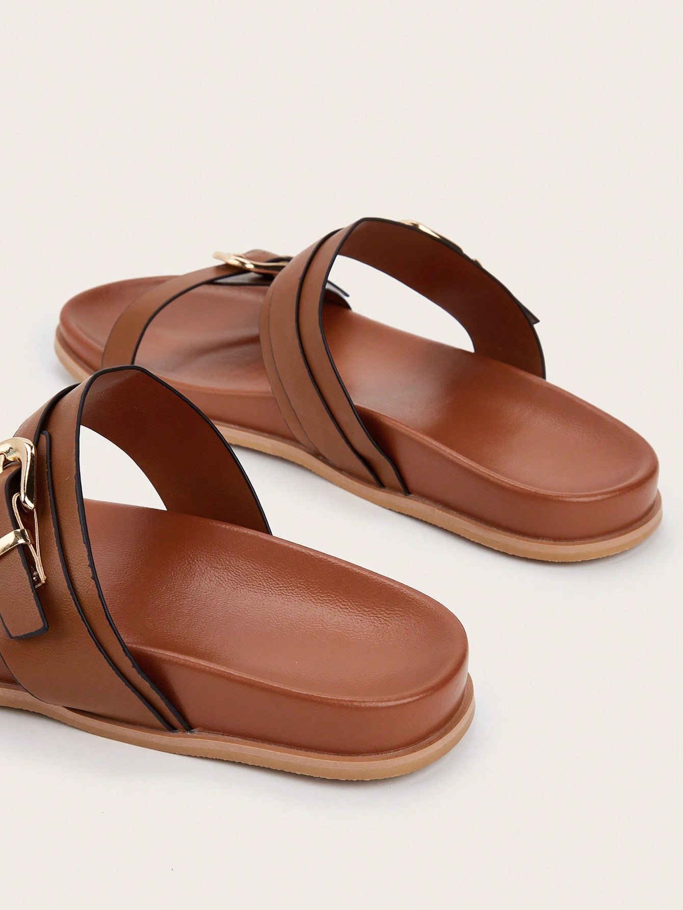 Plus Size Brown Square Toe Cross Strap Slip-On Flat Sandals, Casual Commute Daily Wear