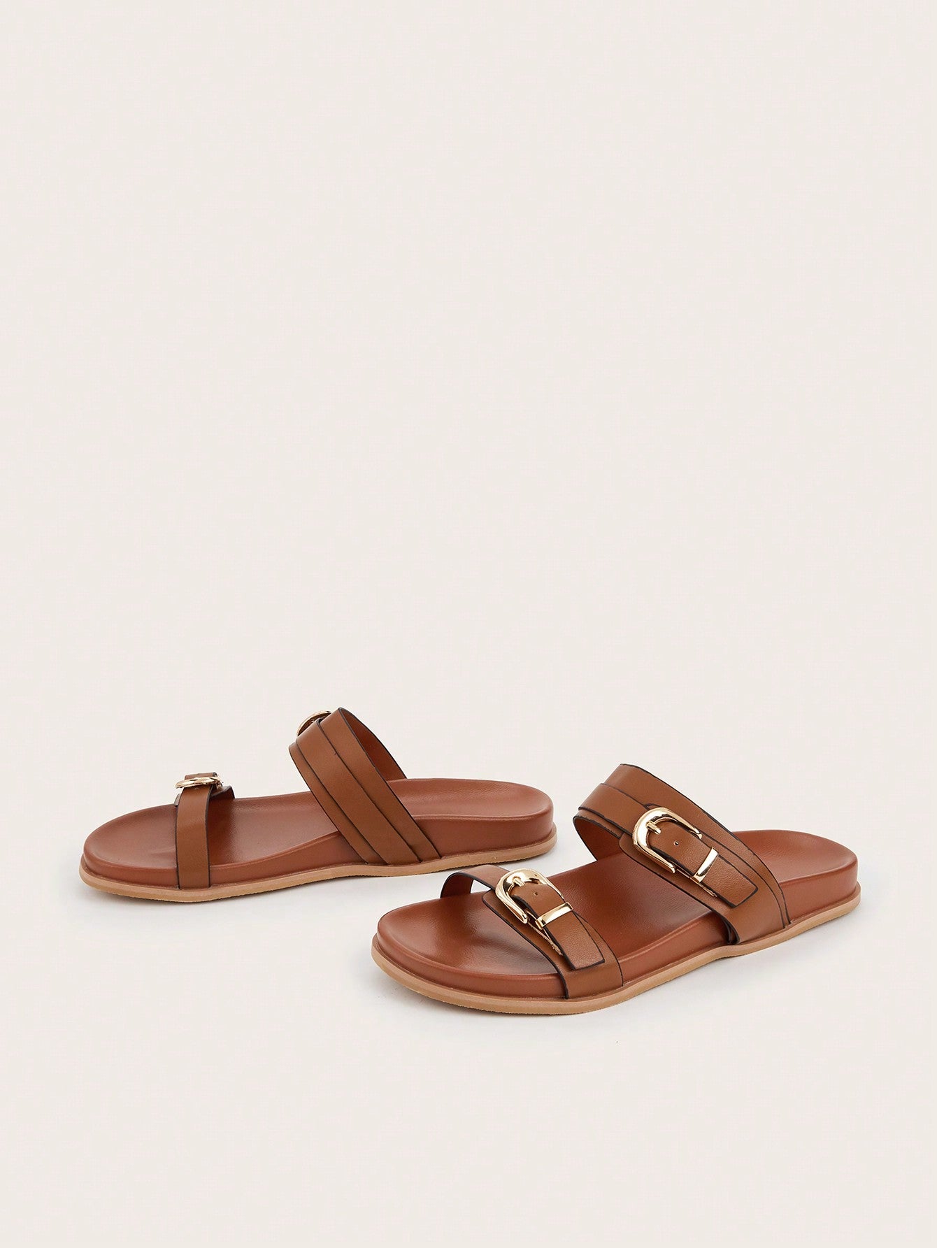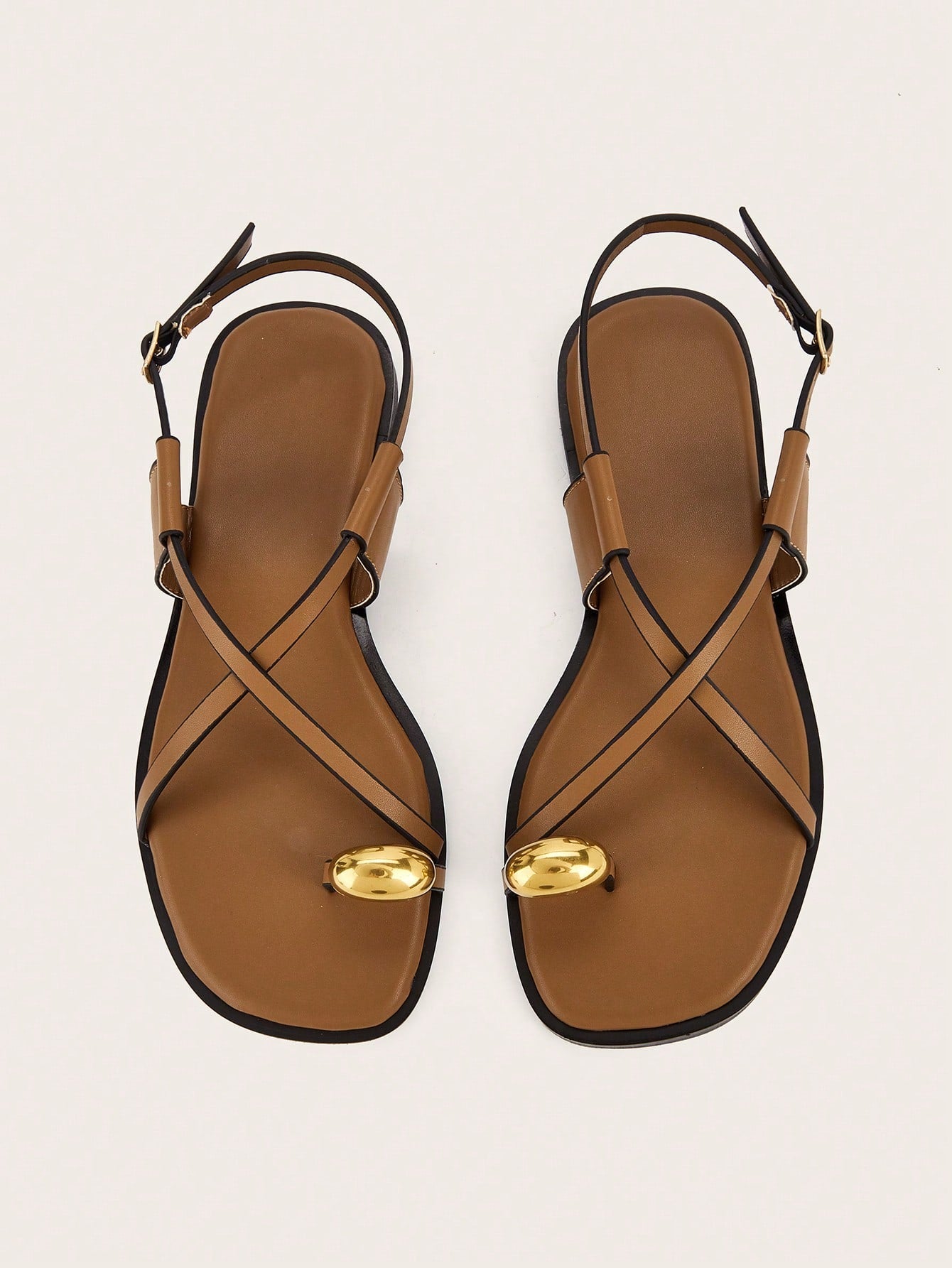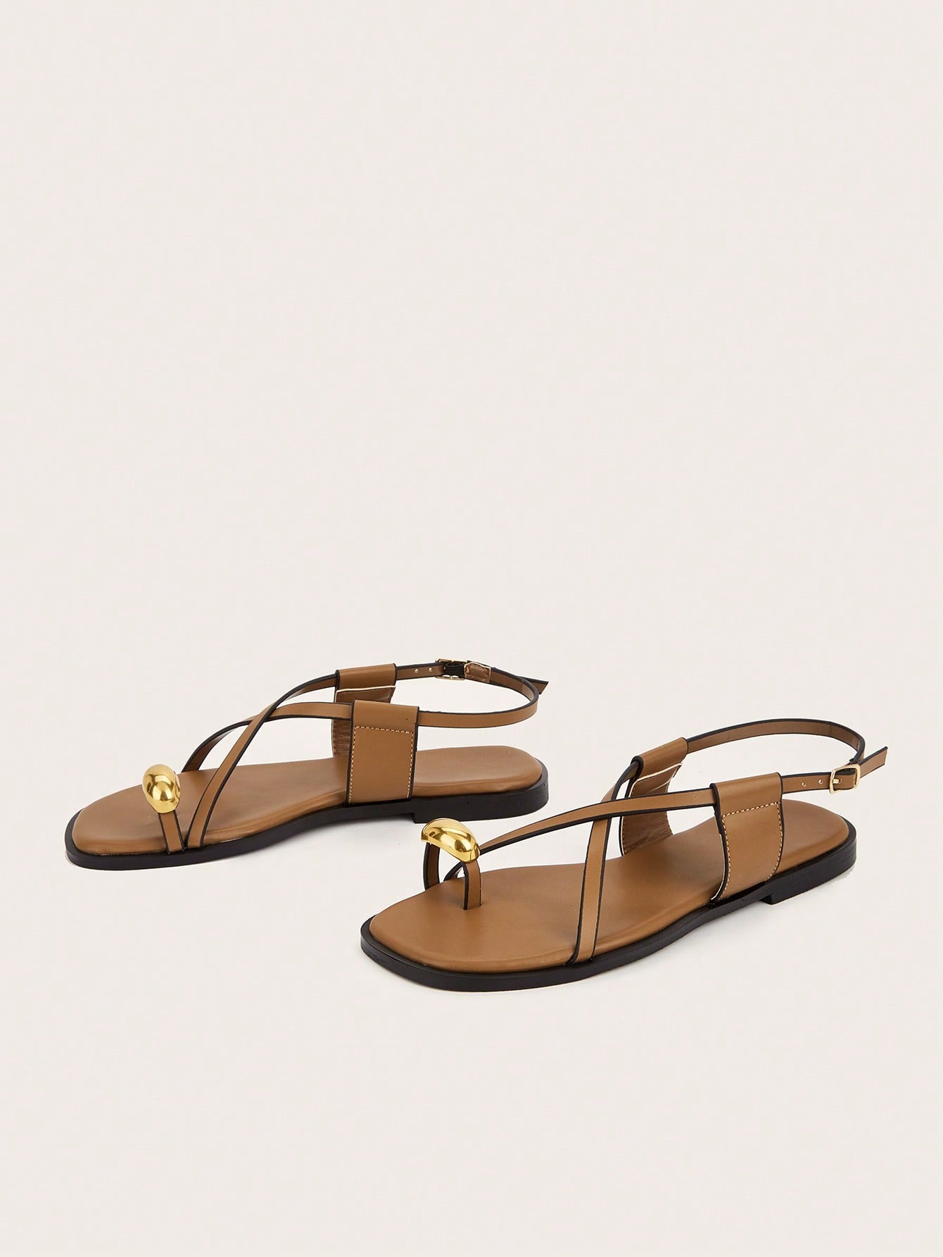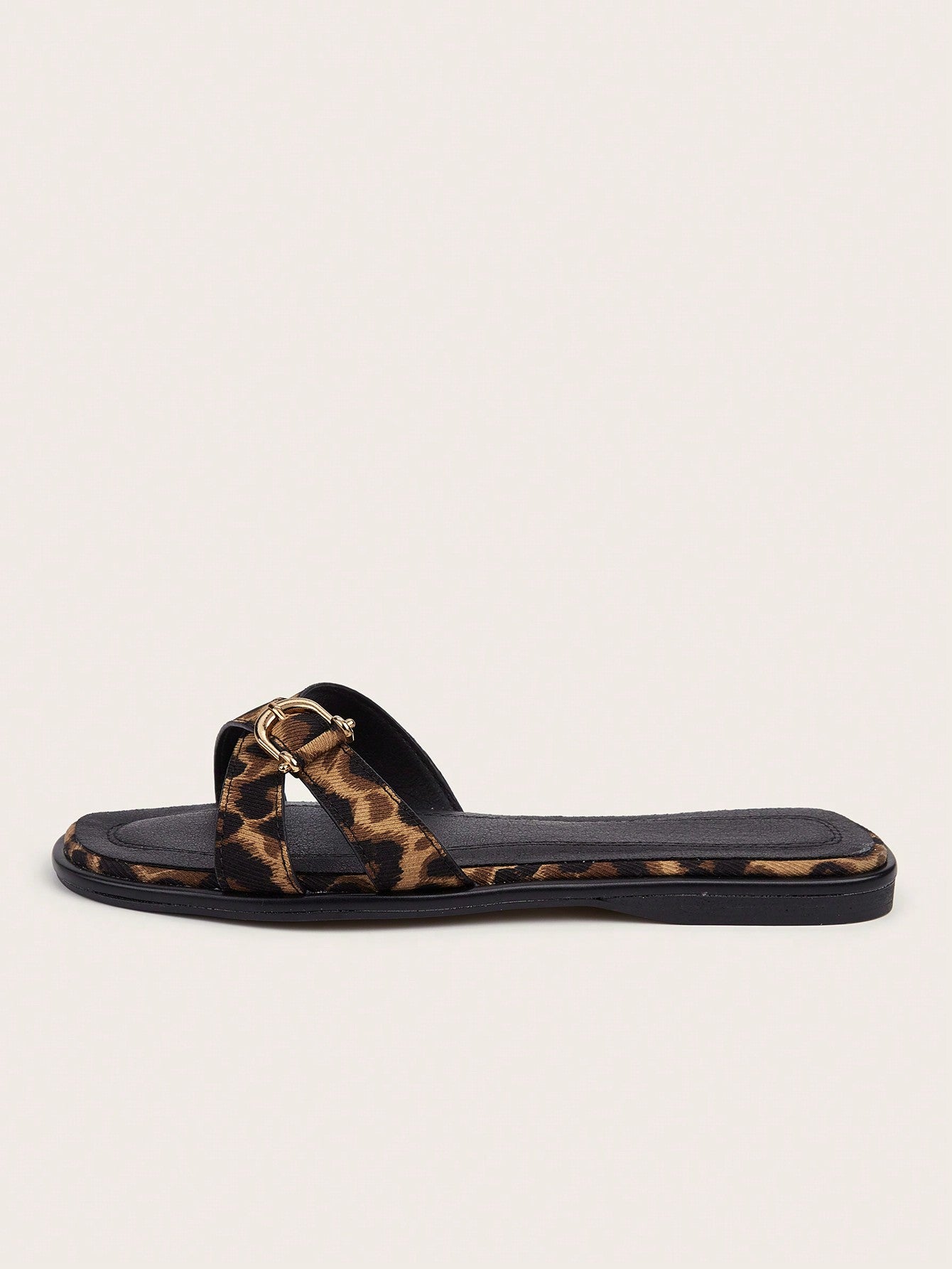 Plus Size Brown Square Toe Cross Strap Slip-On Flat Sandals, Casual Commute Daily Wear