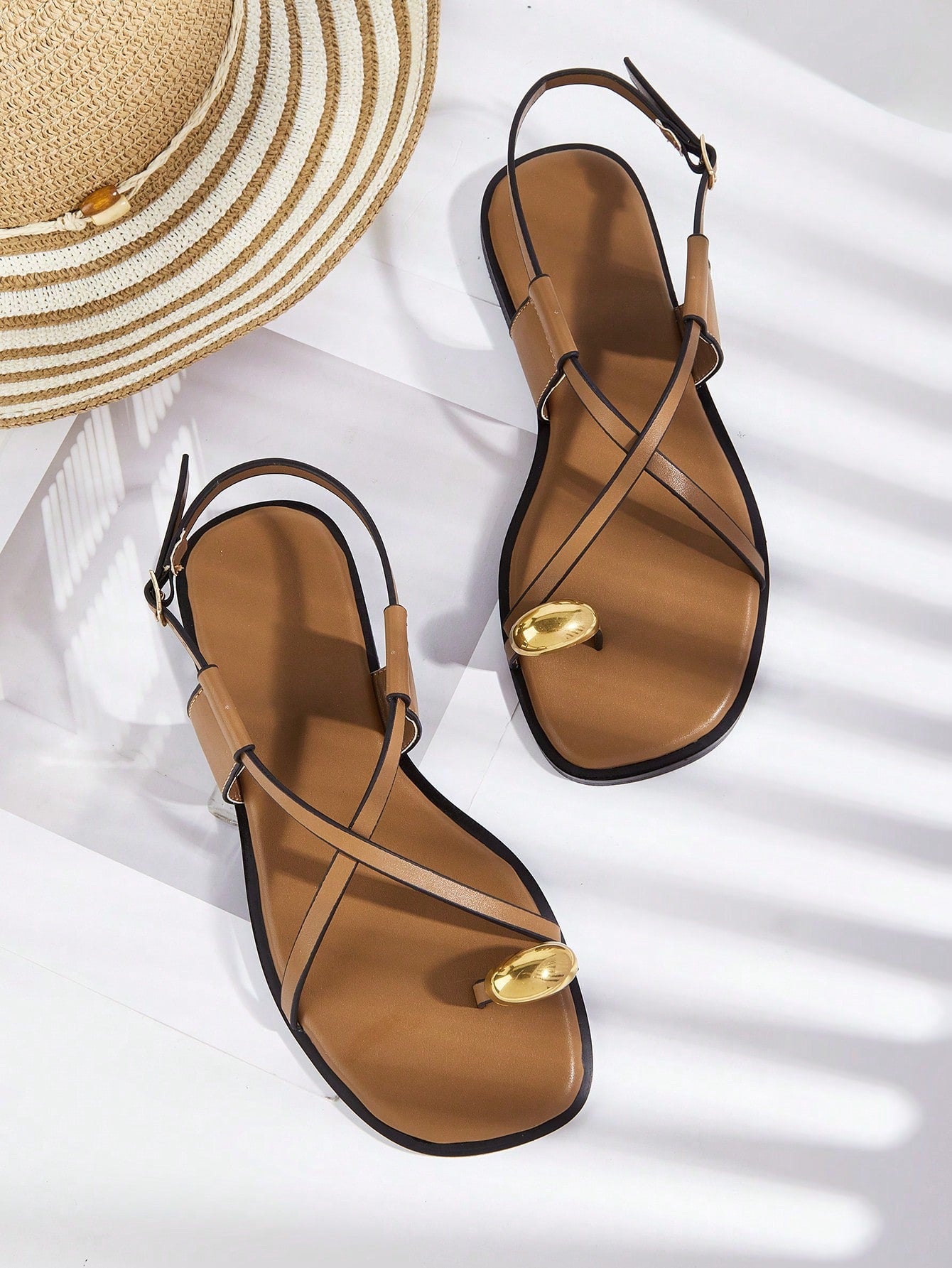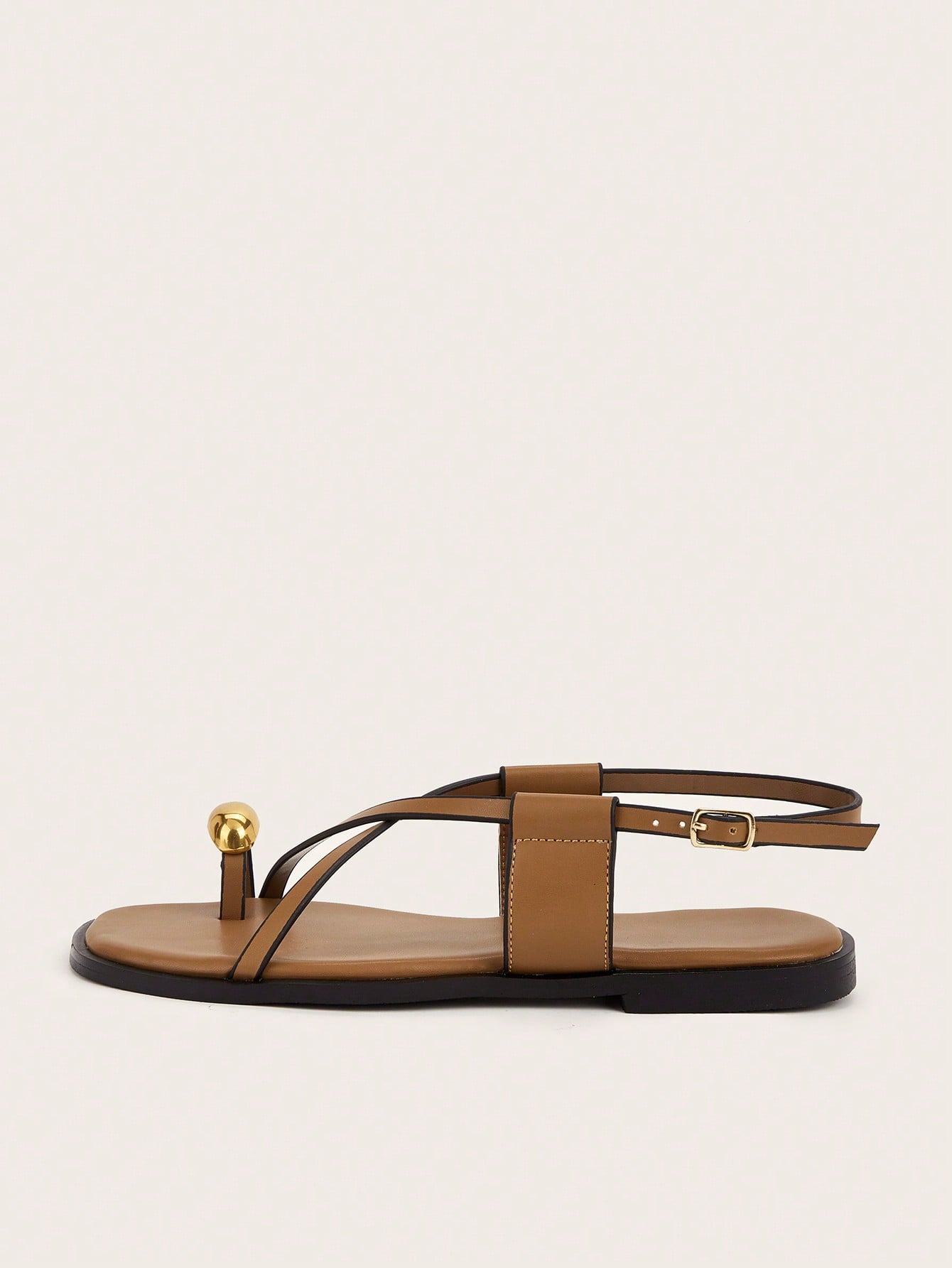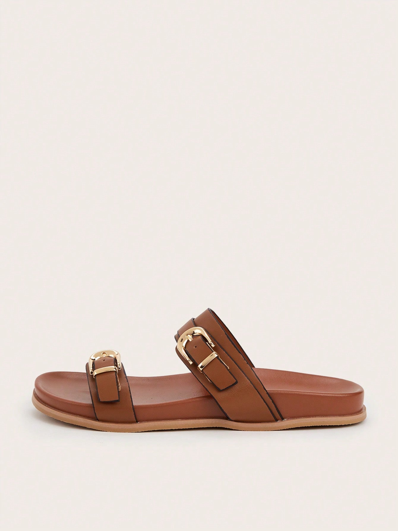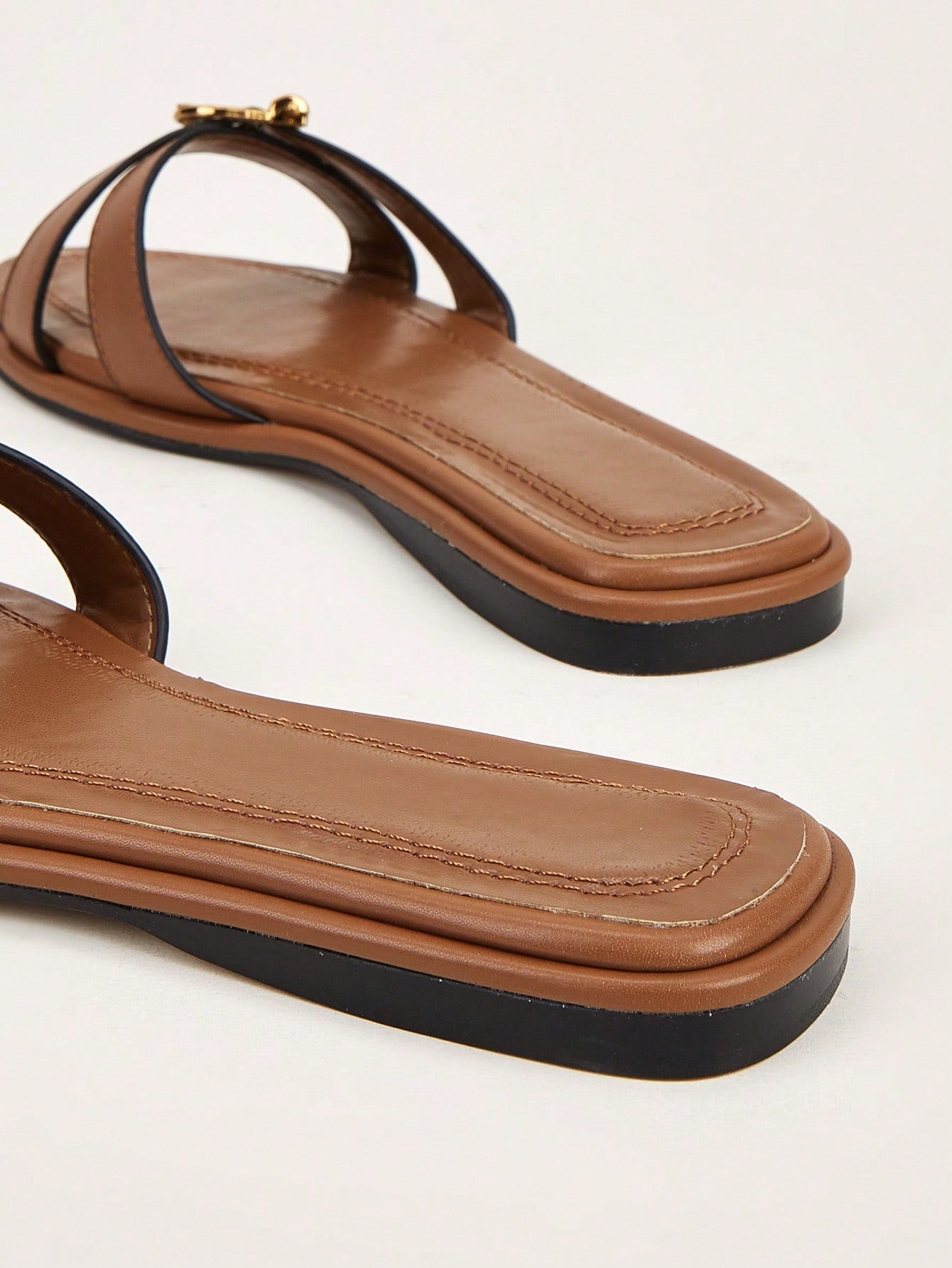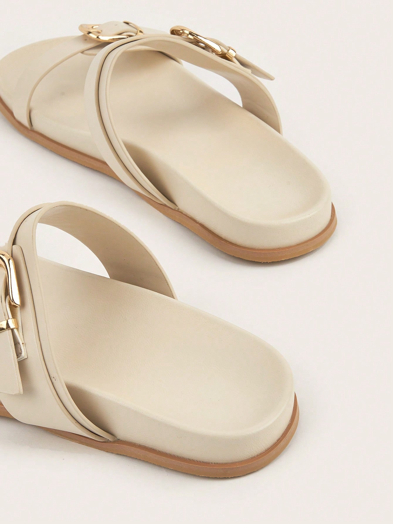Plus Size Brown Square Toe Cross Strap Slip-On Flat Sandals, Casual Commute Daily Wear