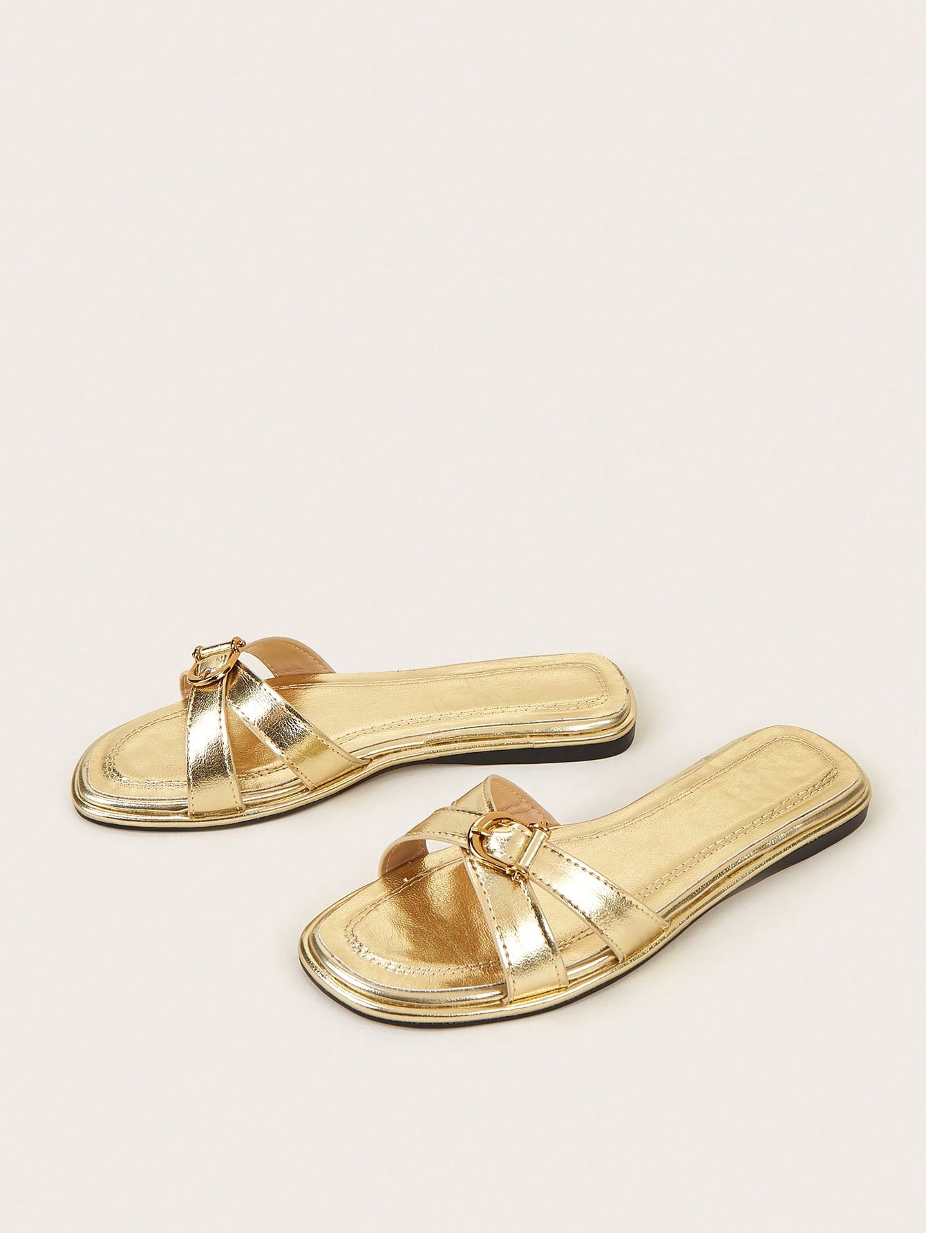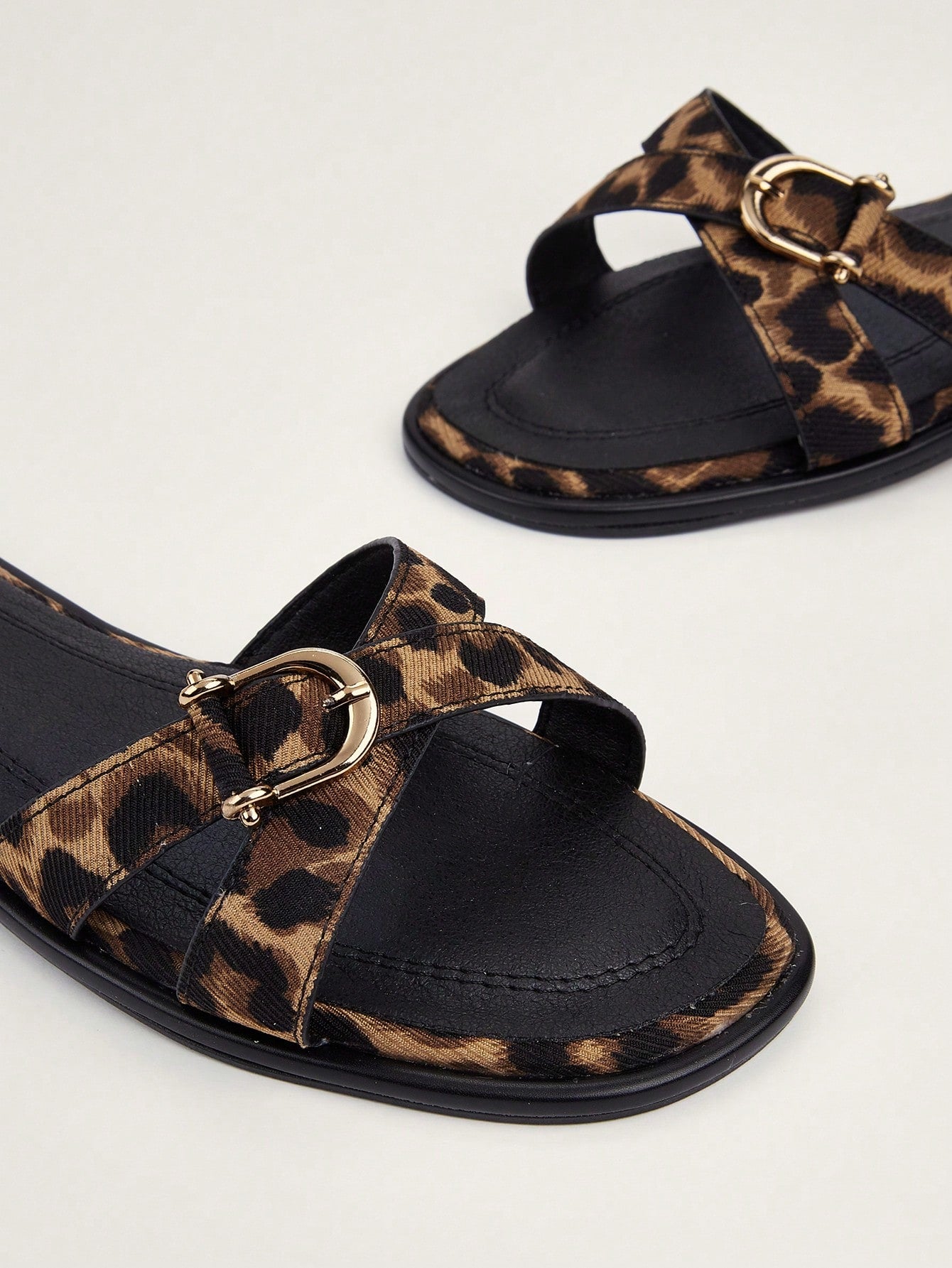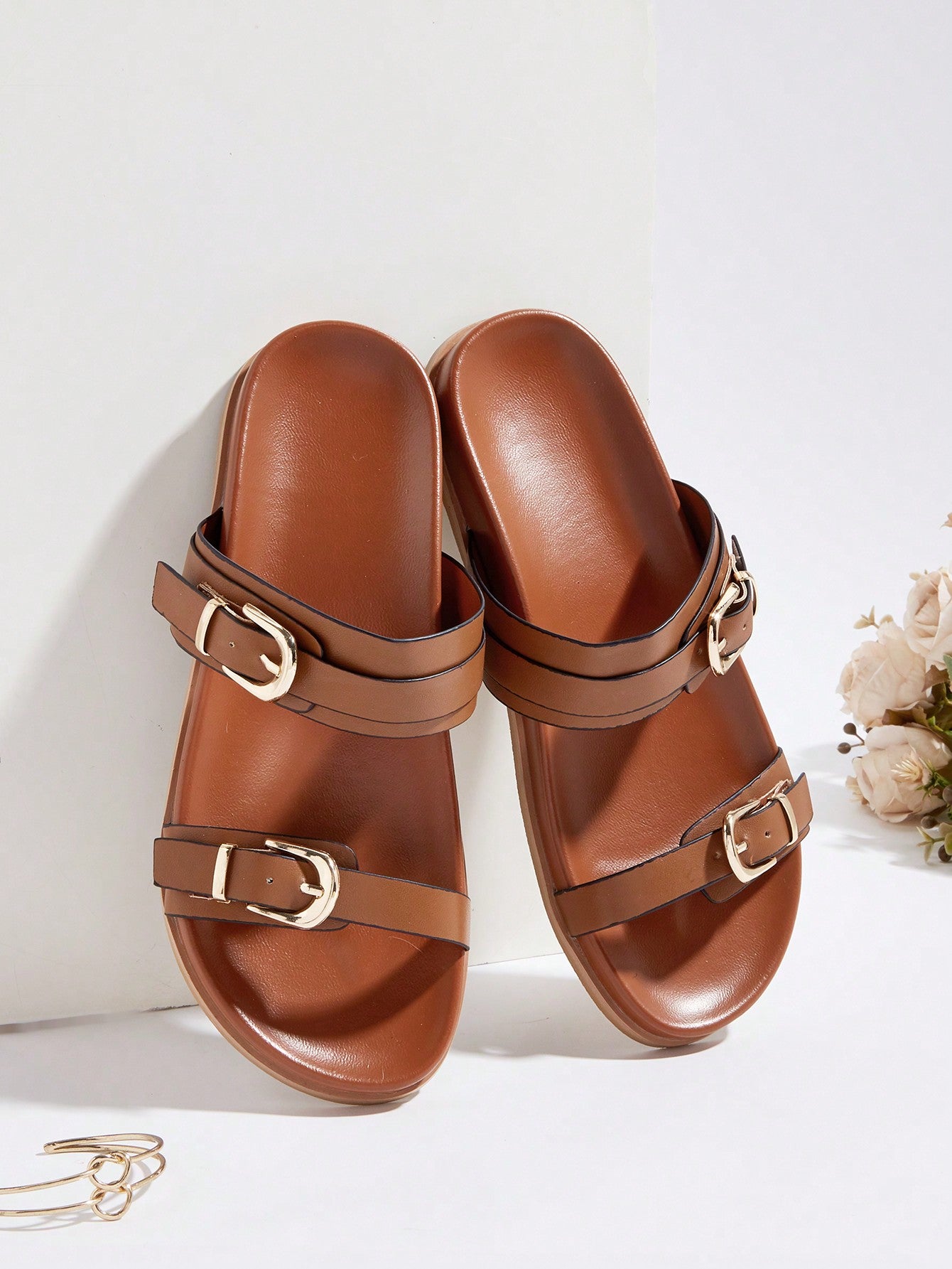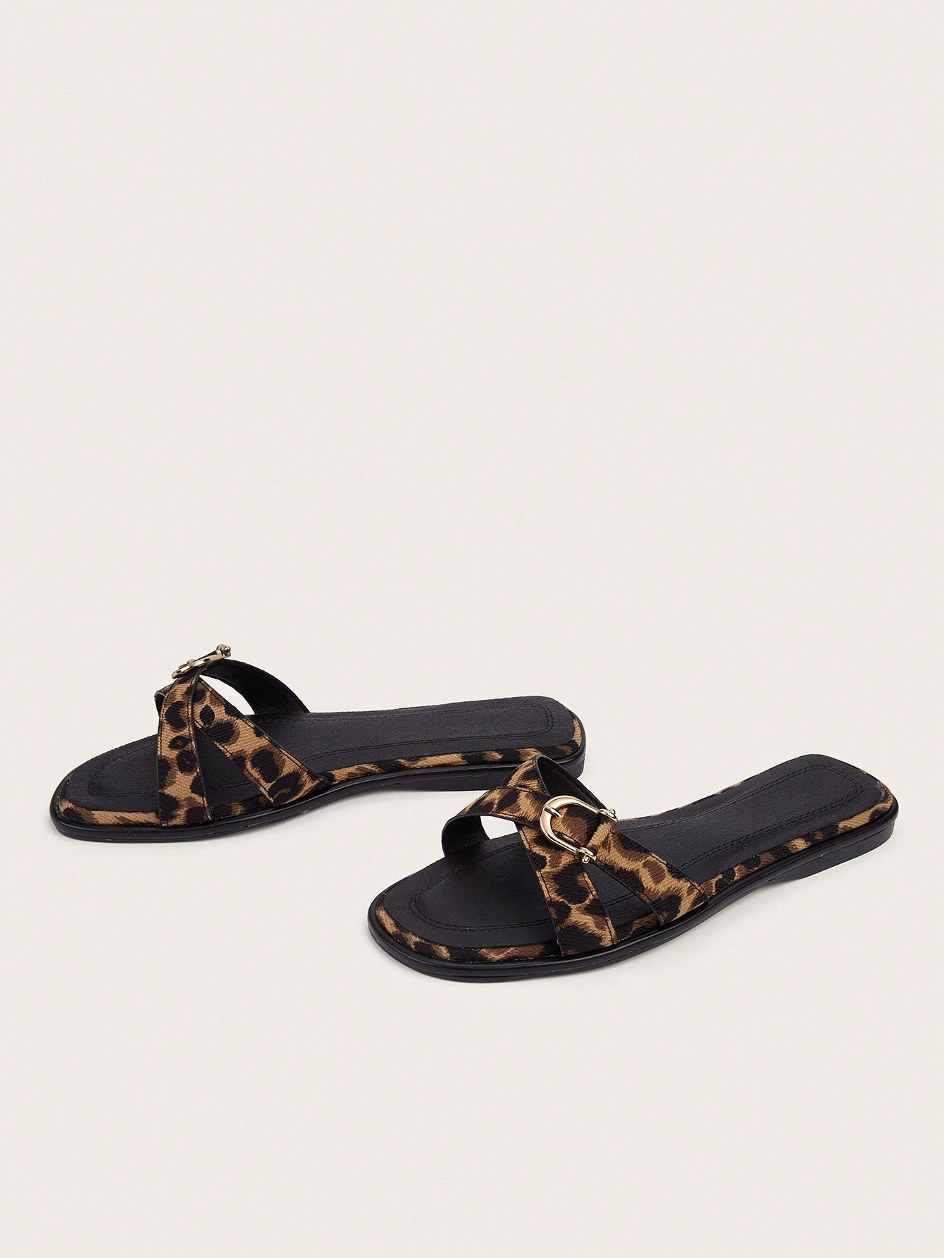Plus Size Brown Square Toe Cross Strap Slip-On Flat Sandals, Casual Commute Daily Wear