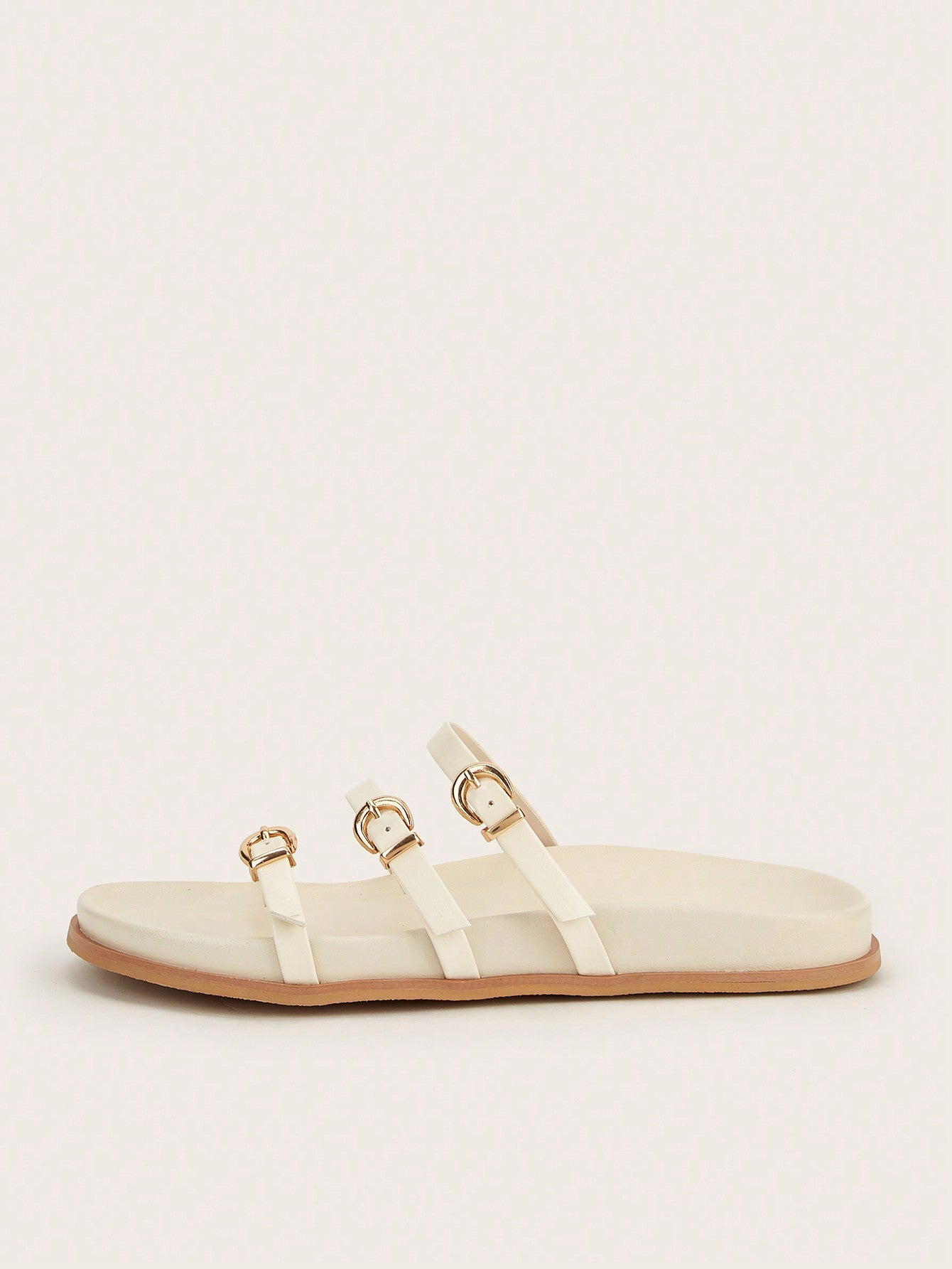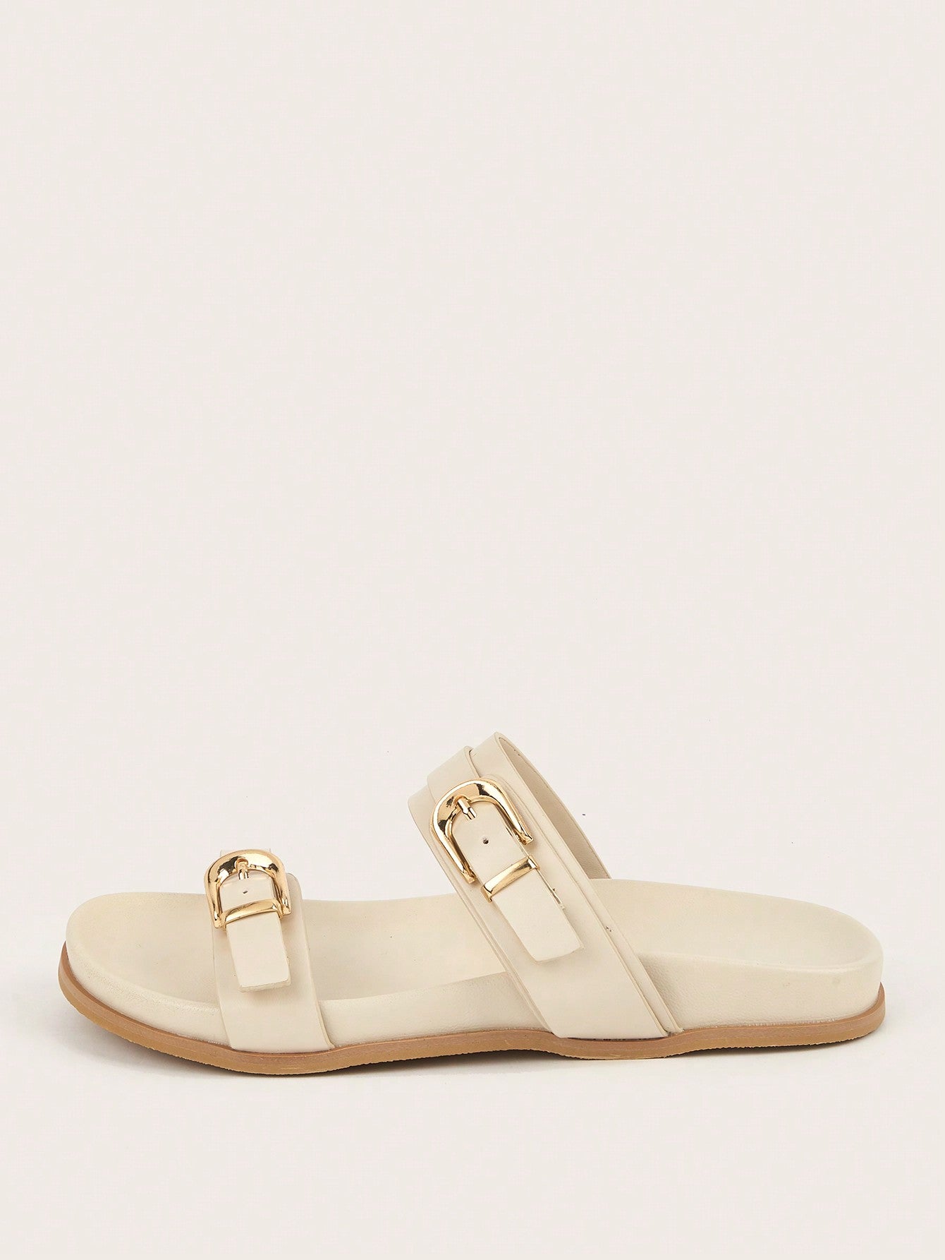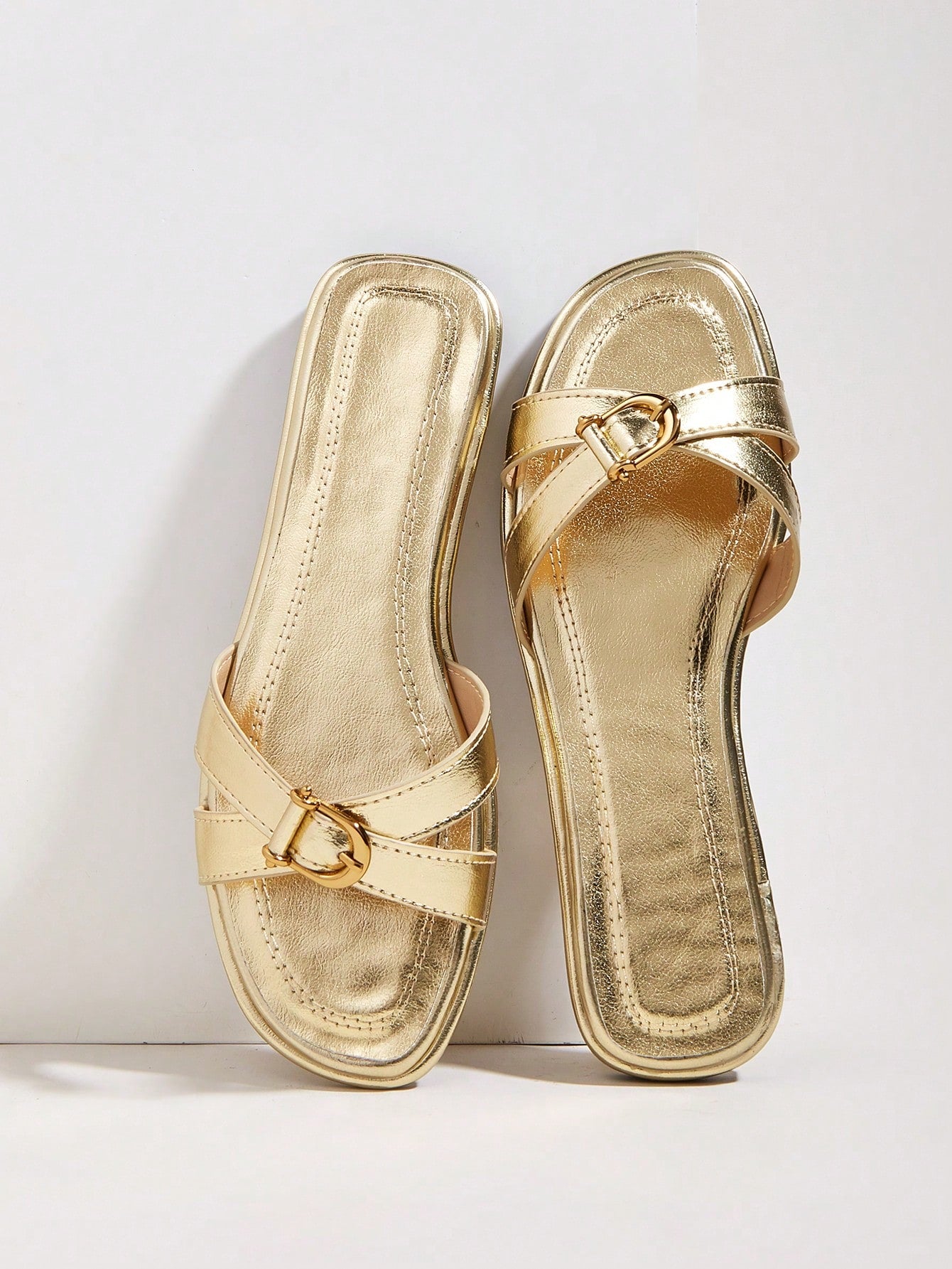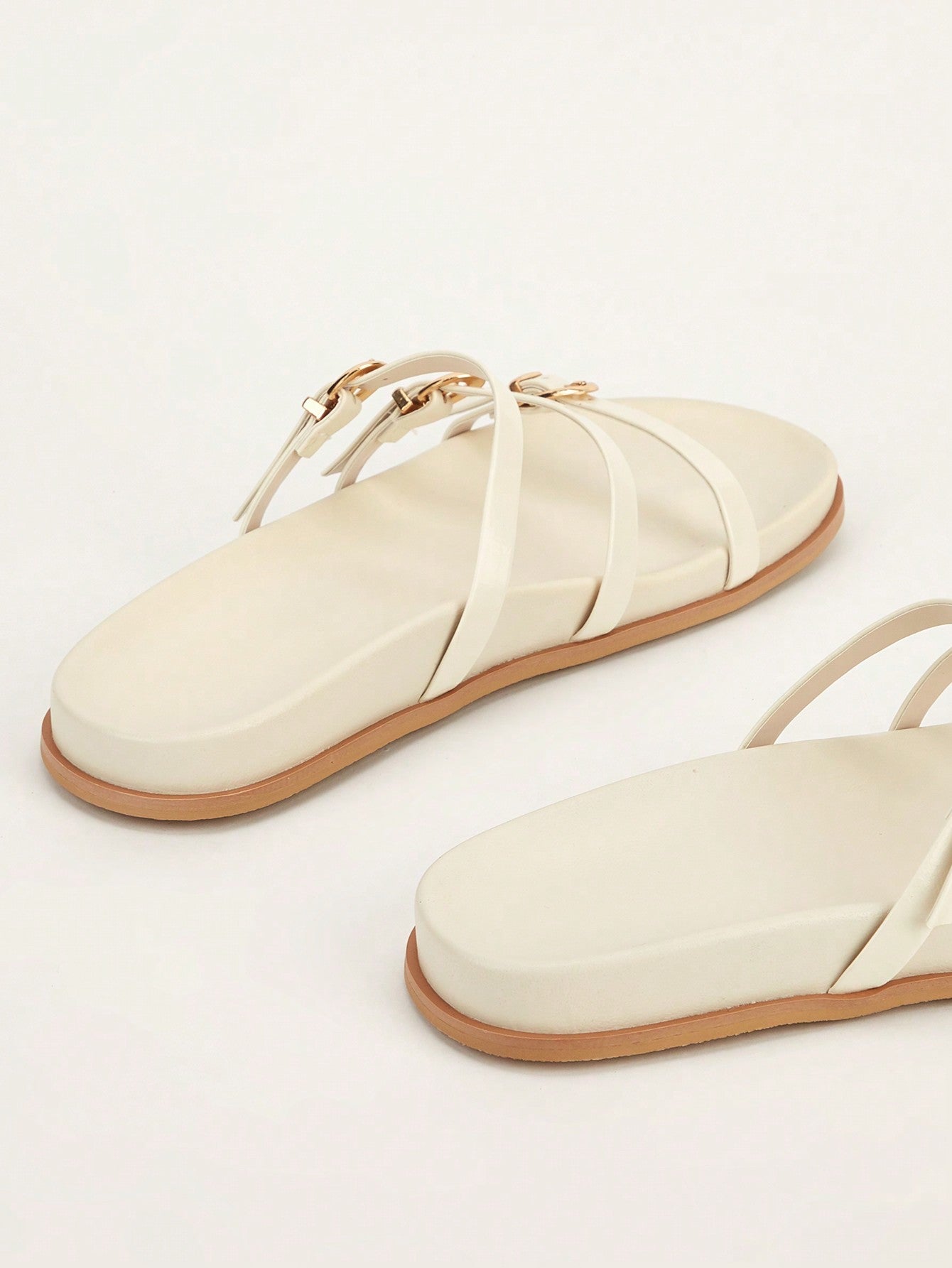 Plus Size Brown Square Toe Cross Strap Slip-On Flat Sandals, Casual Commute Daily Wear