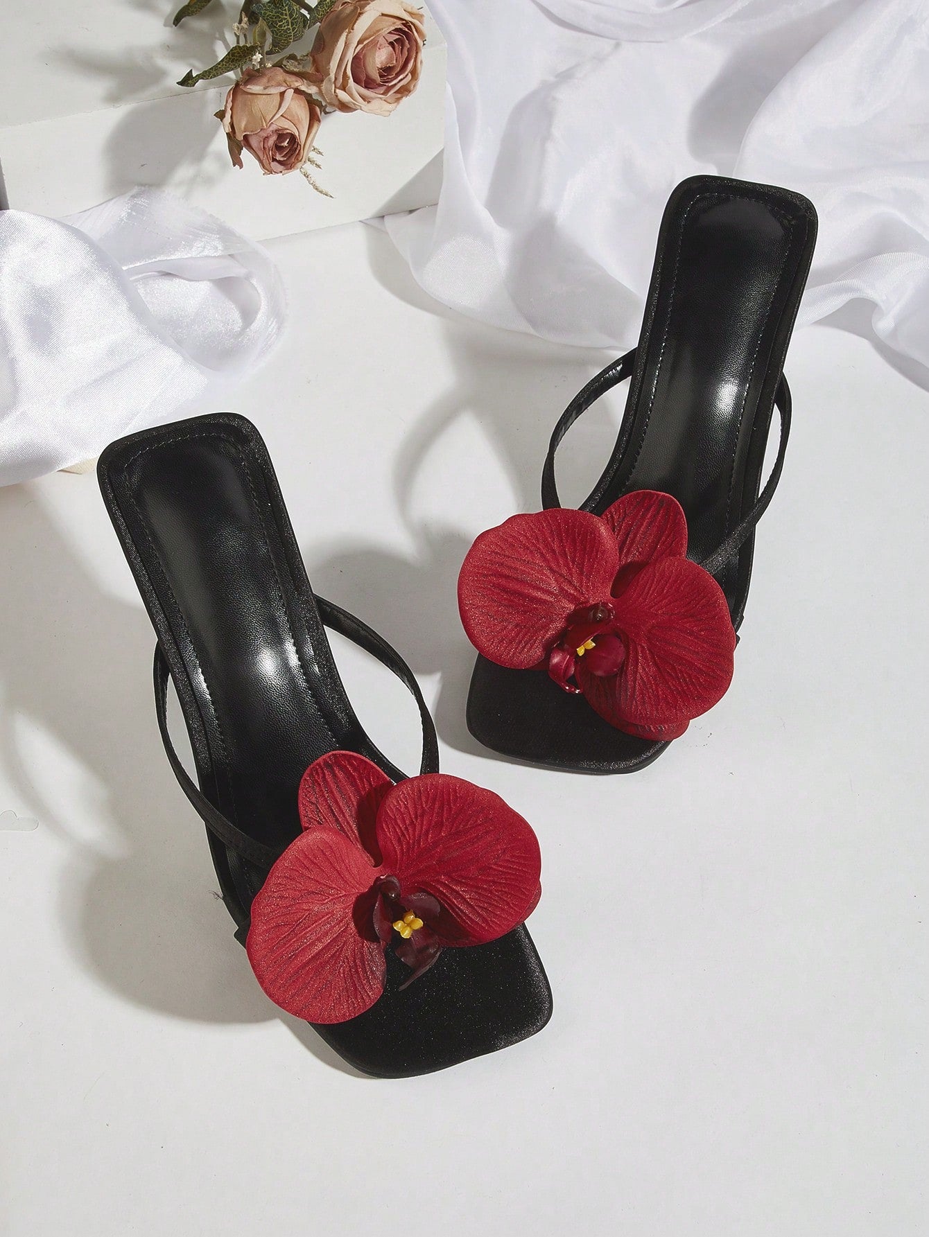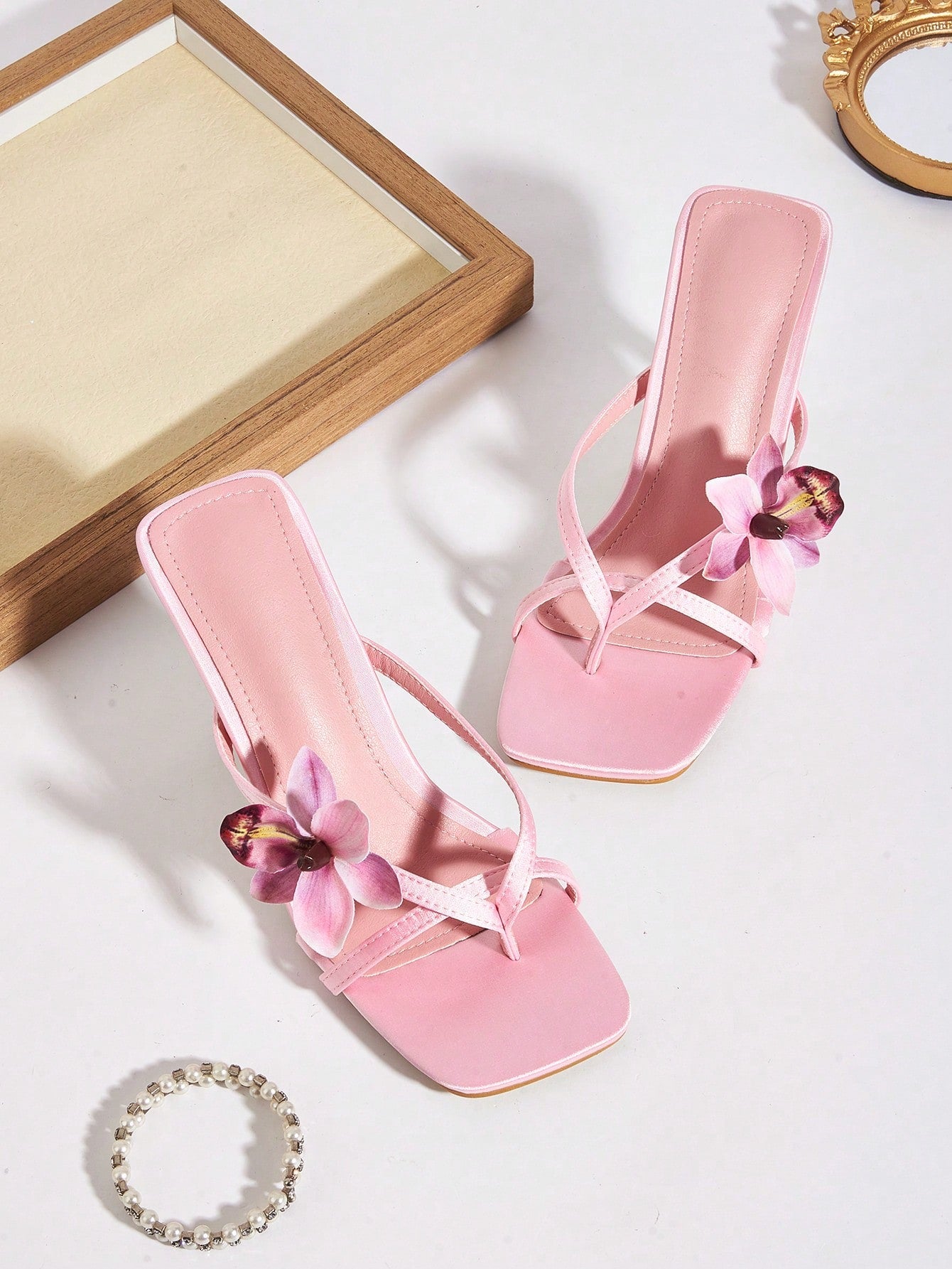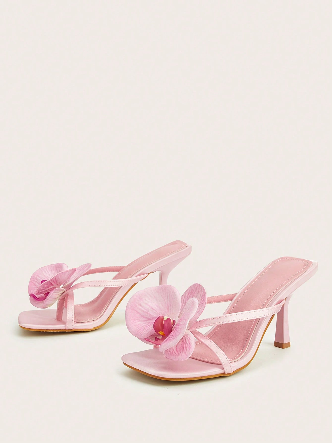Pink Satin Flower Open Toe Stiletto High Heel Sandals, Suitable For Spring/Summer Travel And Beach