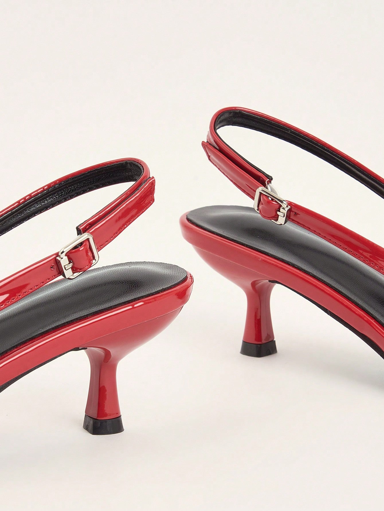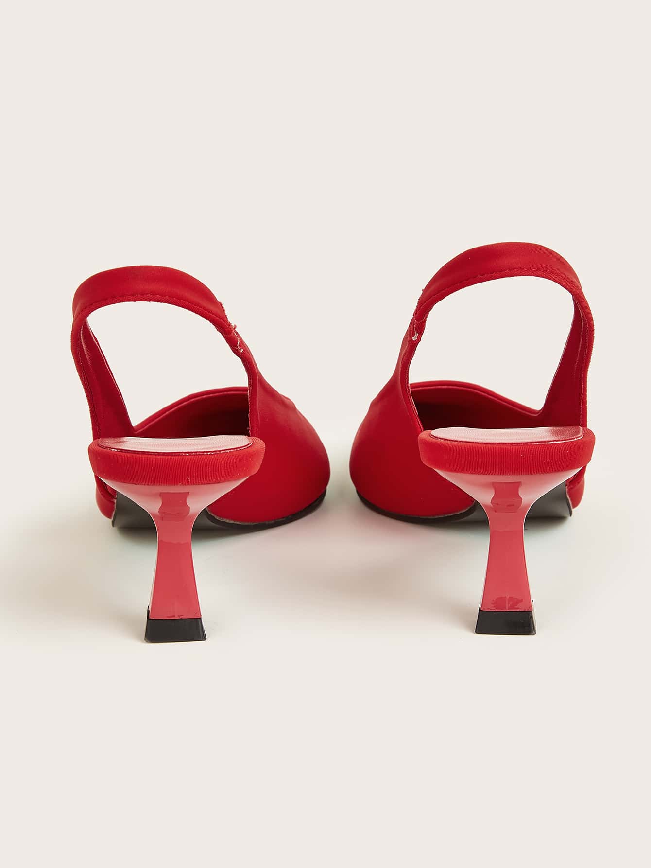 Women Red Minimalist Pumps, Point Toe Heeled Slingback Pumps