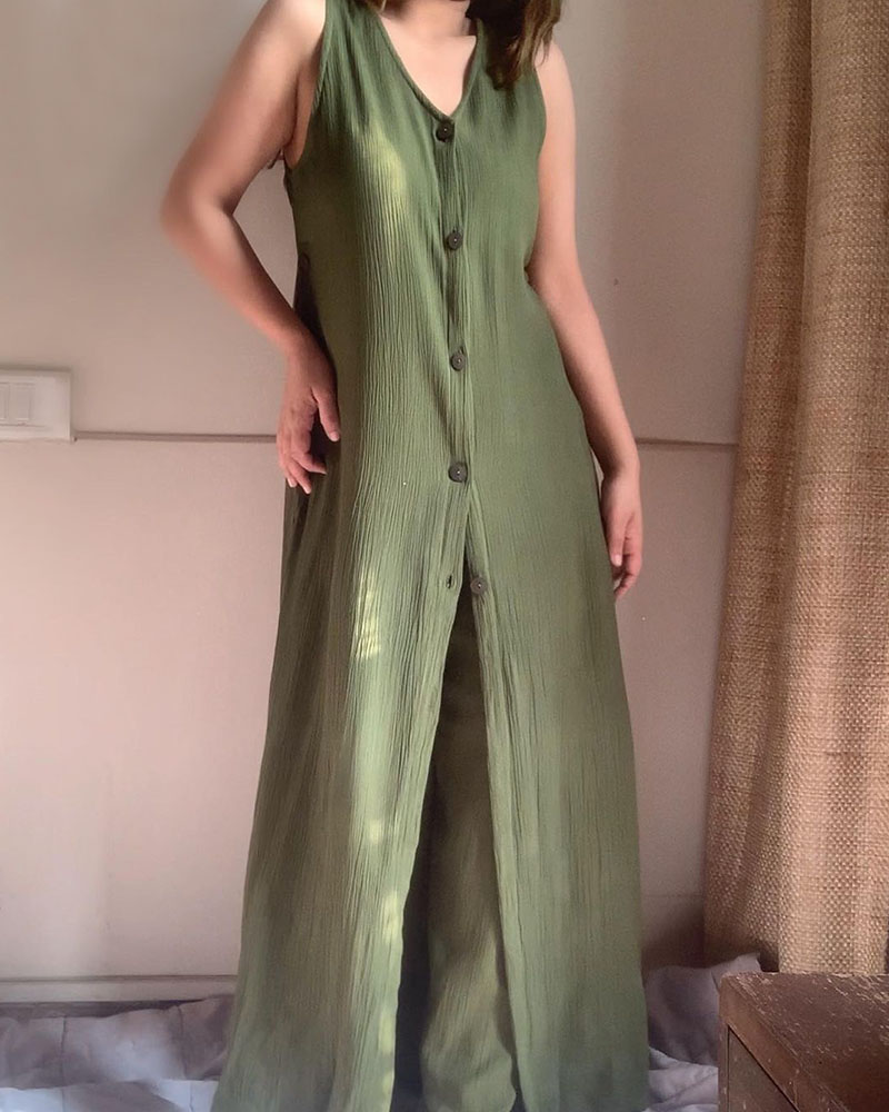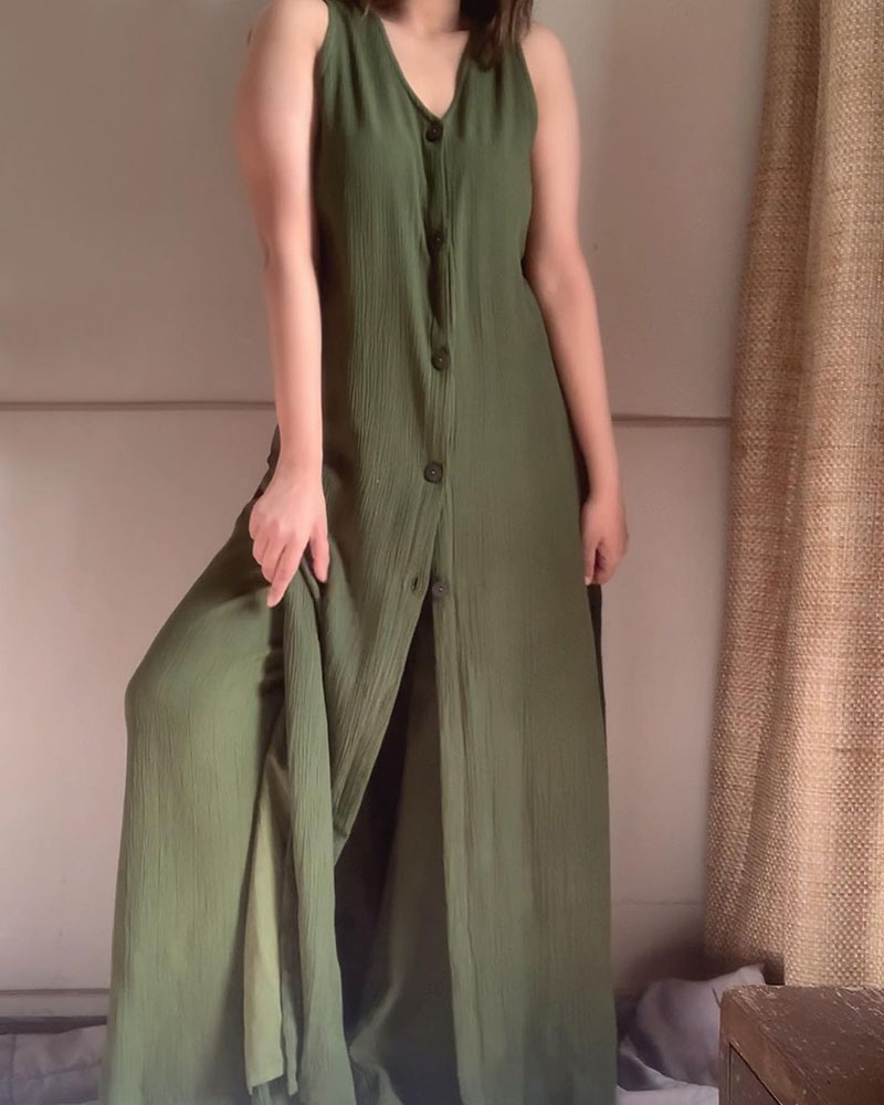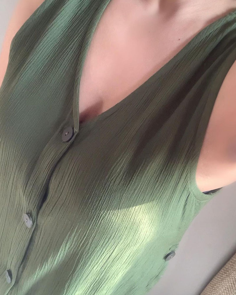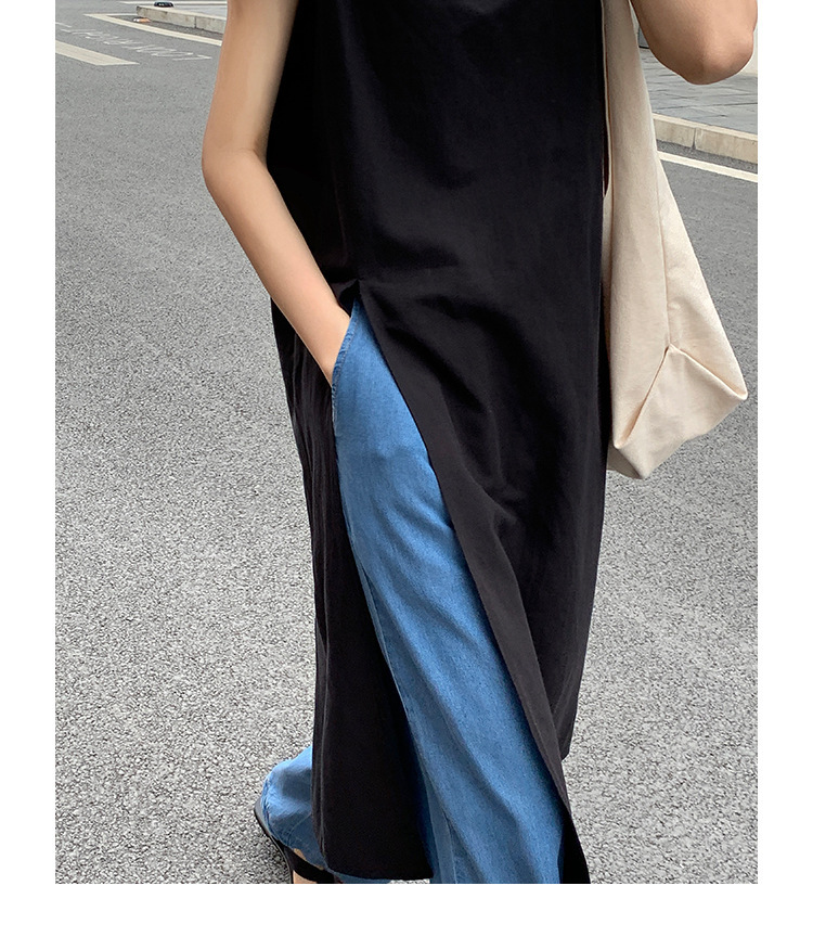 Simple Sleeveless Linen Long Shirt