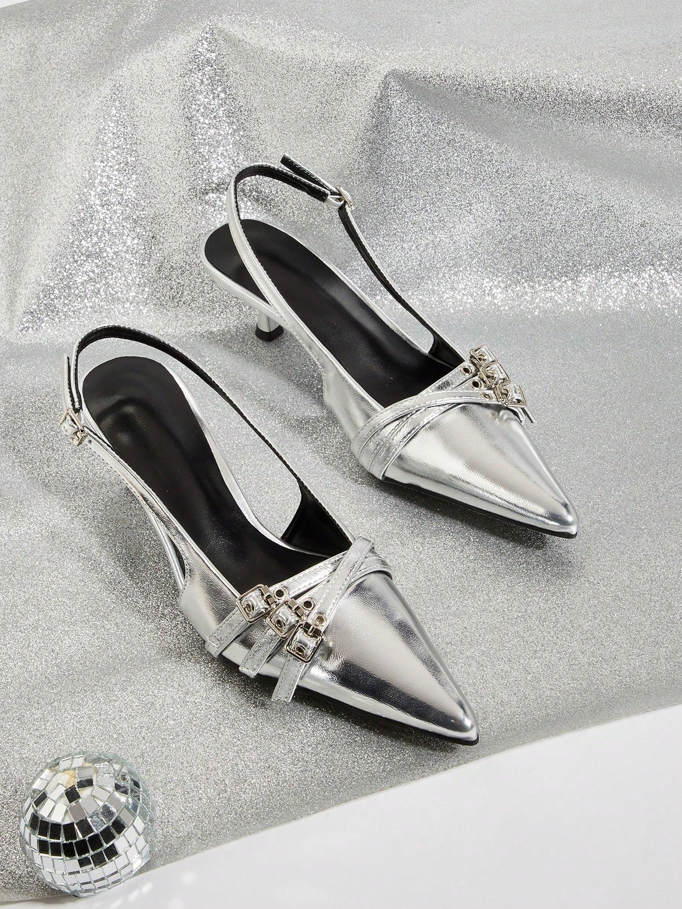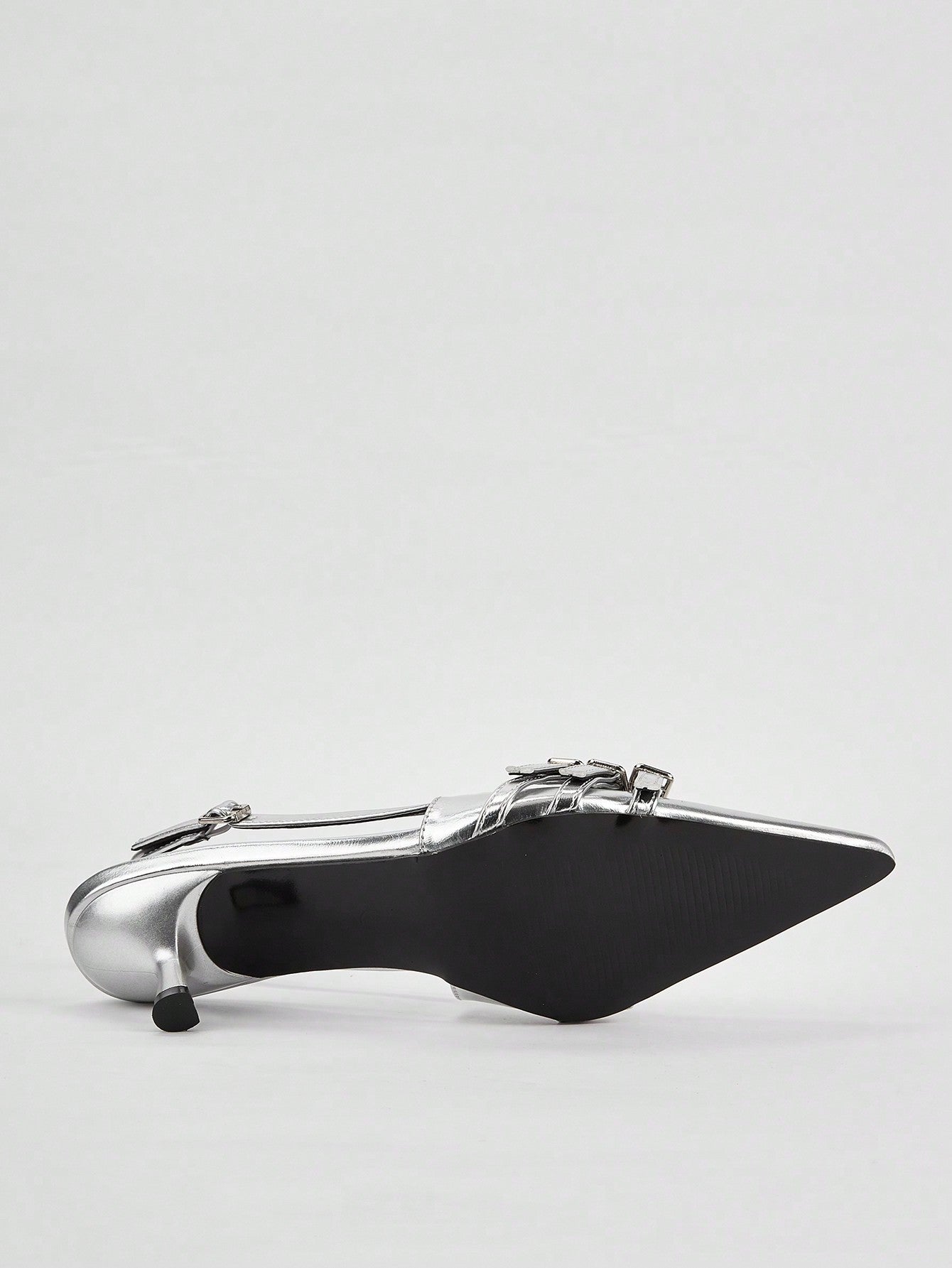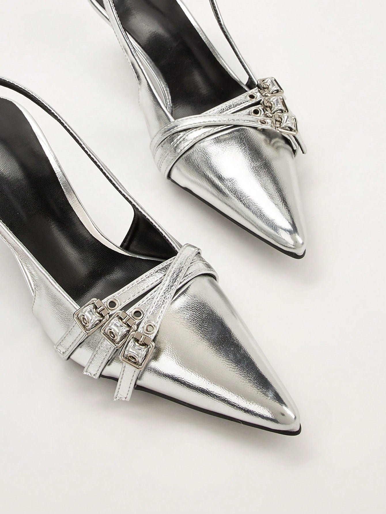 Wedding Party Elegant Silver Patent Leather Pointed Toe Stiletto Heels With Metal Ankle Strap
