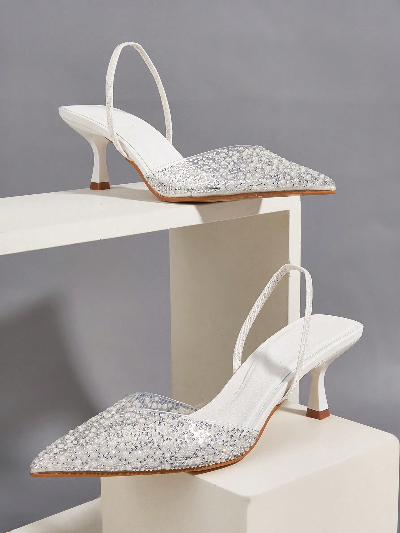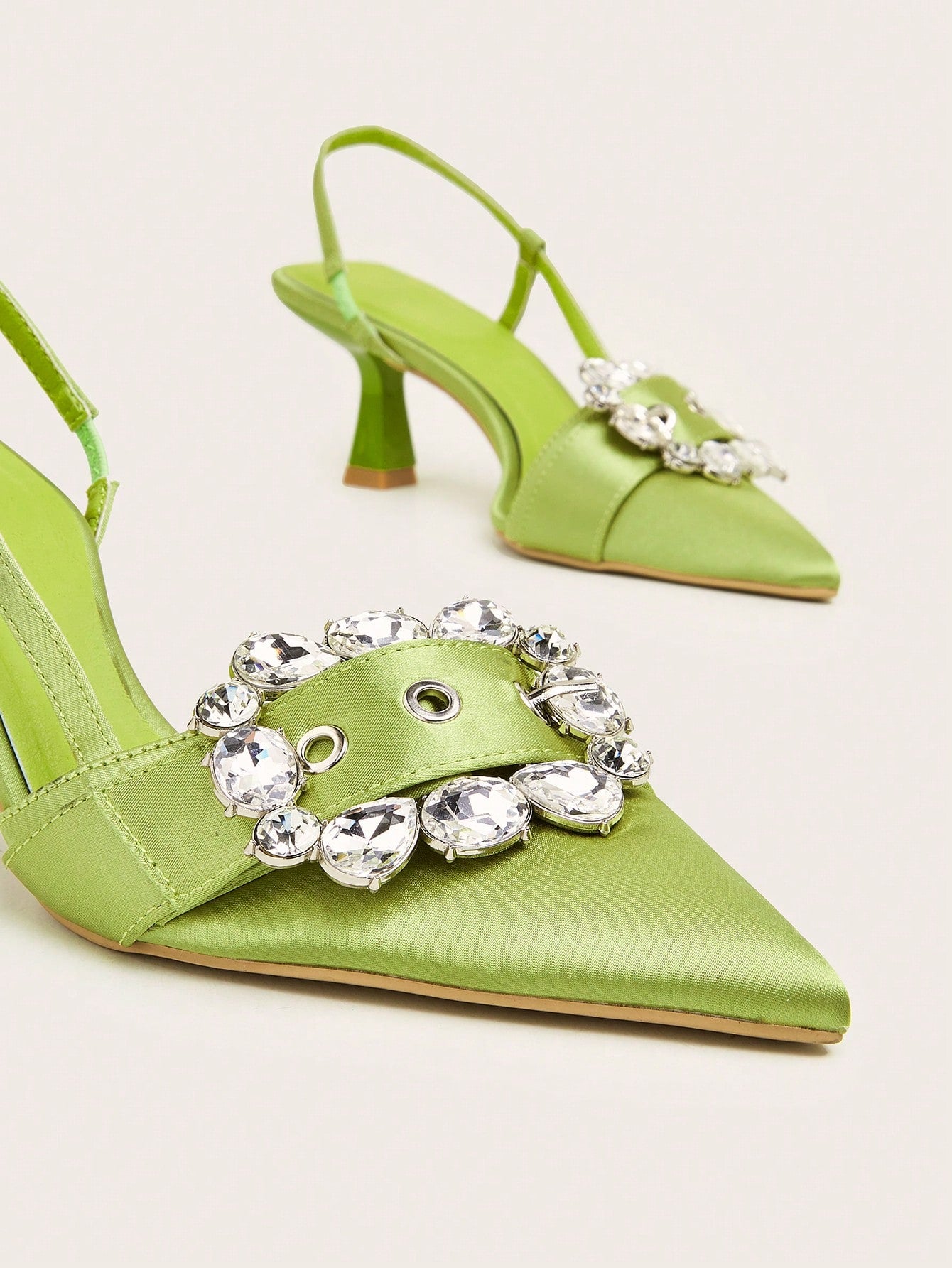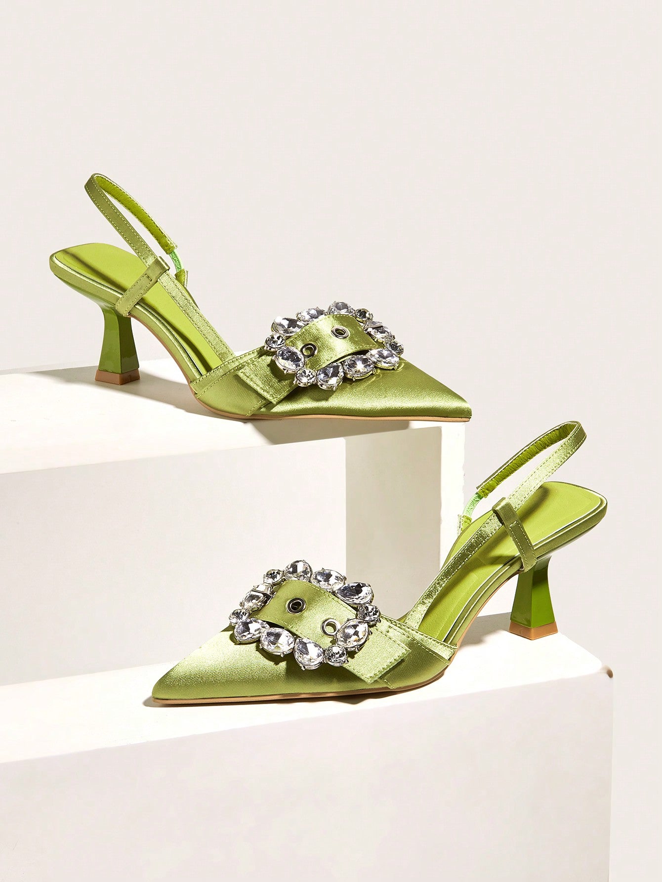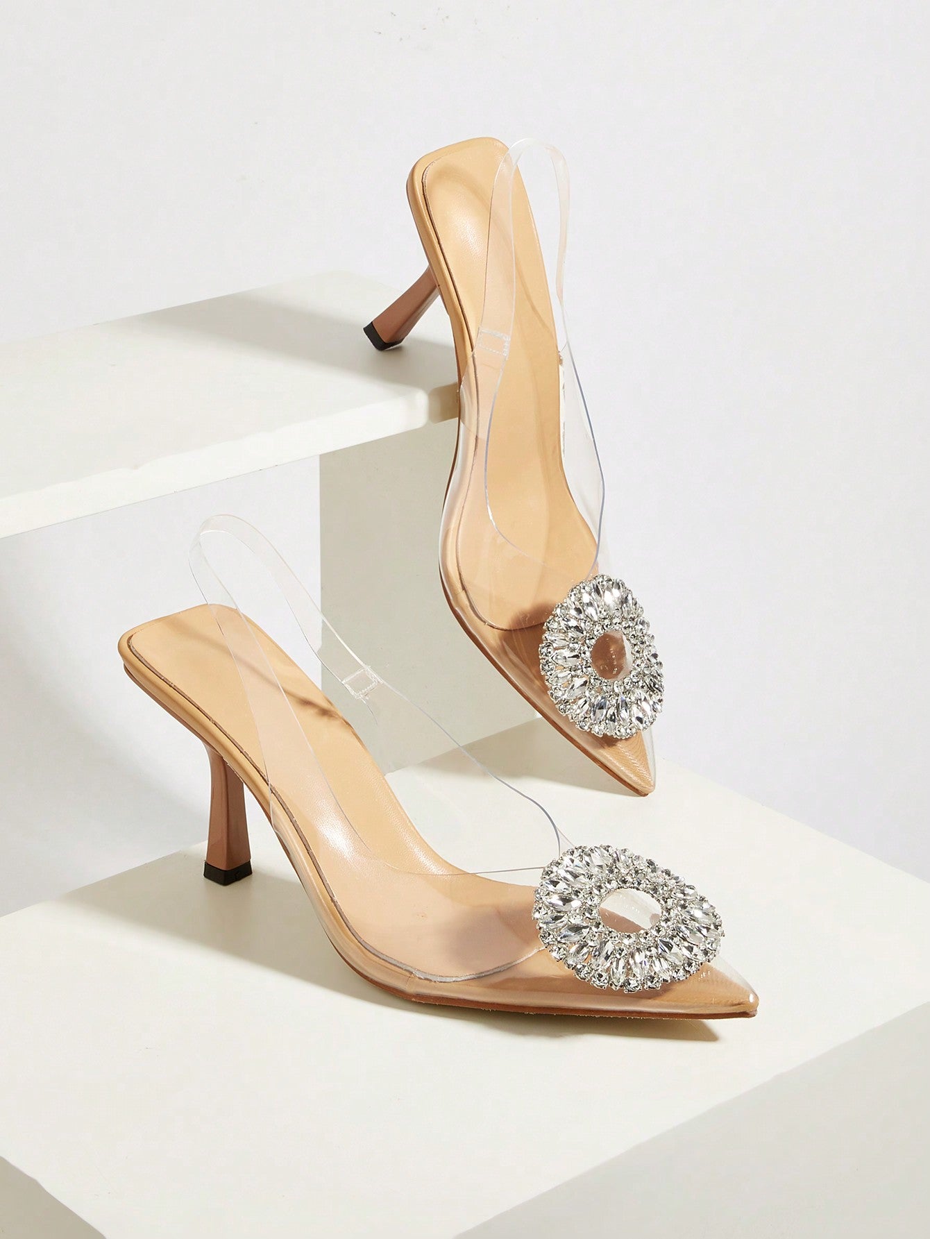 Wedding/Prom/Party/Vacation/Casual Elegant & Stylish Pointed Toe Transparent Rhinestone Buckle Strap Thin High Heels