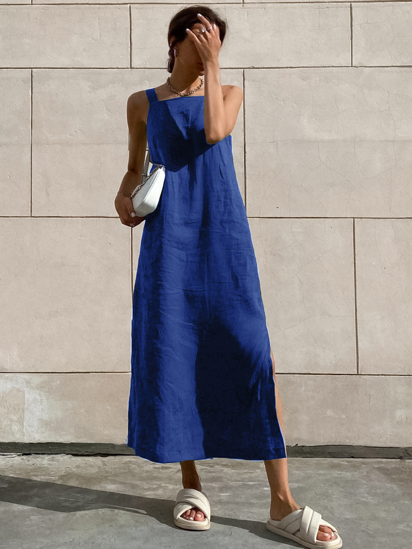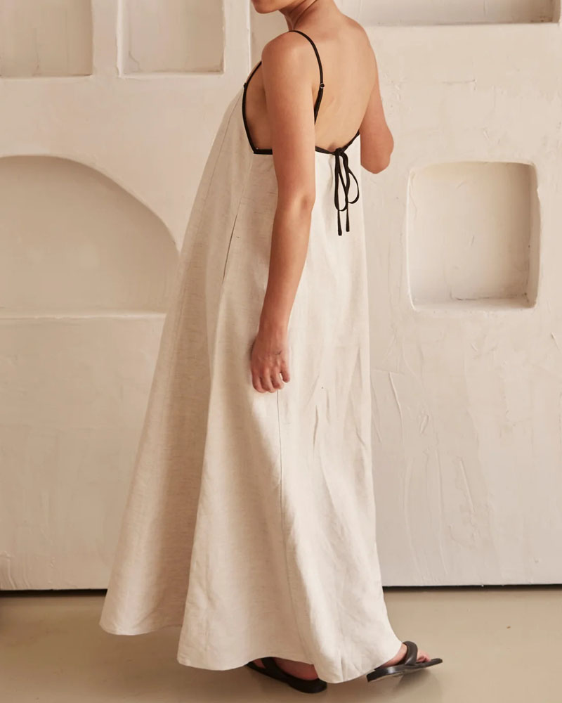 Fashion Contrast Cotton And Linen Sling Dress