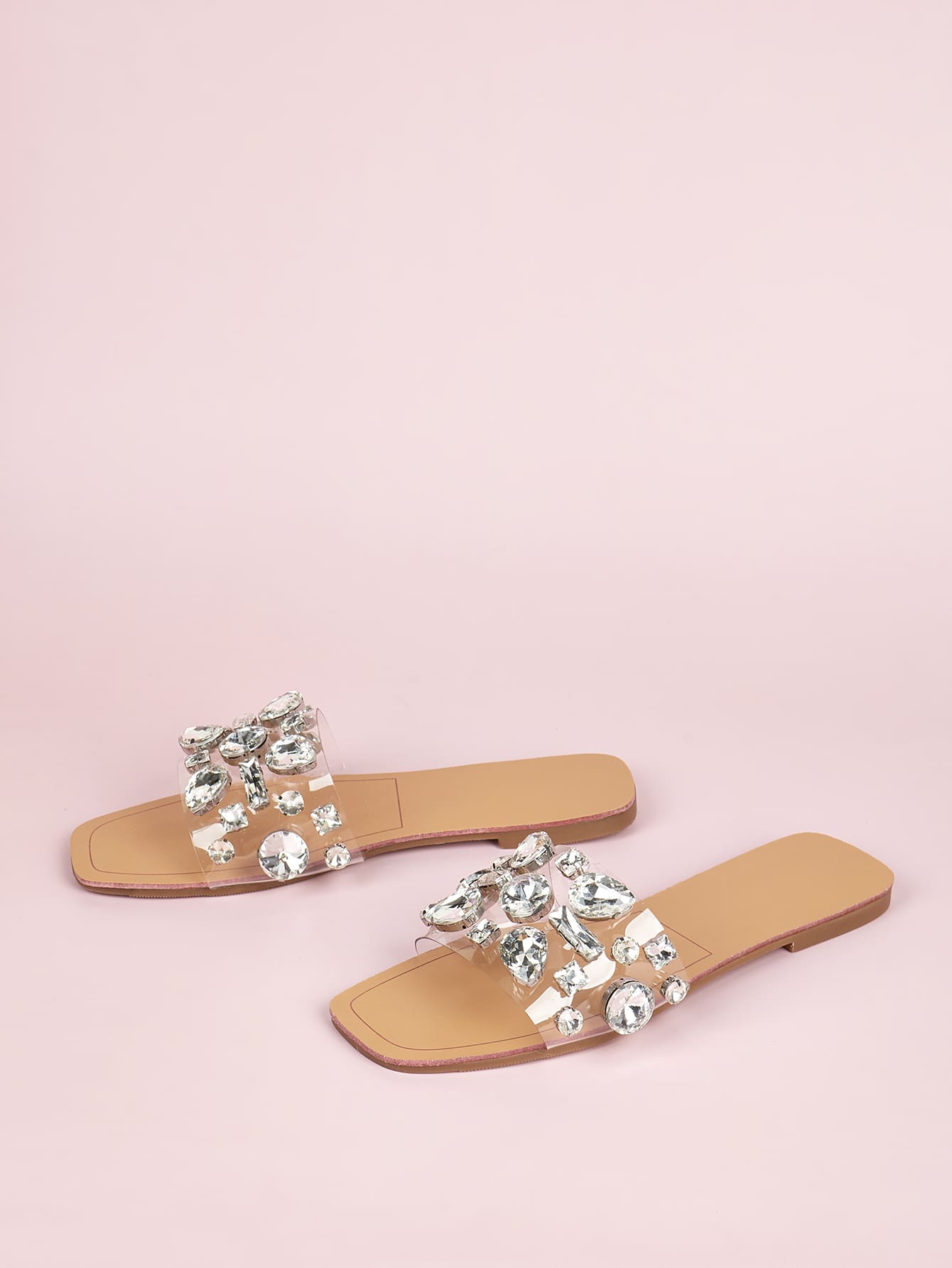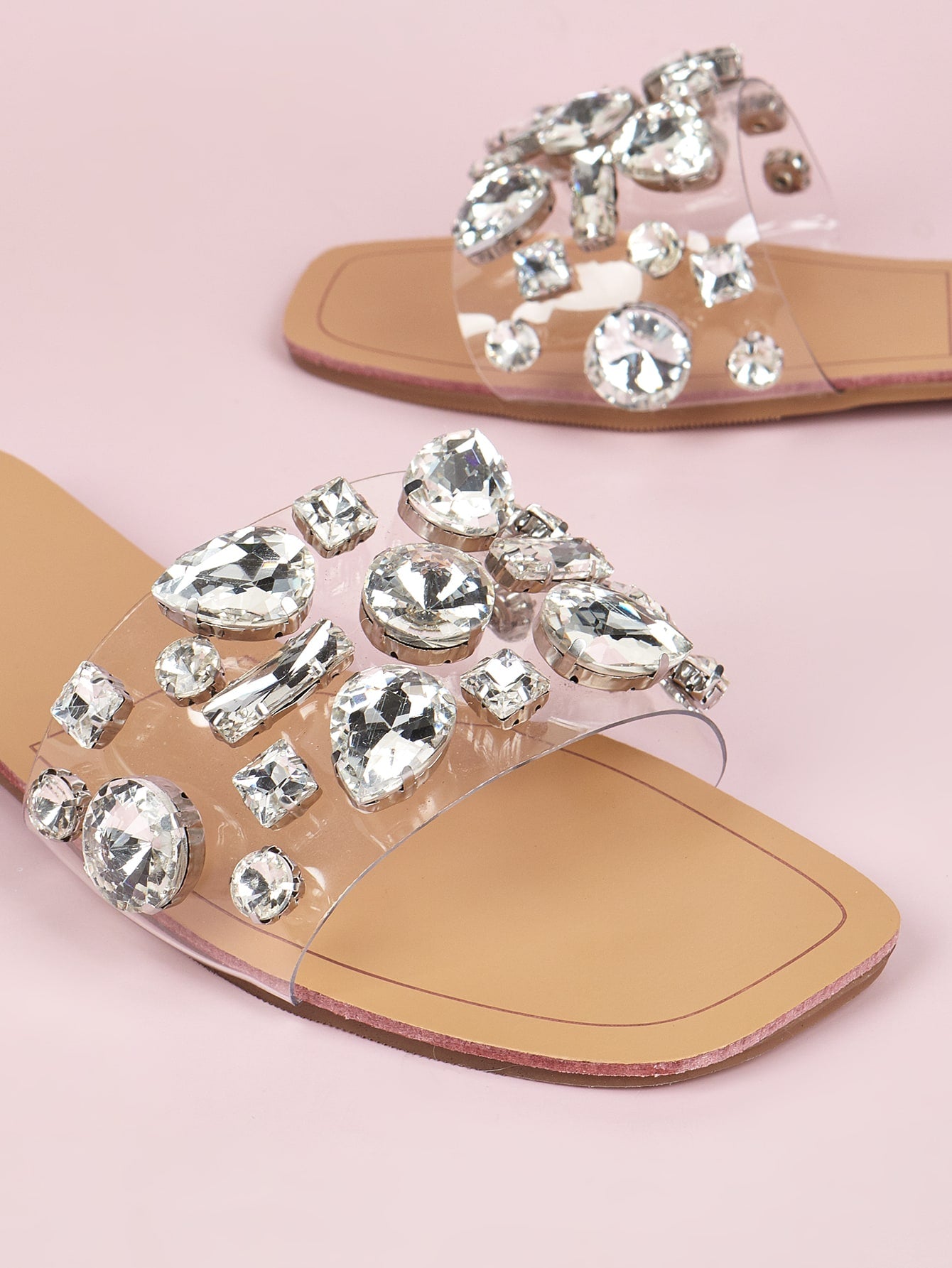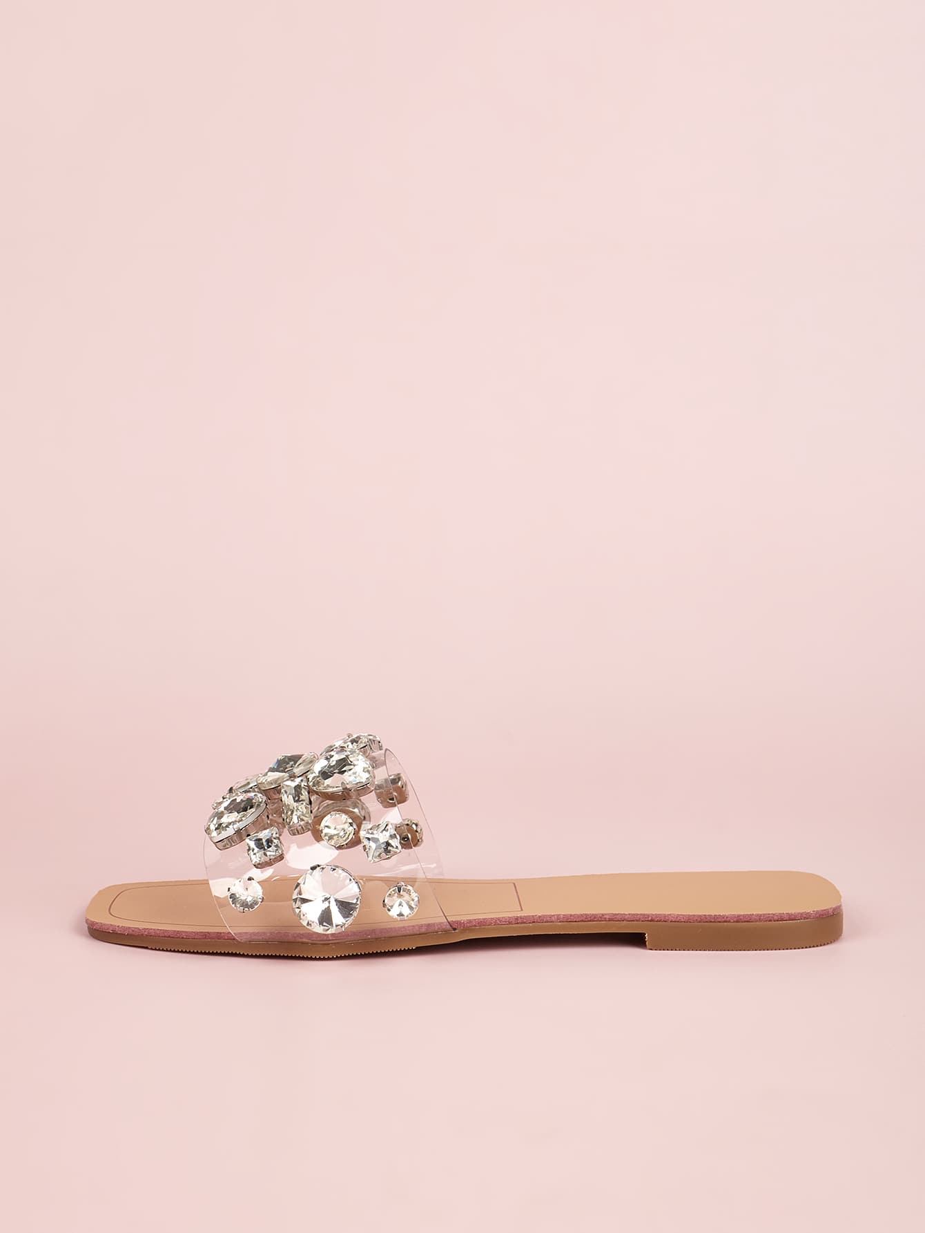 Women Gemstone Decor Slide Sandals, Glamorous Open Toe Flat Sandals