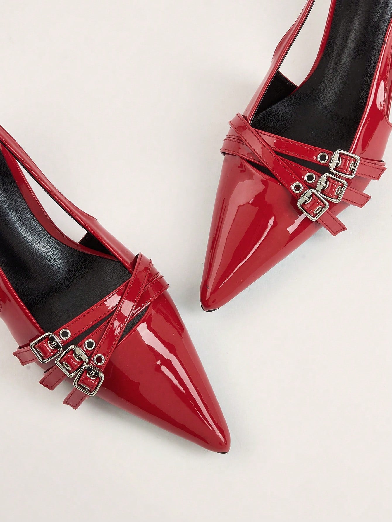 Wedding Party Sexy And Elegant Red Patent Leather Pointed Toe High Heels With Thin Heels And Gold Metal Buckle Strap Valentines