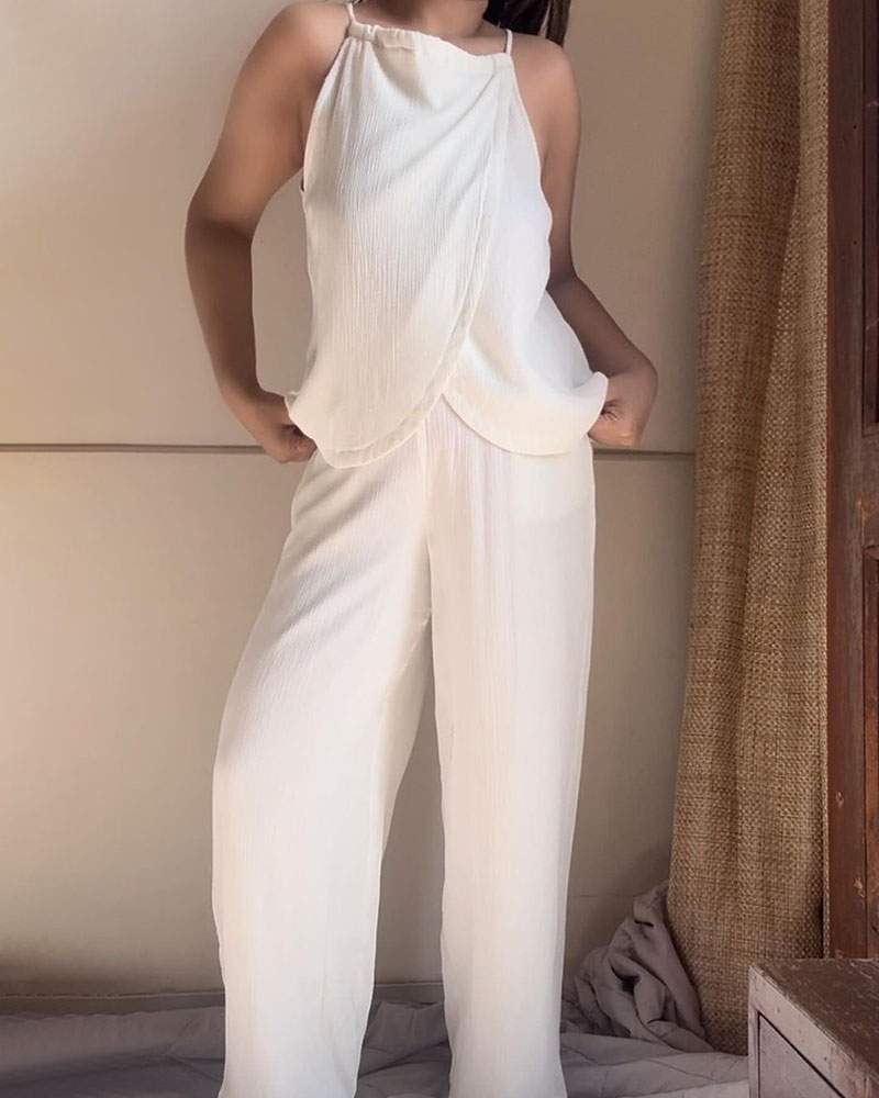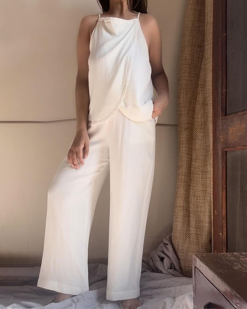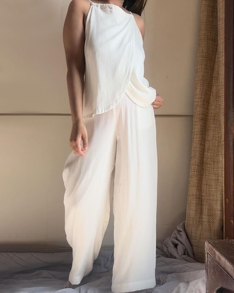 White sleeveless lace-up comfortable two-piece set