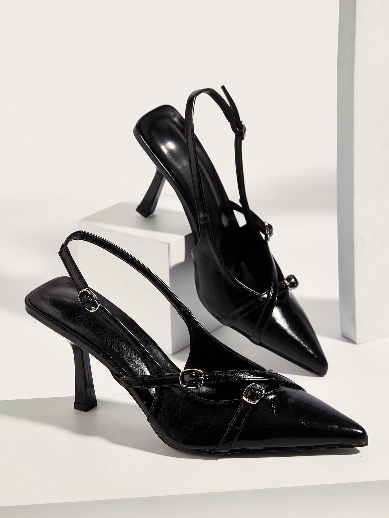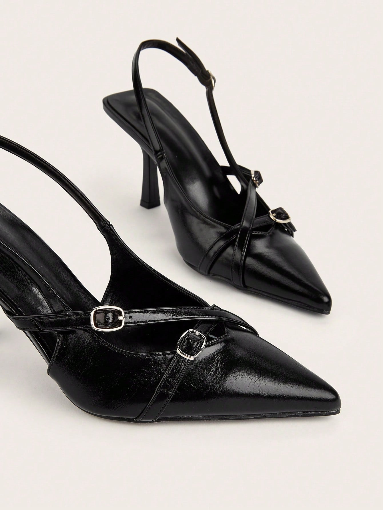 Minimalist Point Toe Stiletto Heeled Slingback Pumps