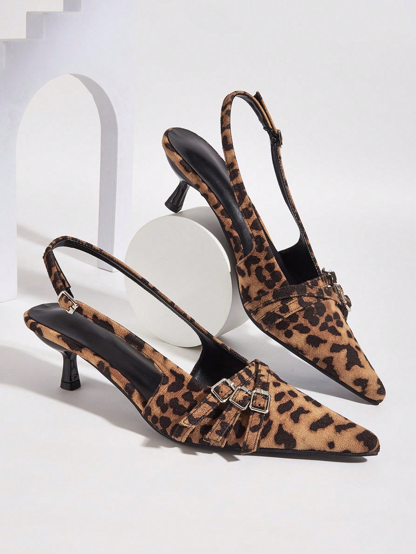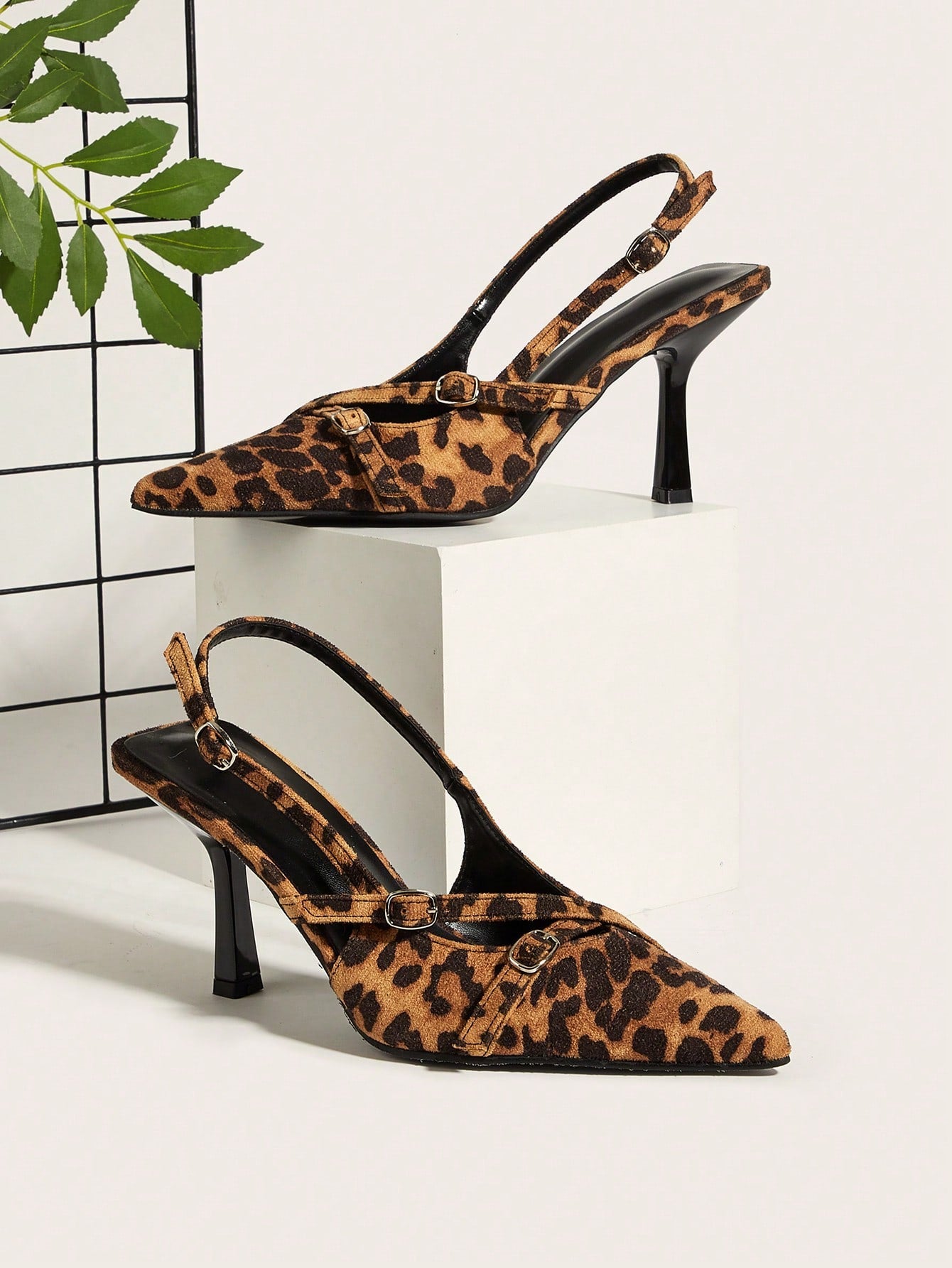 Wedding Party Sexy Leopard Print Pointed Toe Ankle Strap Stiletto High Heels
