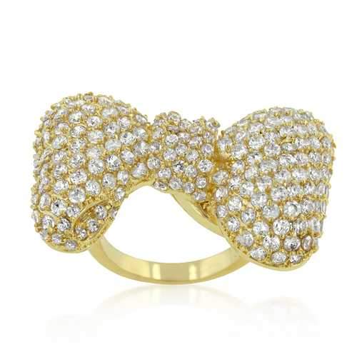 Jet Black and Clear Cubic Zirconia Bow Tie Ring