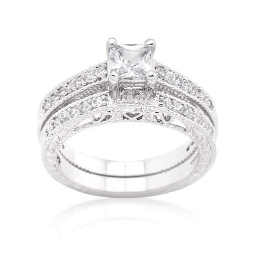 Princess Cut Cubic Zirconia Triple Bridal Set